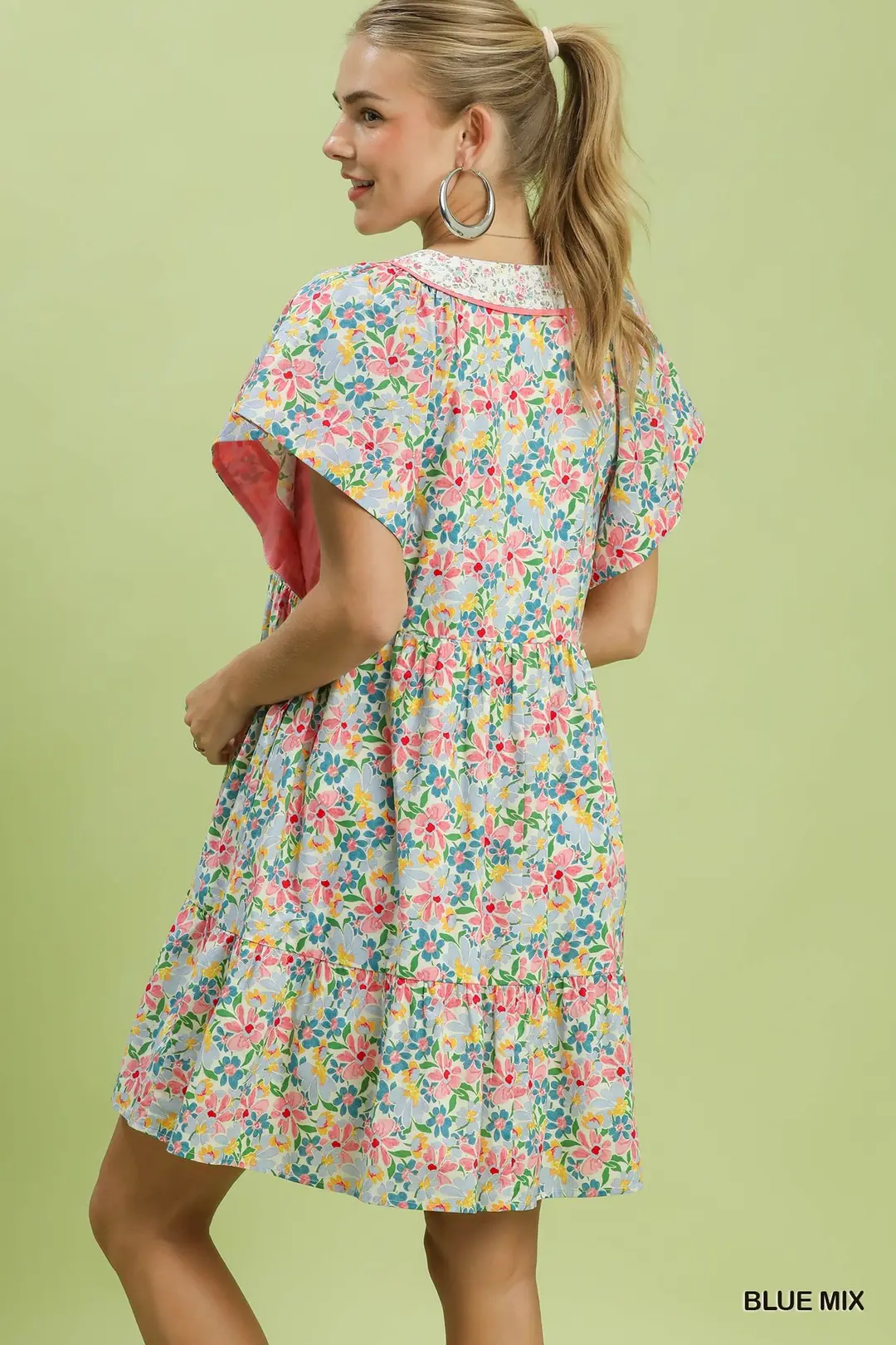 Umgee Mix Floral Tiered Mini Dress with Side Pockets