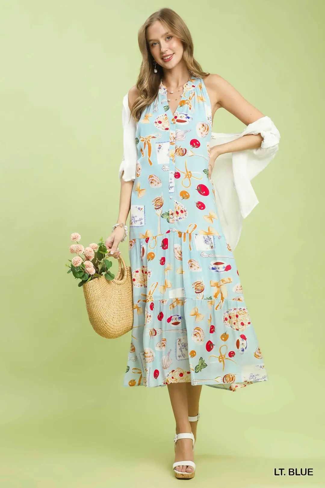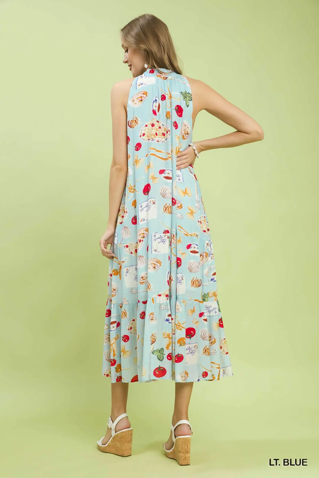 Umgee Abstract Print Tiered Halter Midi Dress