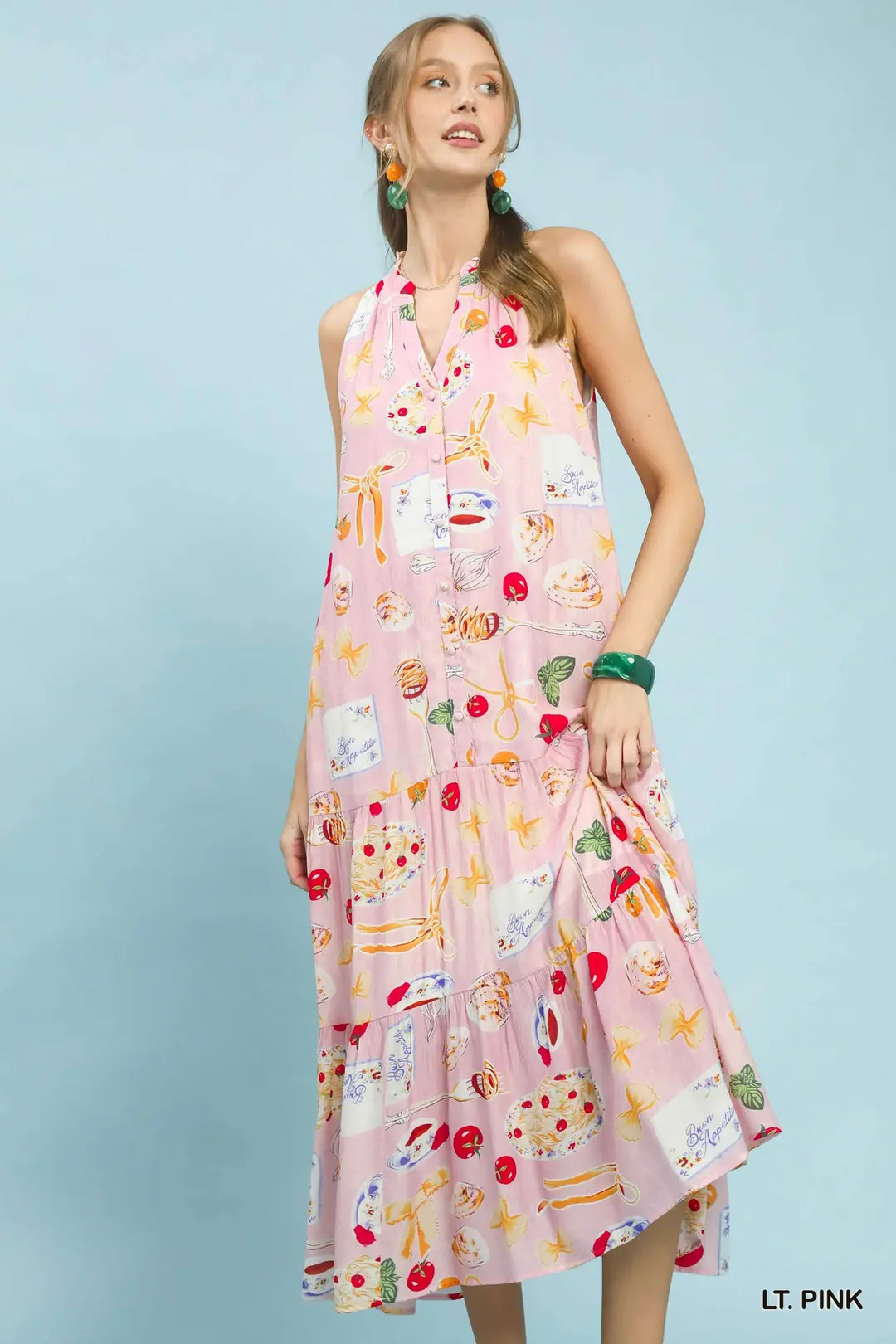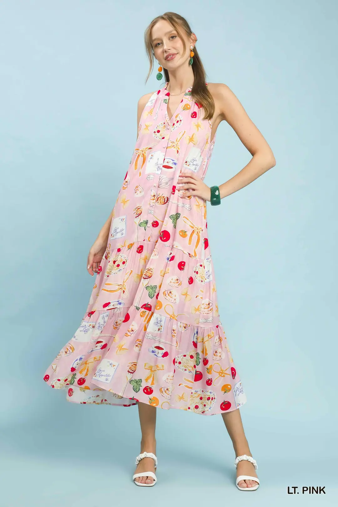 Umgee Abstract Print Tiered Halter Midi Dress