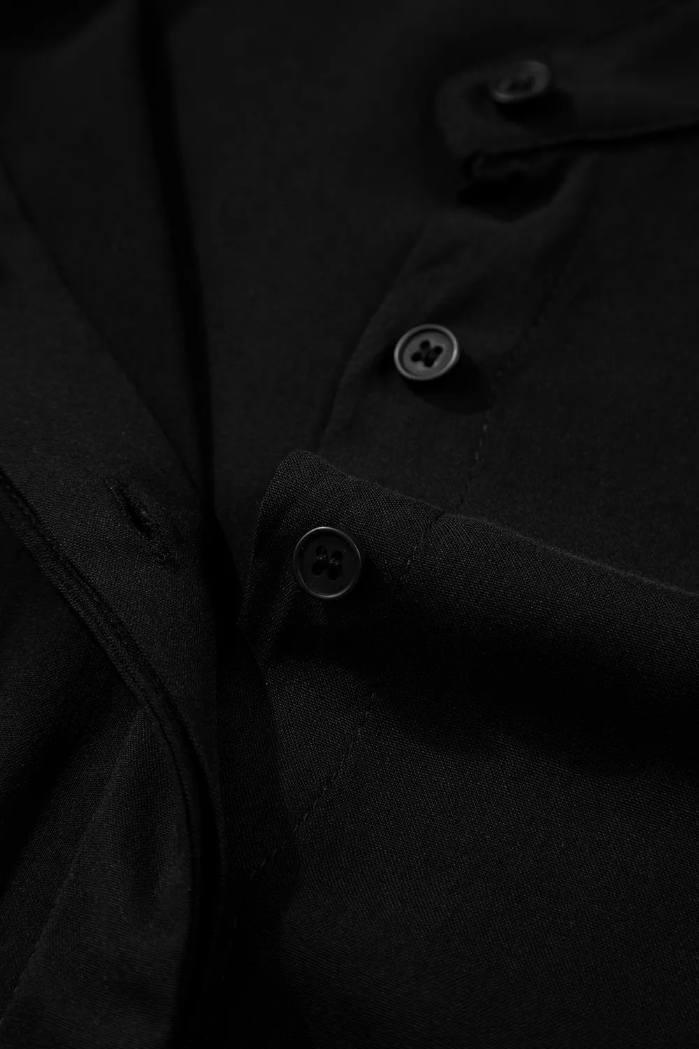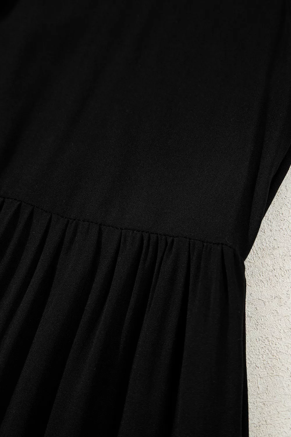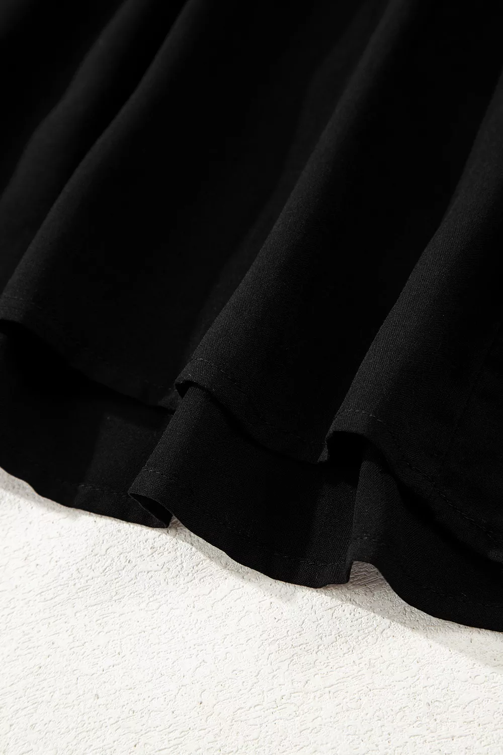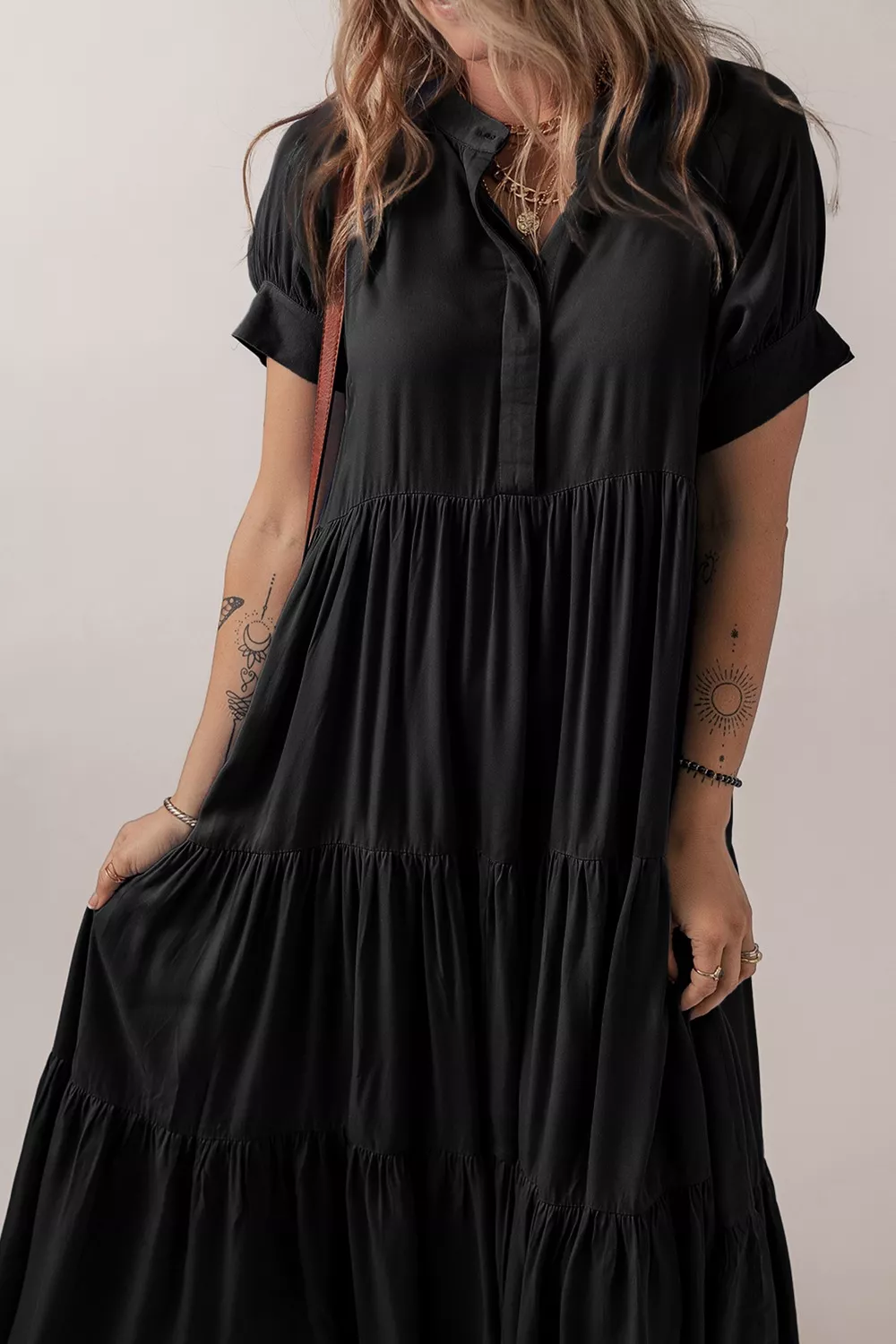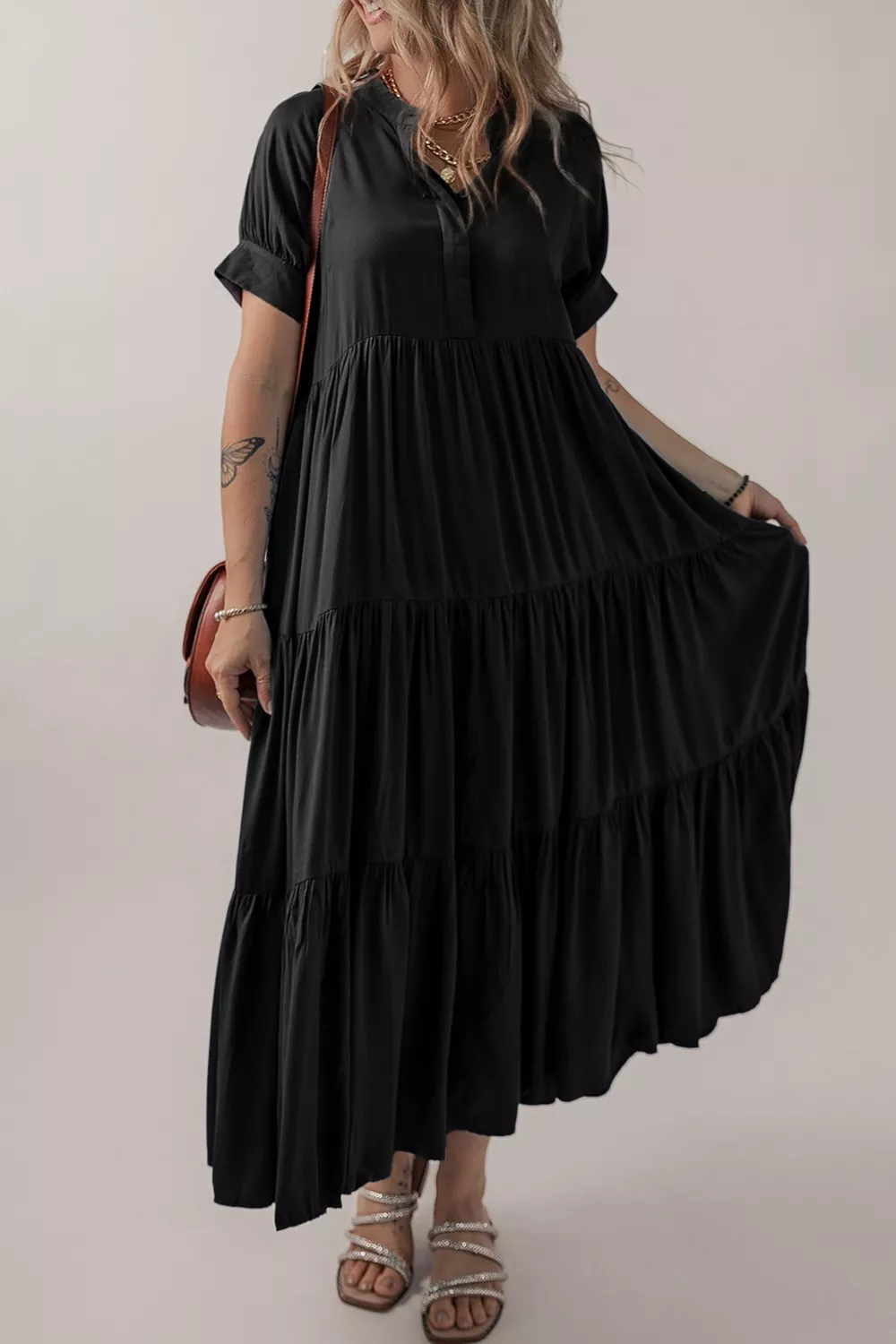 Hidden Buttons Short Sleeve Ruffle Tiered Long Flared Dress
