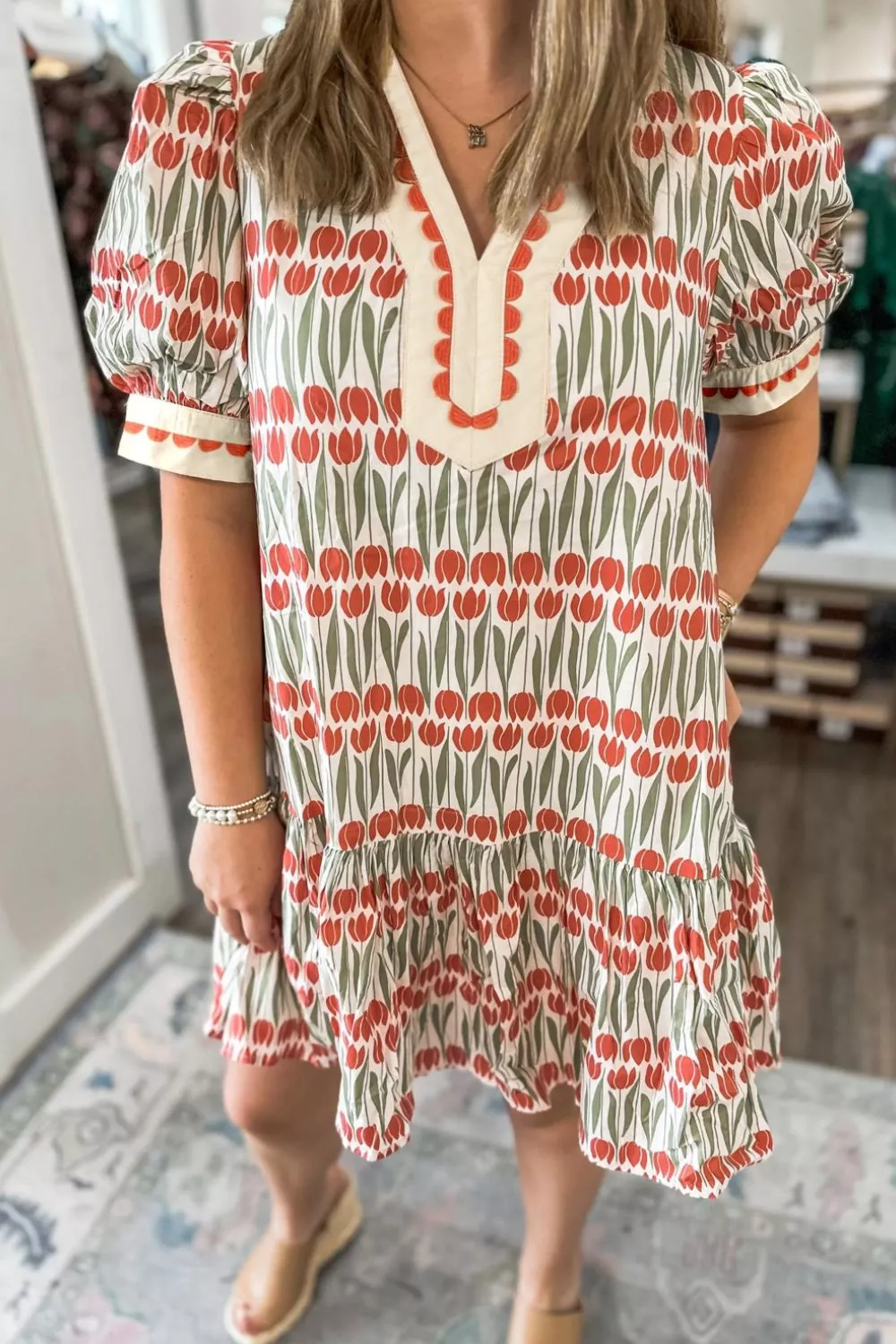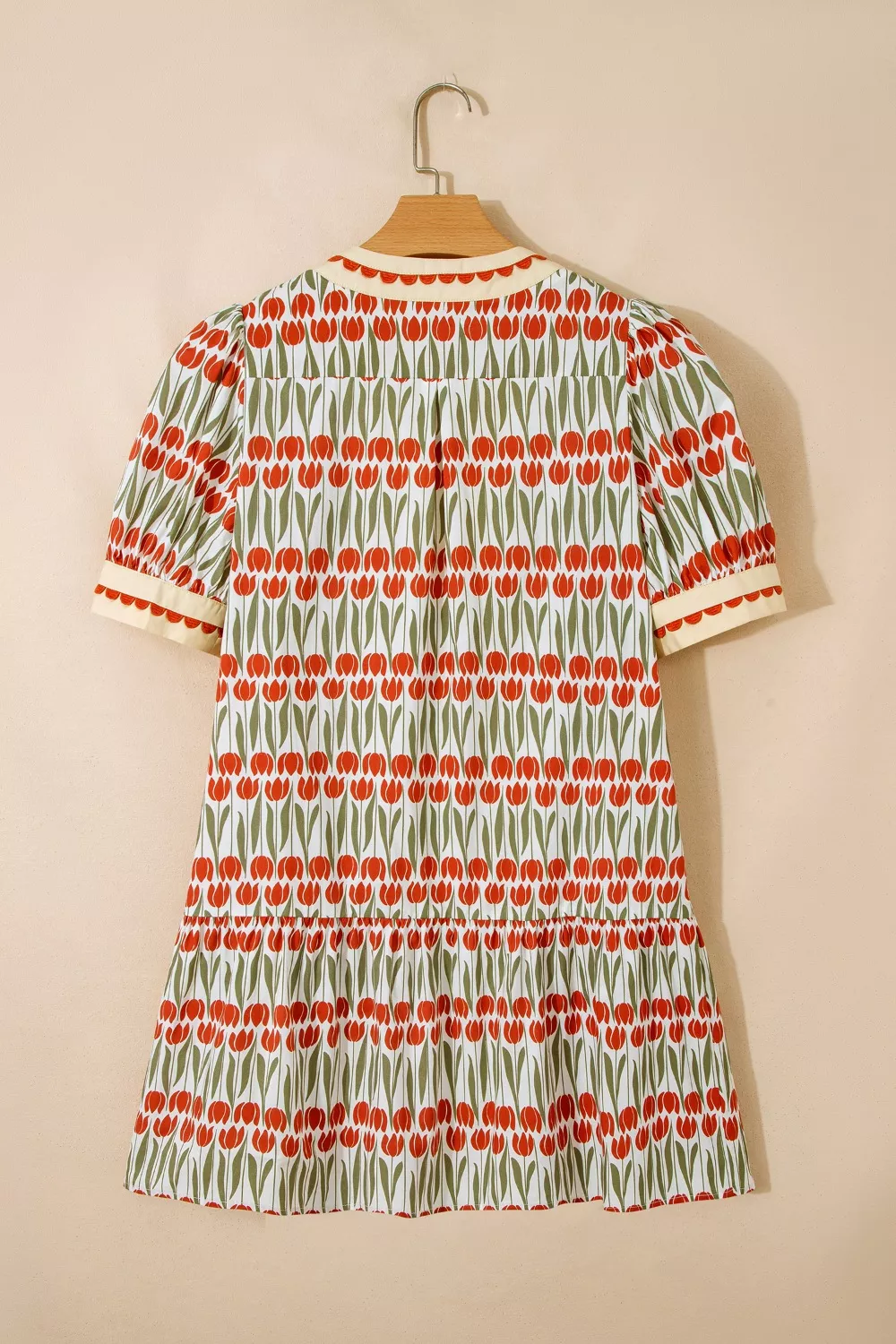 Tulip Floral Print Cotton Puff Short Sleeve Mini Dress