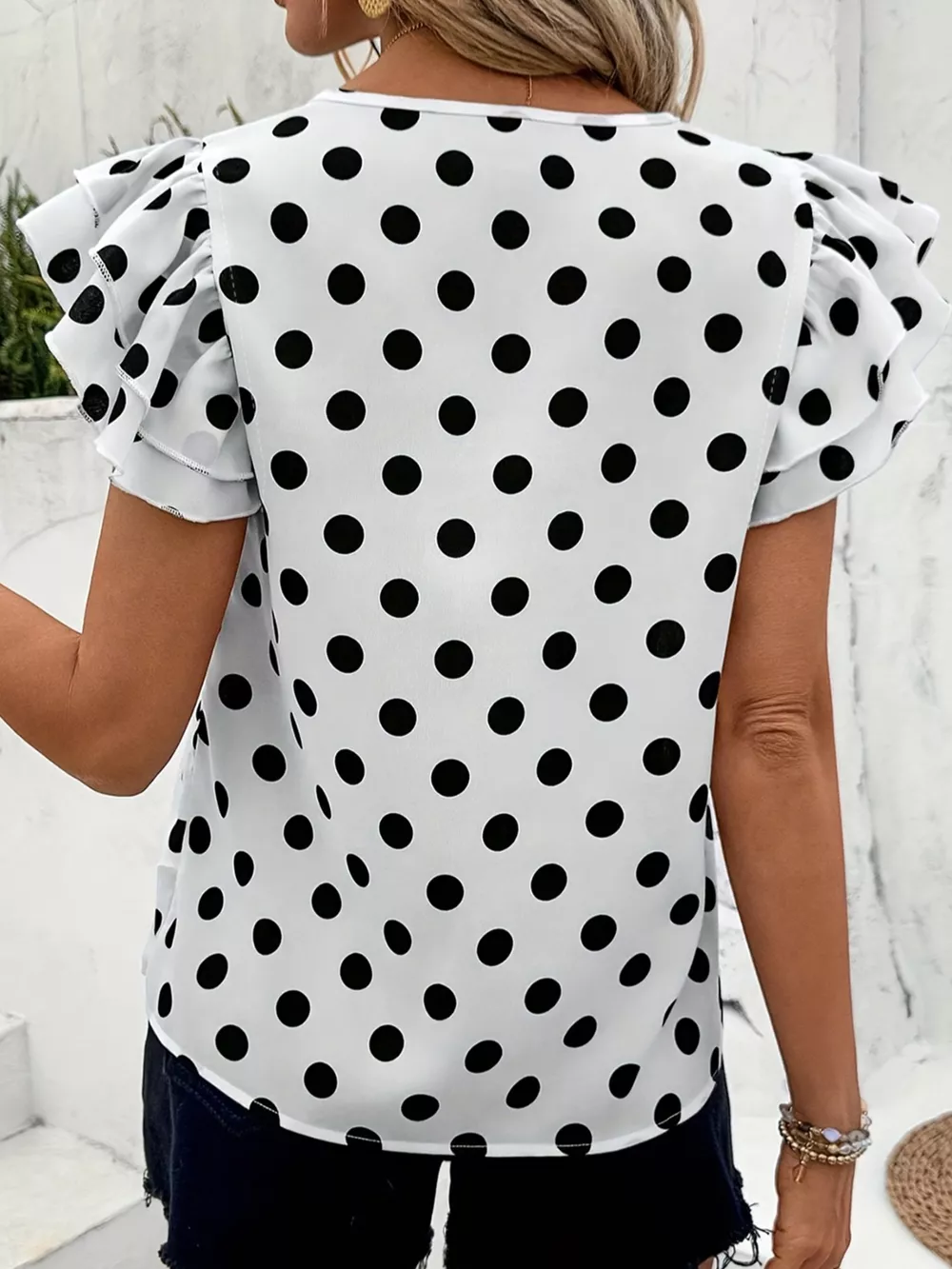 Polka Dot Print Ruffled Short Sleeve Blouse