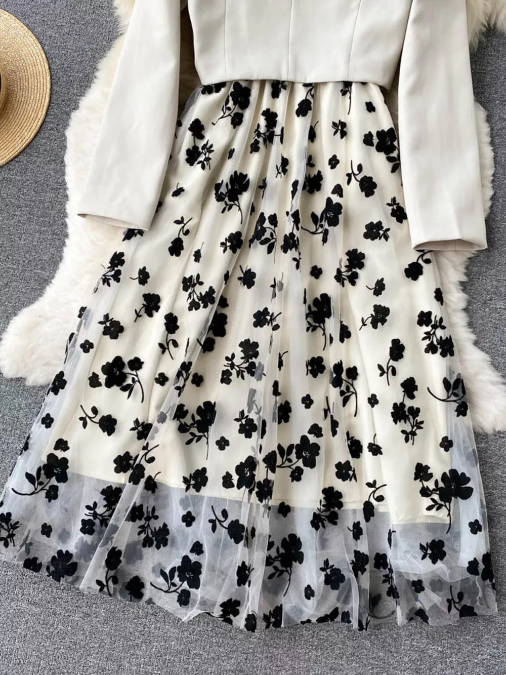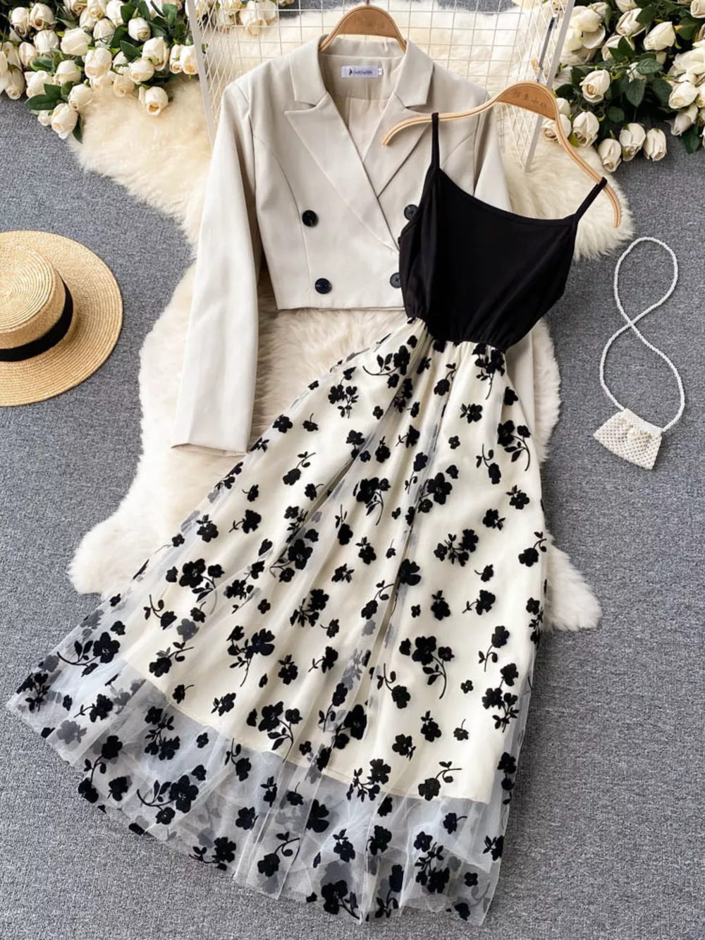 Floral Mesh Dress & Blazer Set
