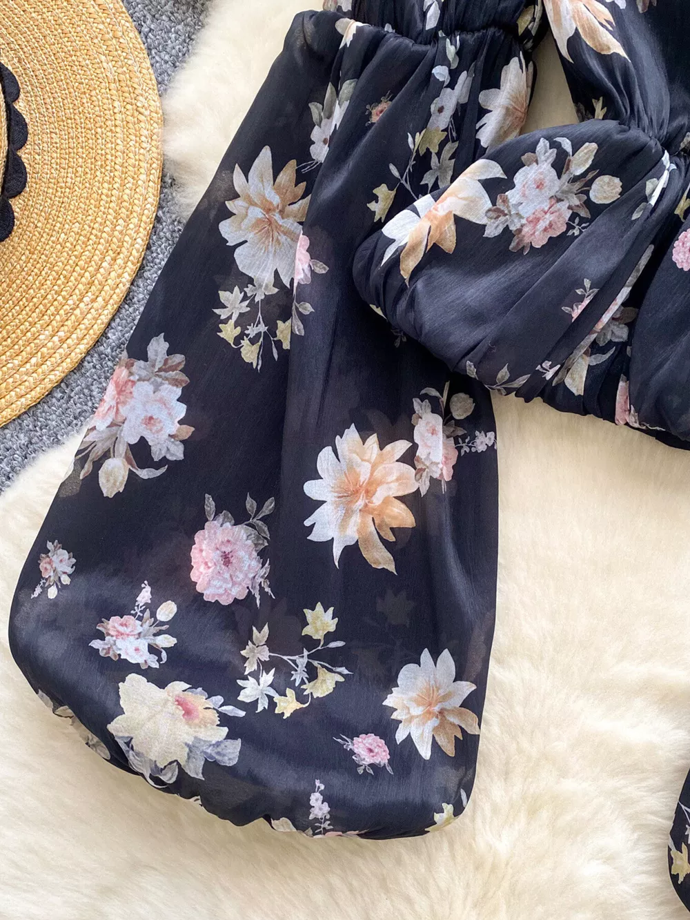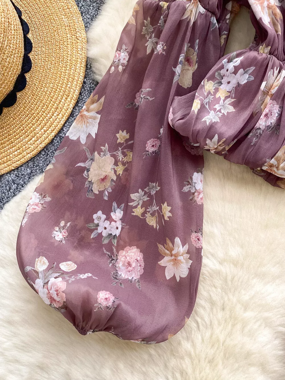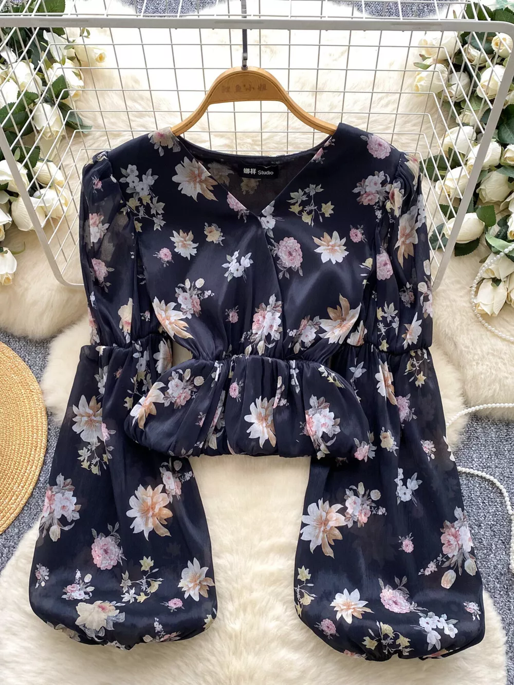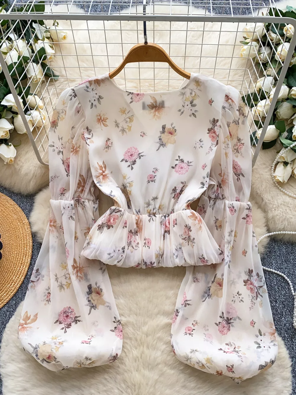 Floral Print Chiffon Balloon Sleeve Blouse