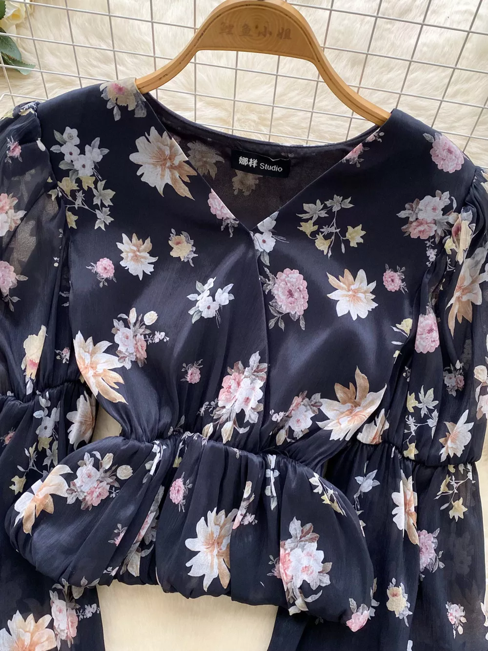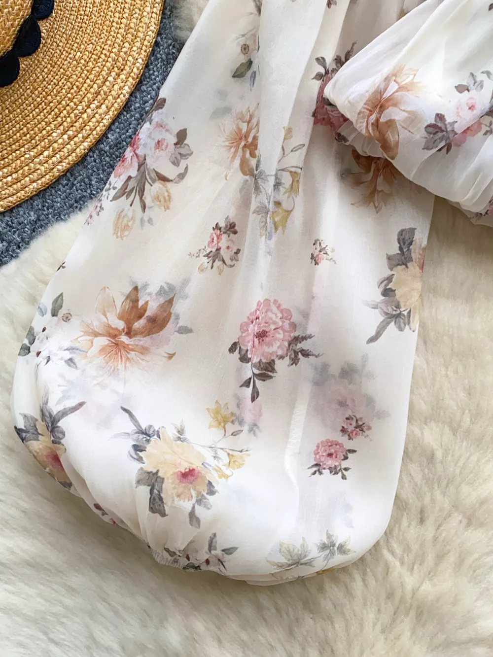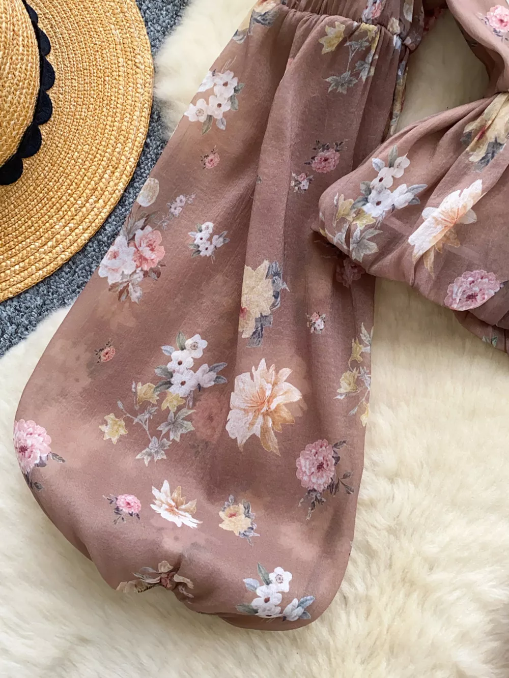 Floral Print Chiffon Balloon Sleeve Blouse