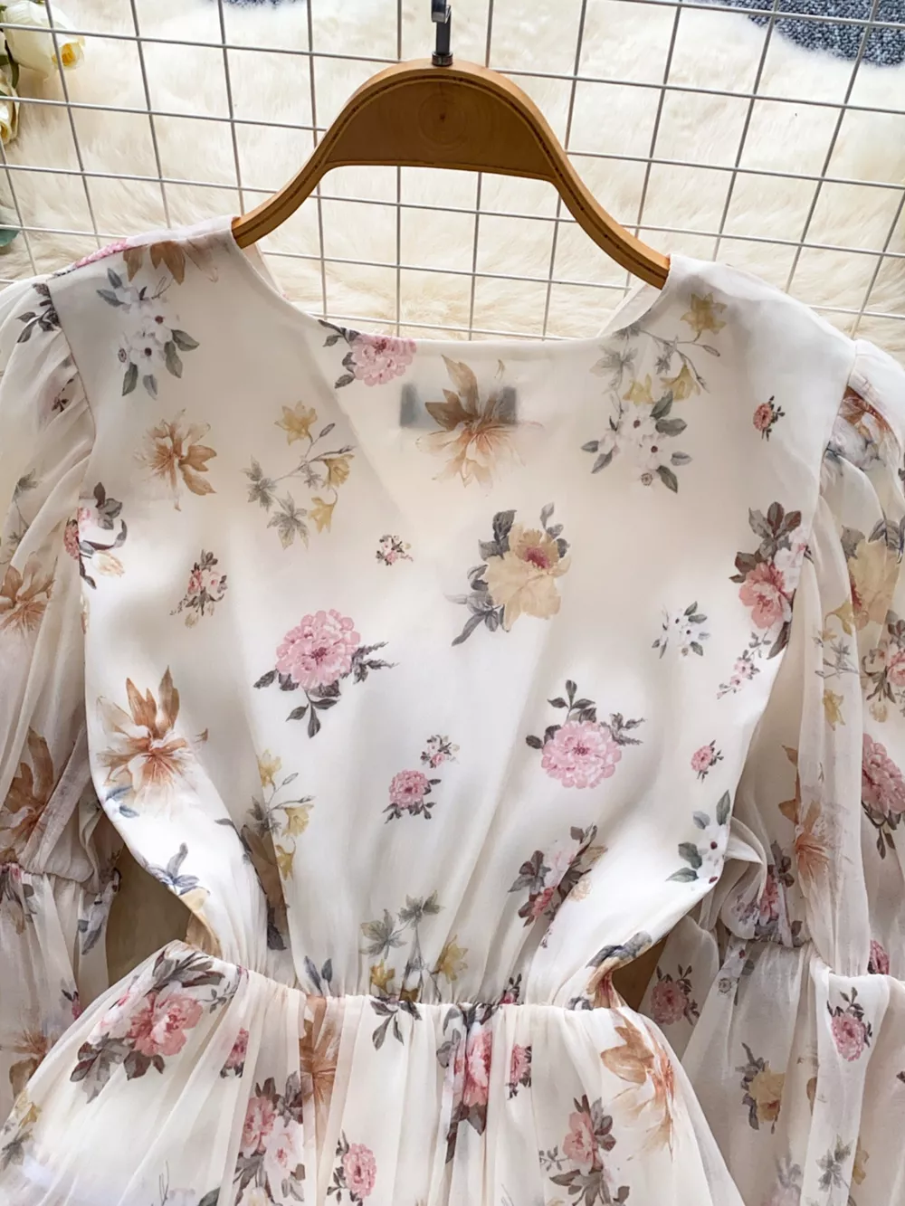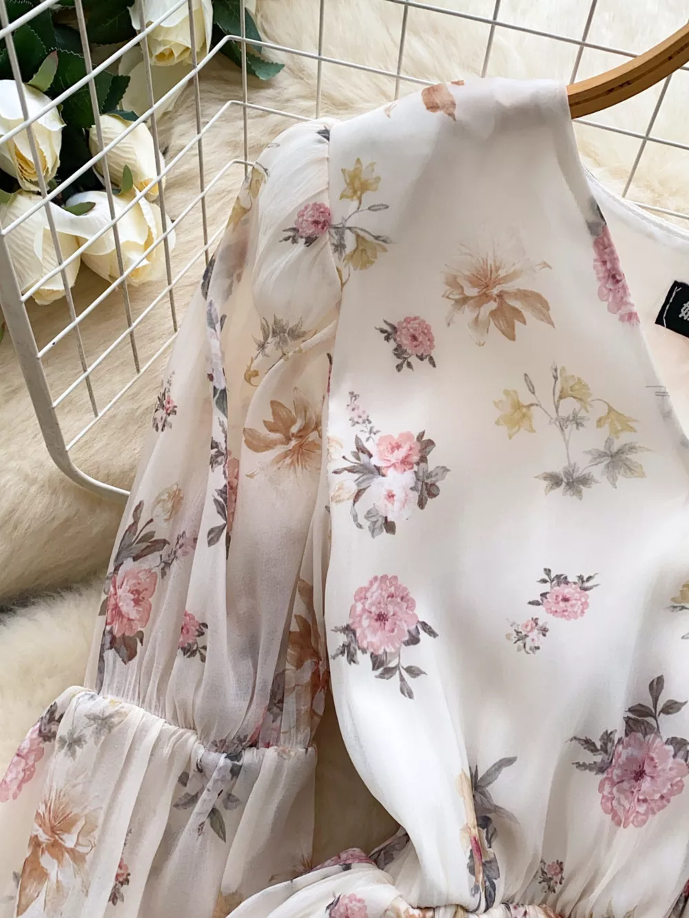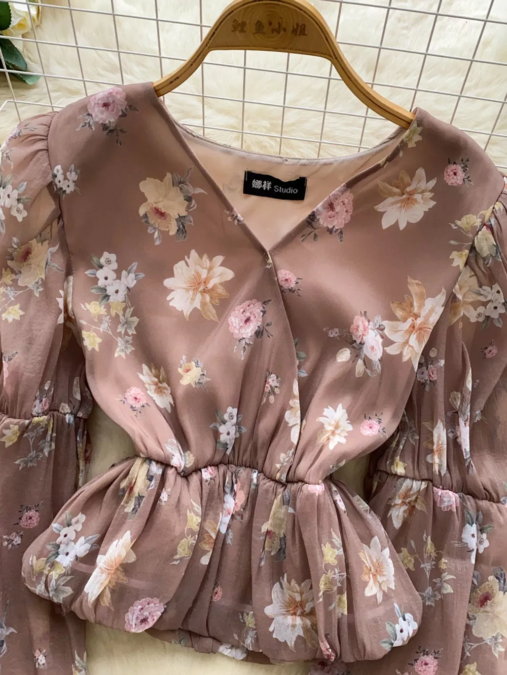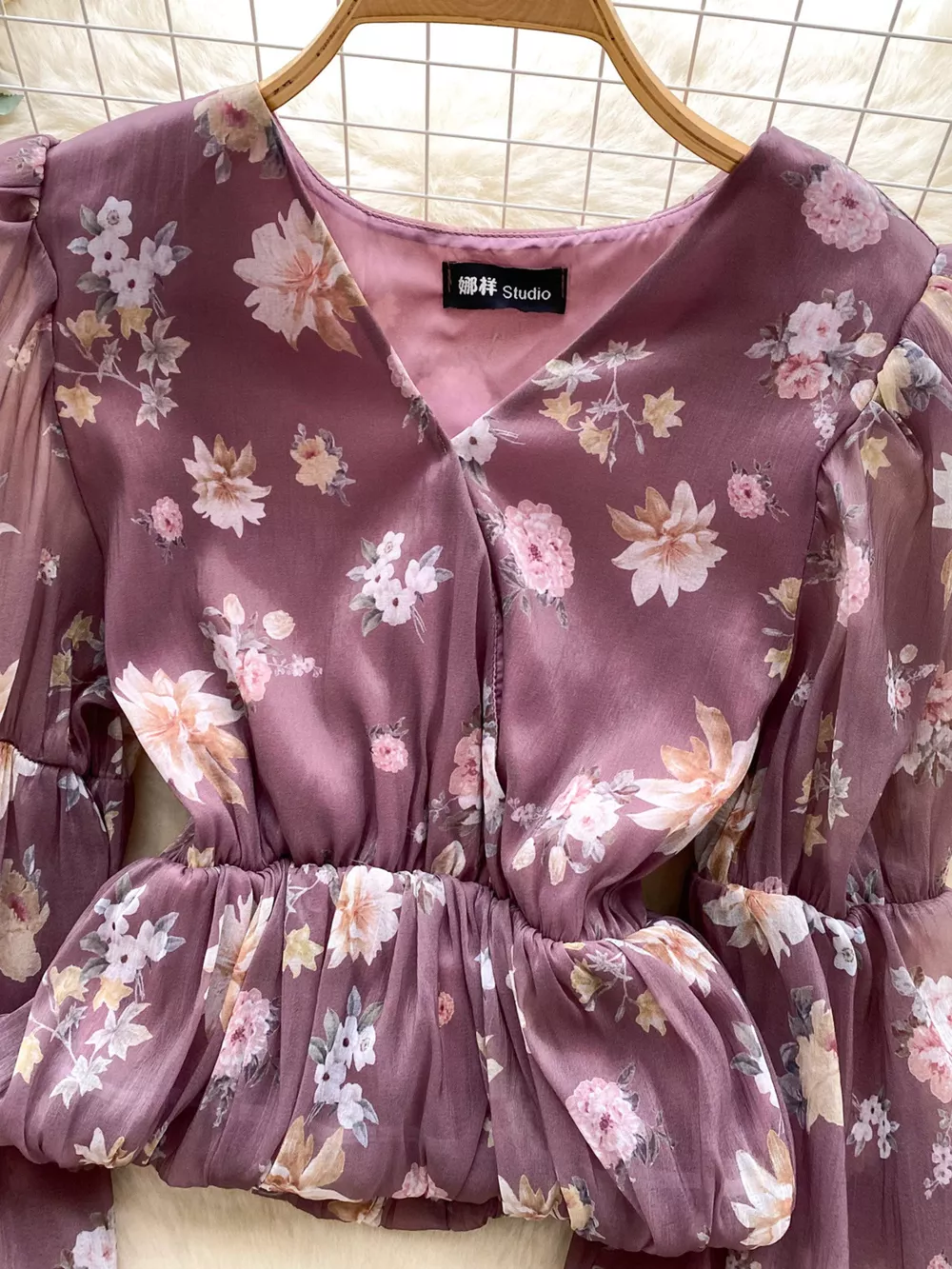 Floral Print Chiffon Balloon Sleeve Blouse