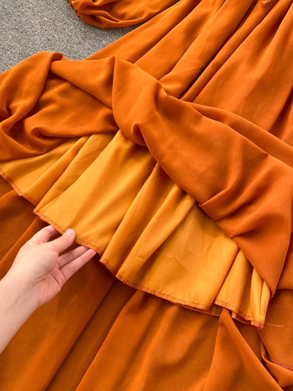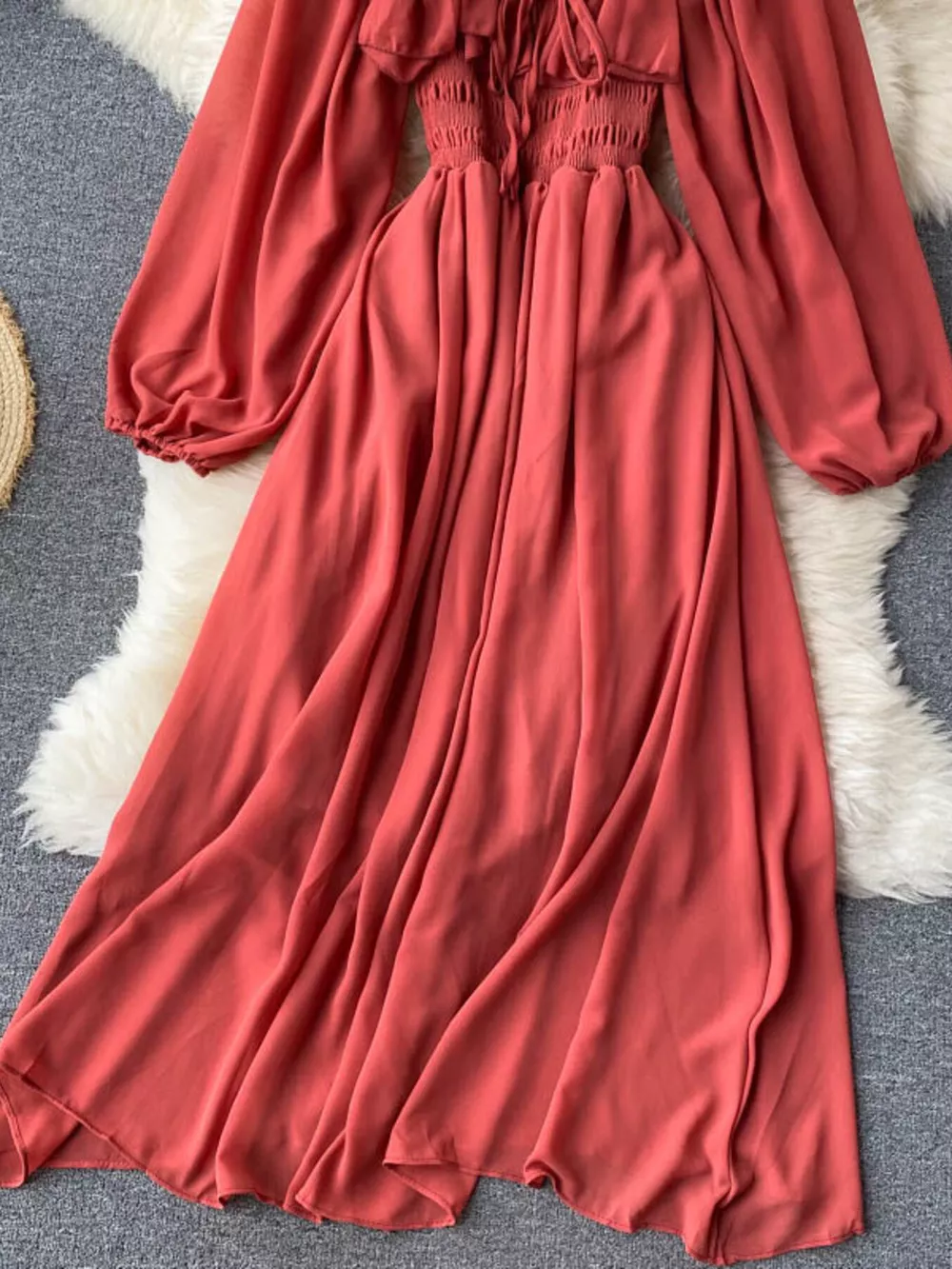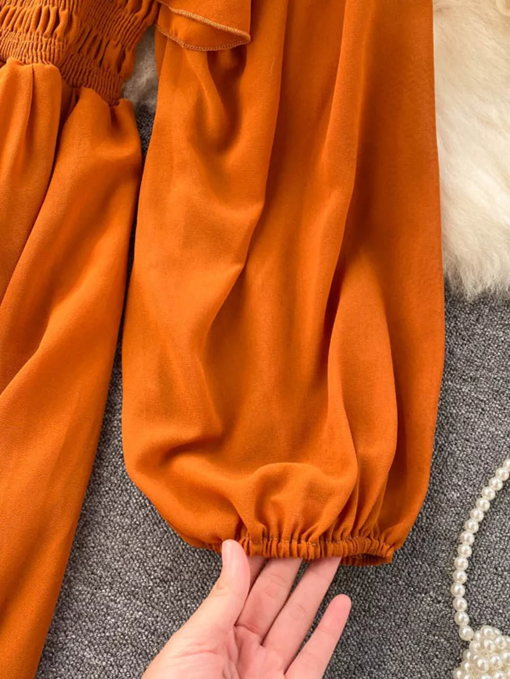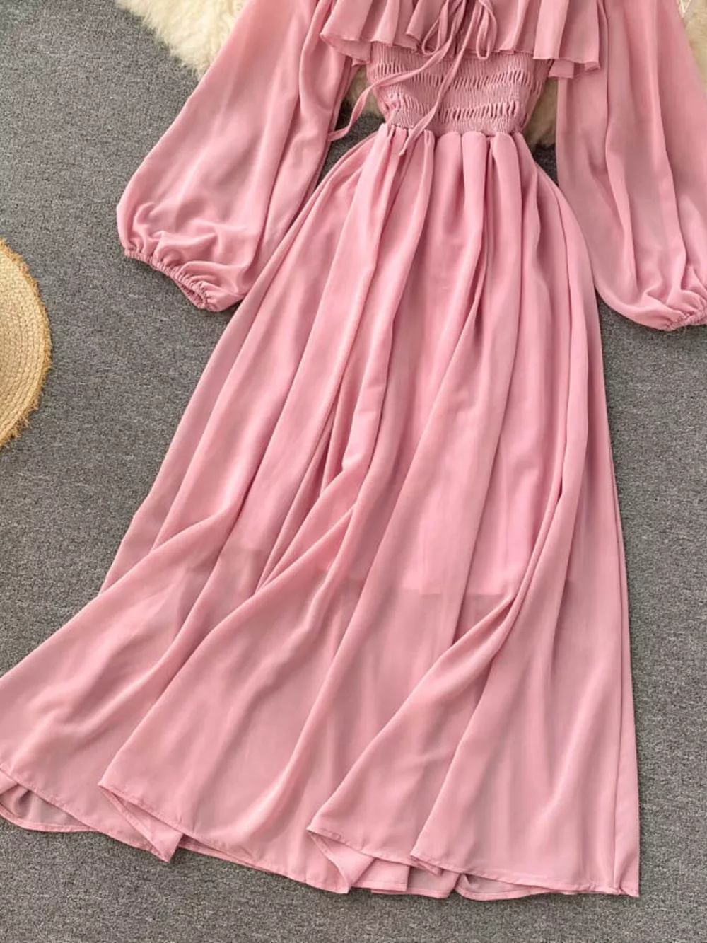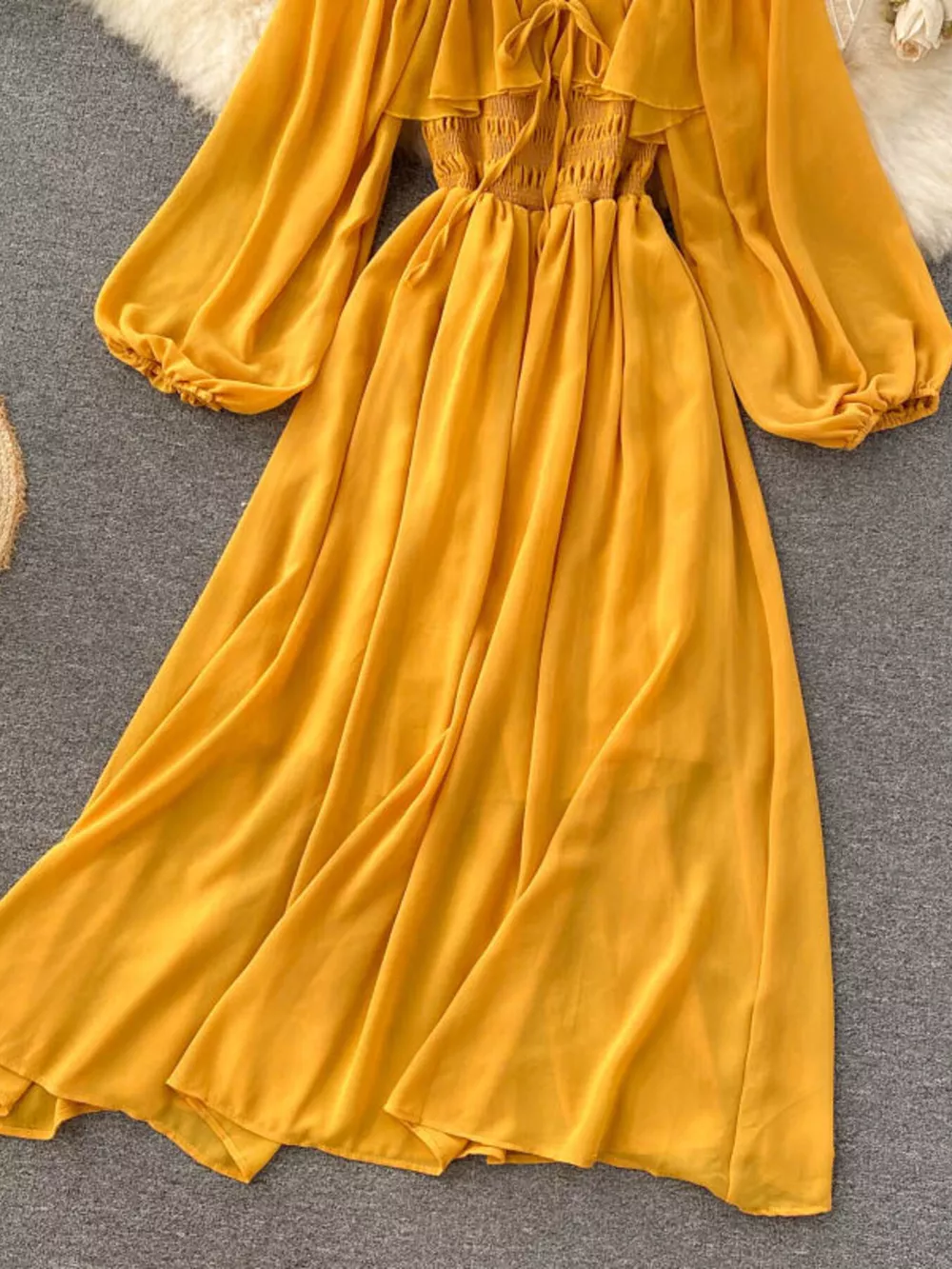 Ruffle Square Neck Balloon Sleeve A-Line Dress