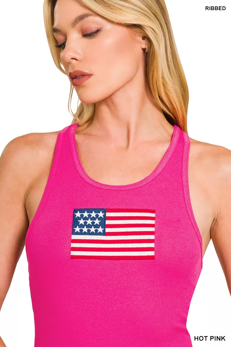 Zenana American Flag Embroidery Stretchy Ribbed Tank