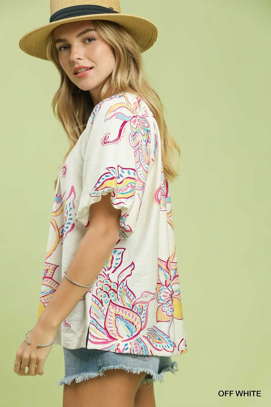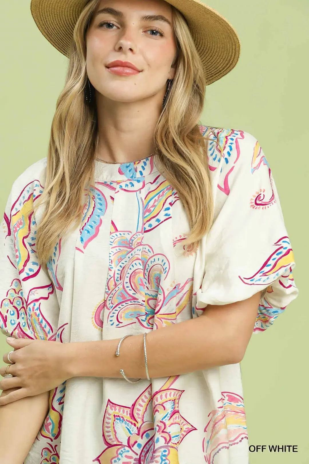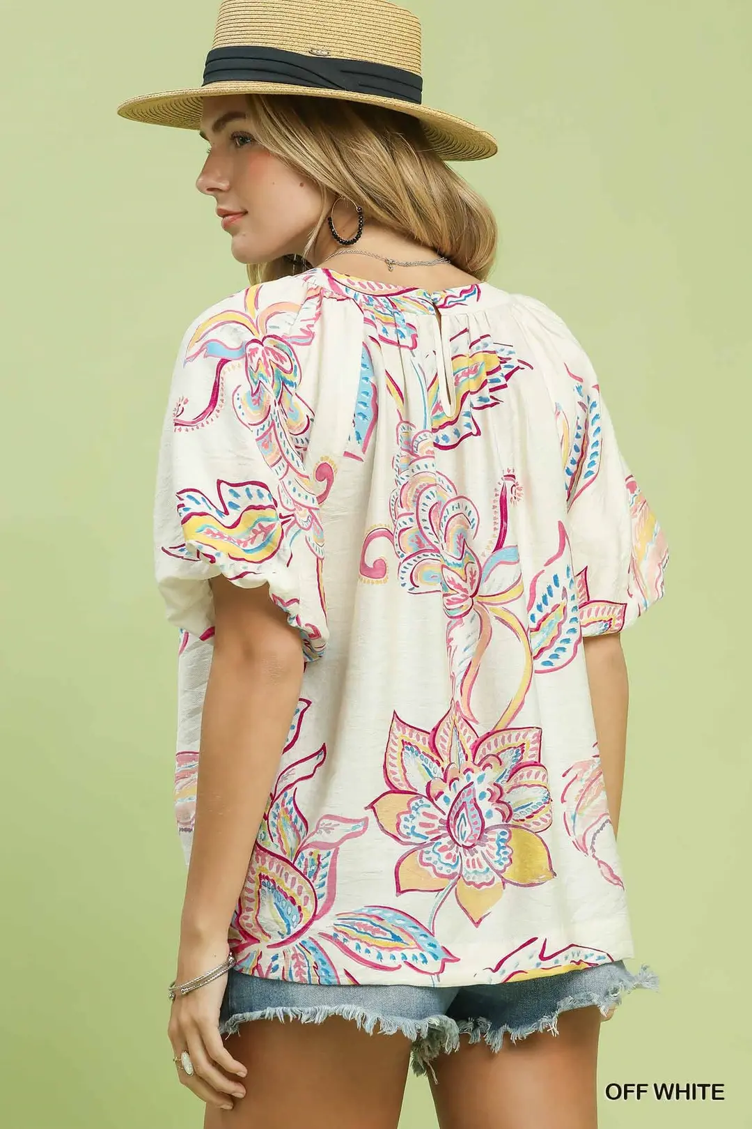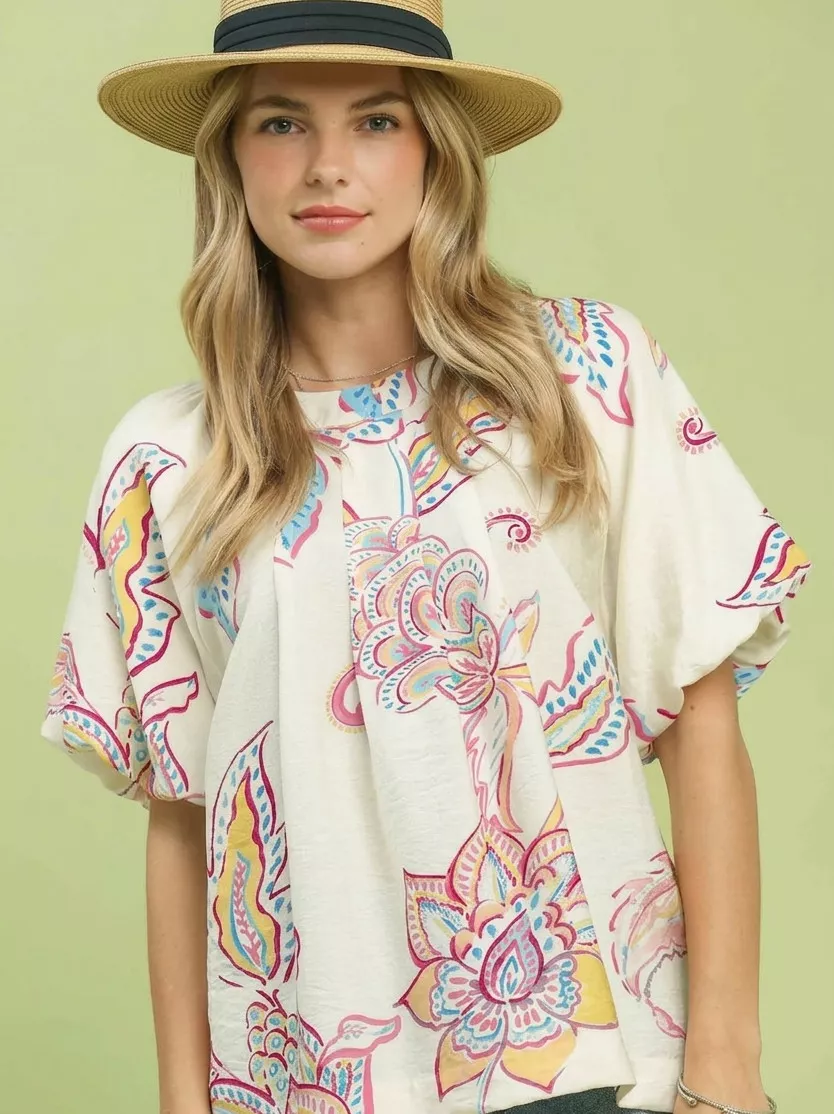 Umgee Paisley Print Puff Sleeve Top