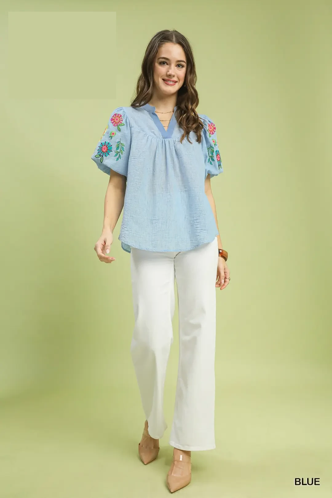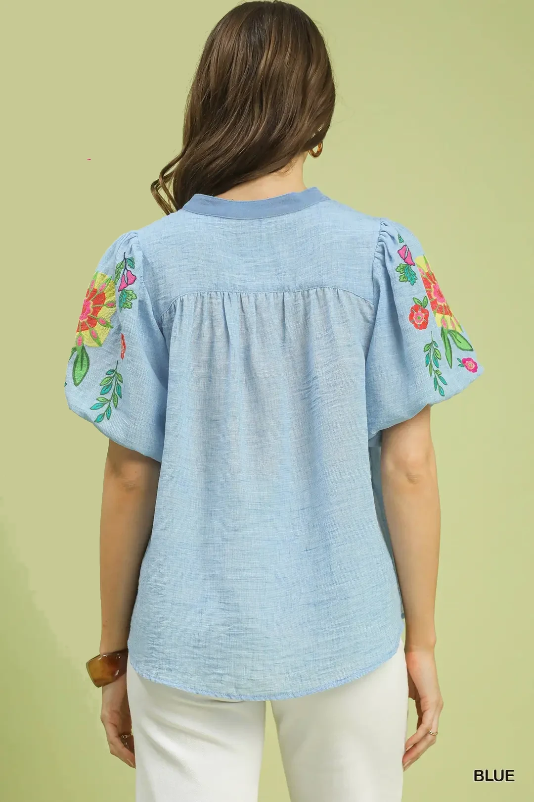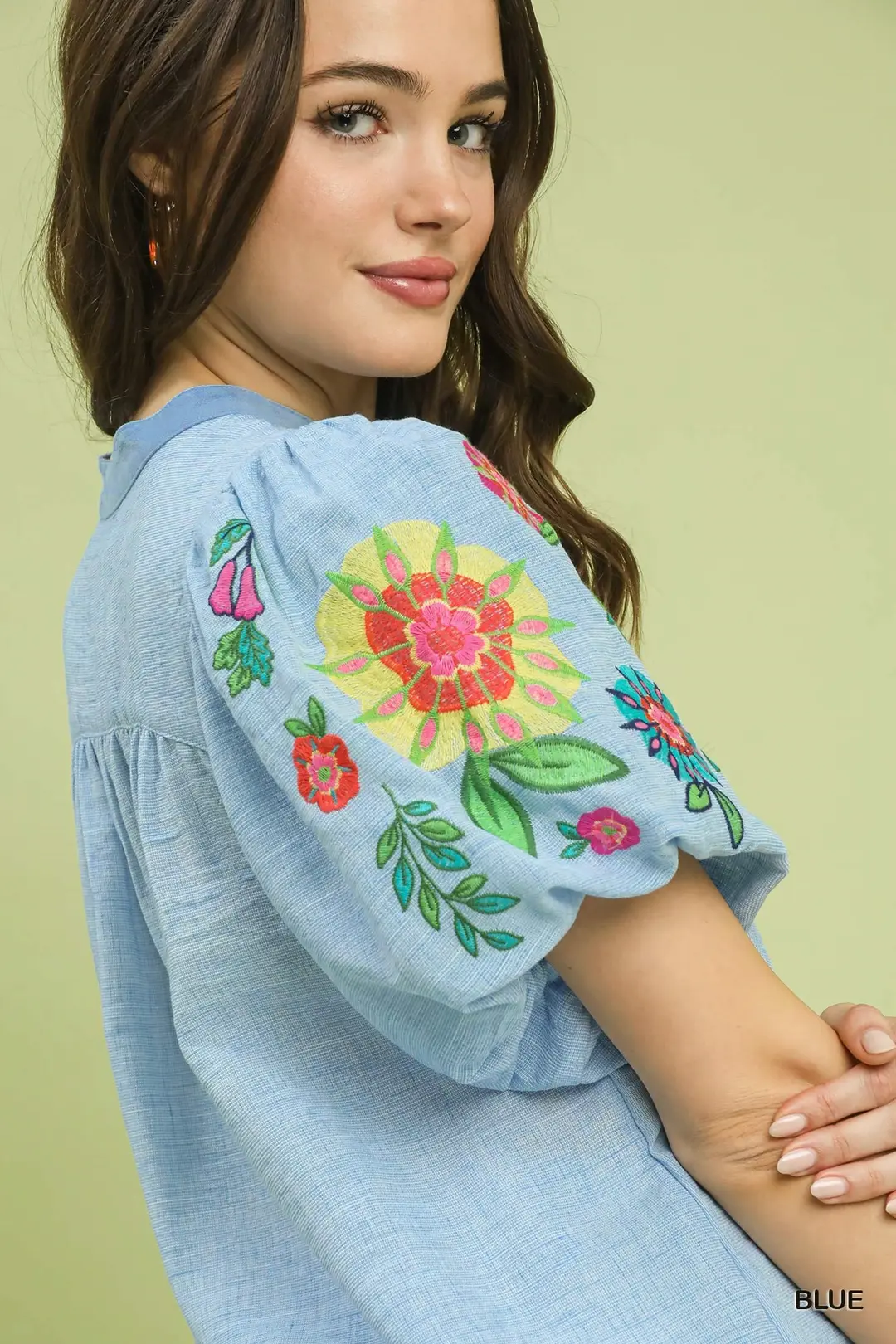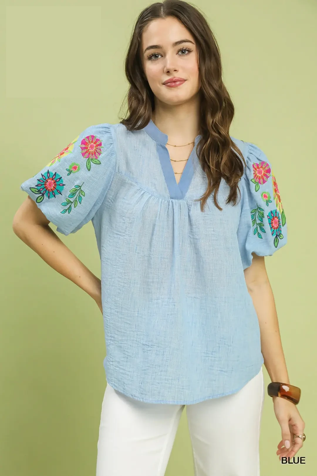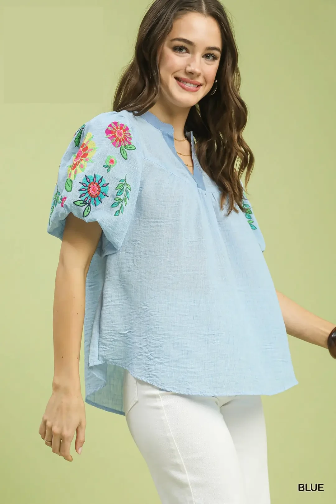 Umgee Embroidered Puff Sleeve Top