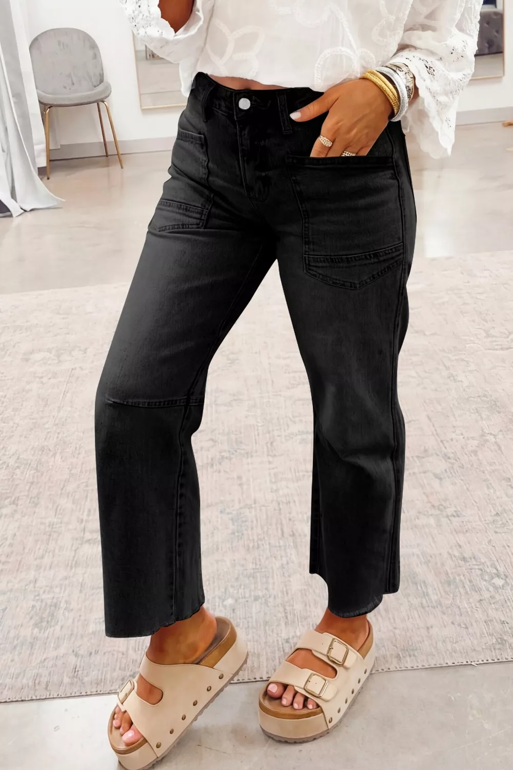 Frayed Cropped Straight Jeans
