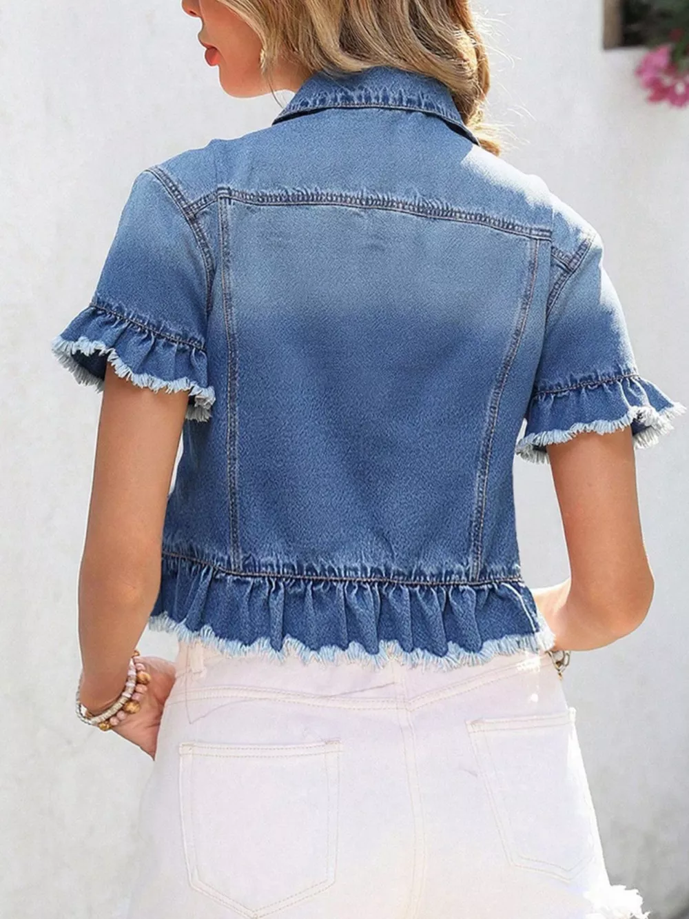 Ruffle Hem Short Sleeve Denim Jacket