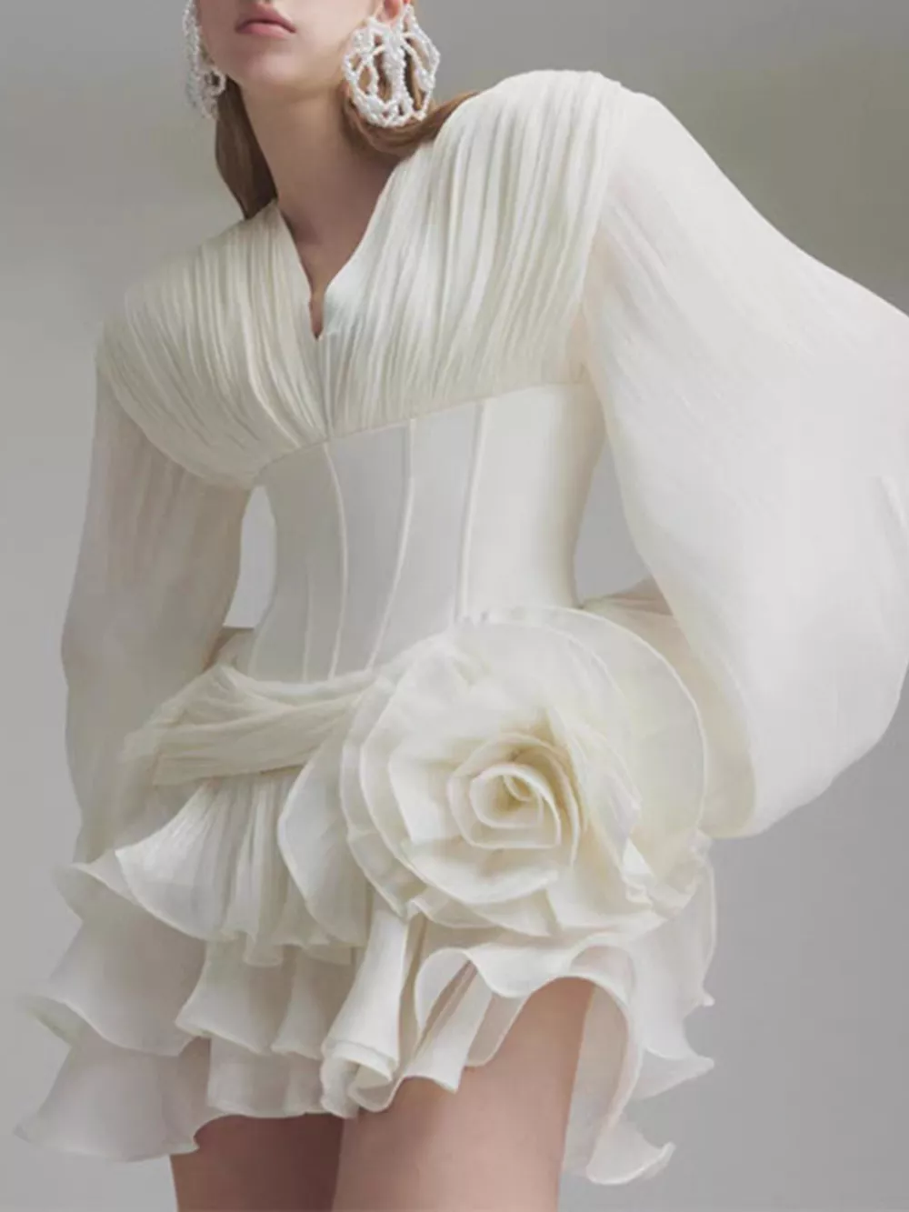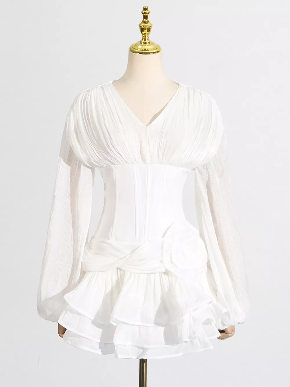 Ruffle Balloon Sleeve Mini Dress