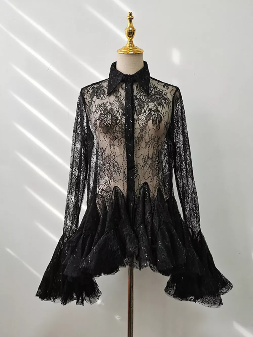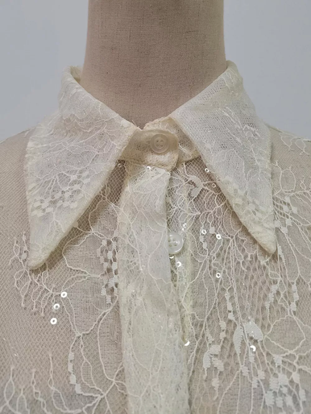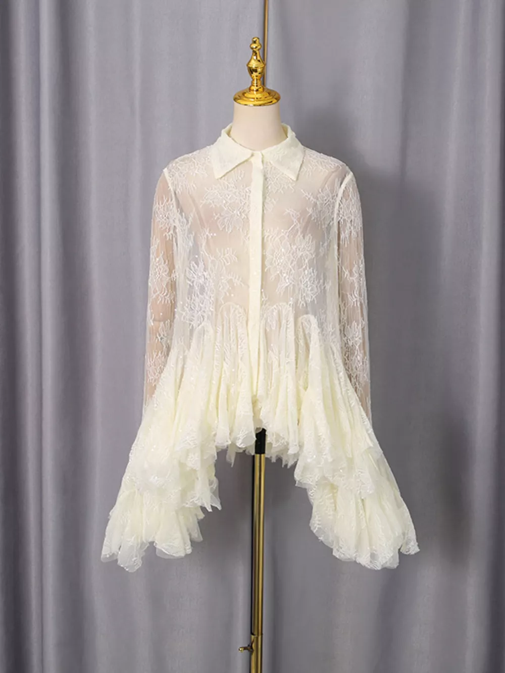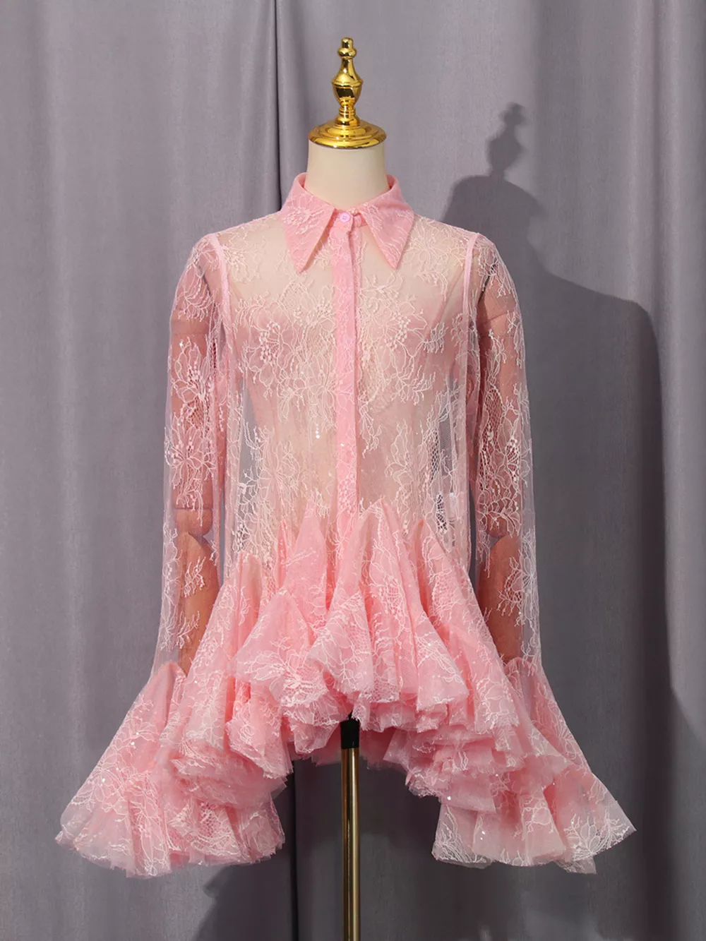 - Features:Lace,Buttoned,Sheer,Ruched