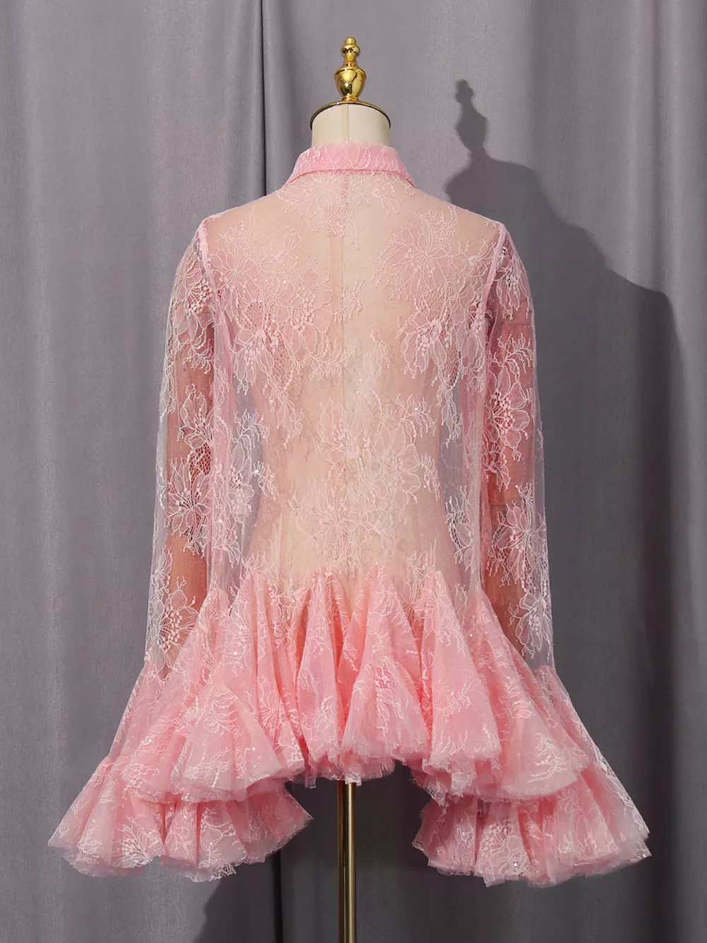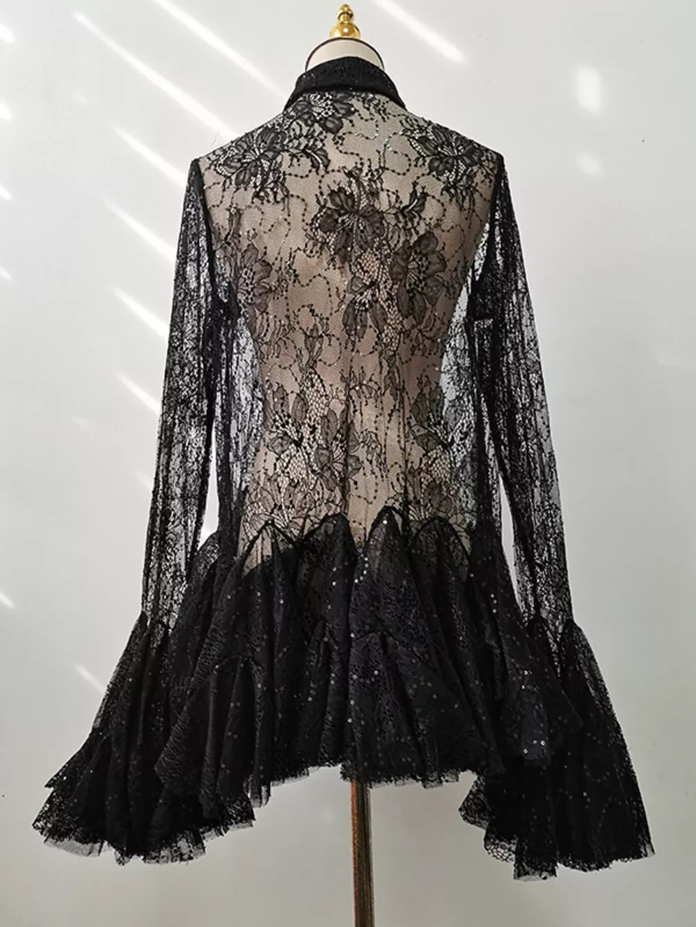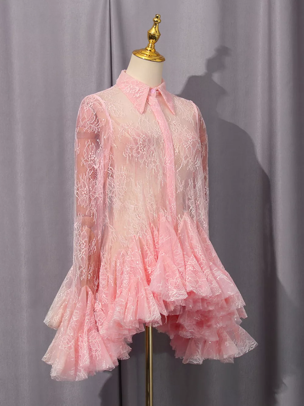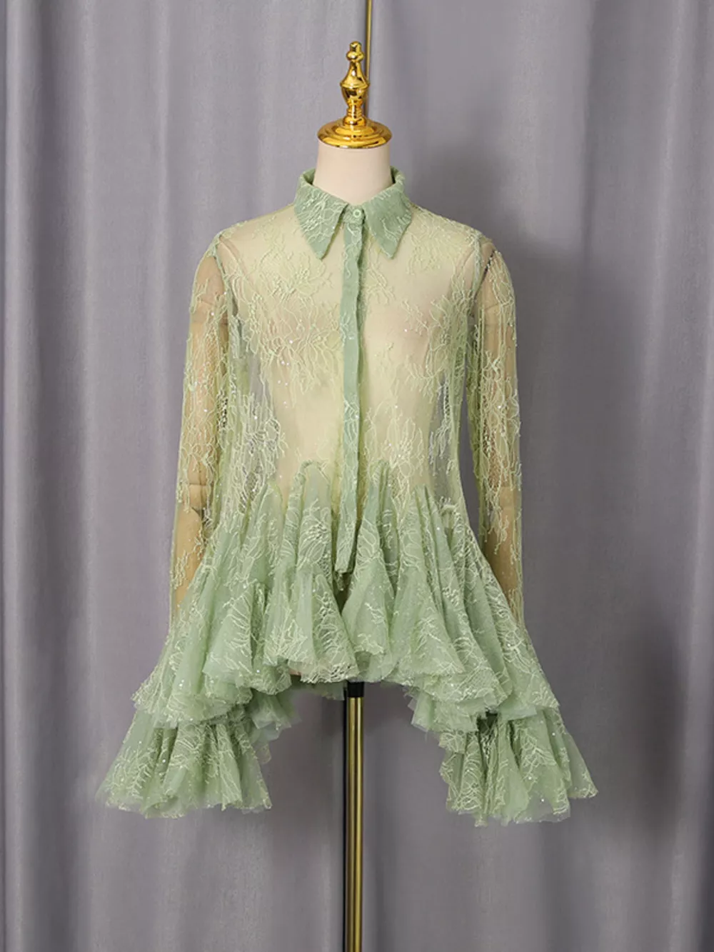 - Features:Lace,Buttoned,Sheer,Ruched