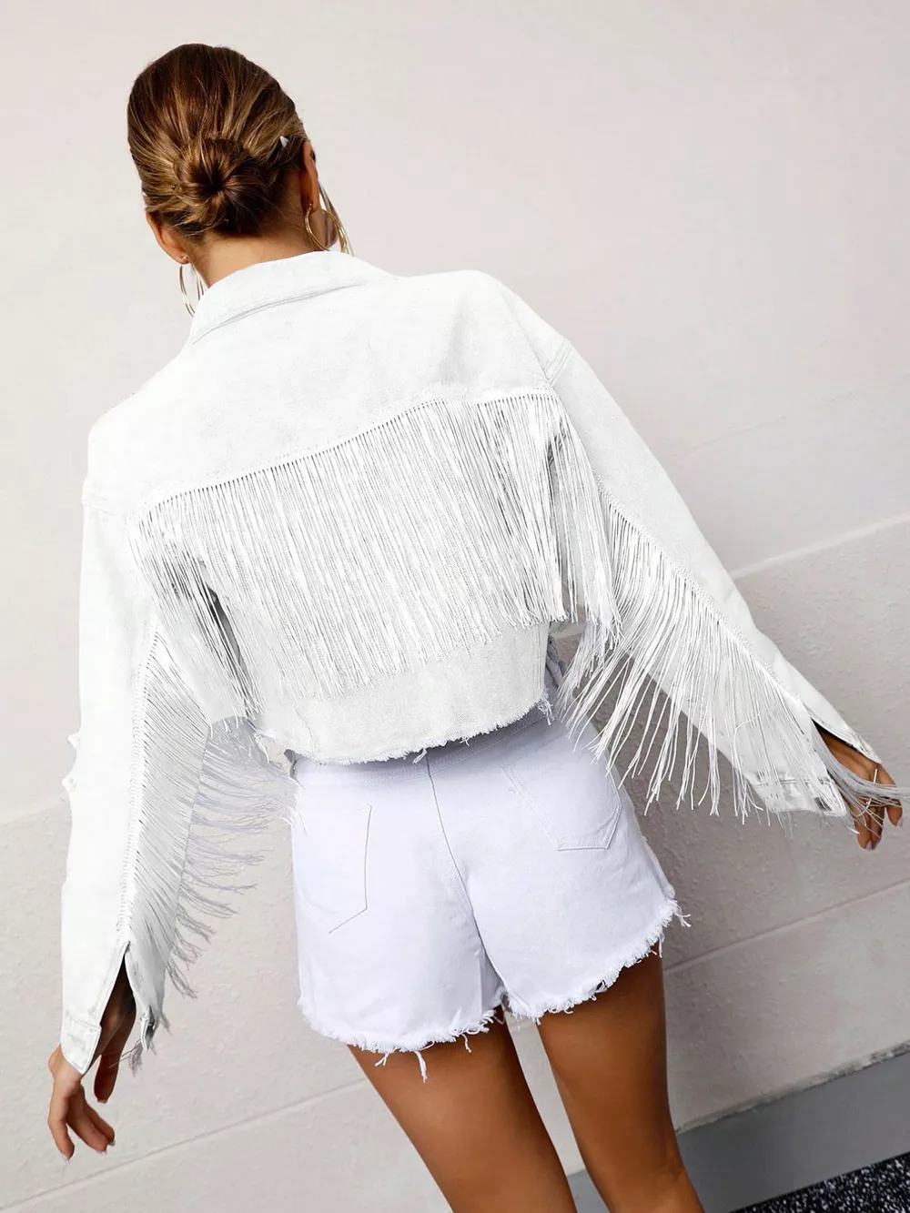 Fringed Cropped Denim Jacket