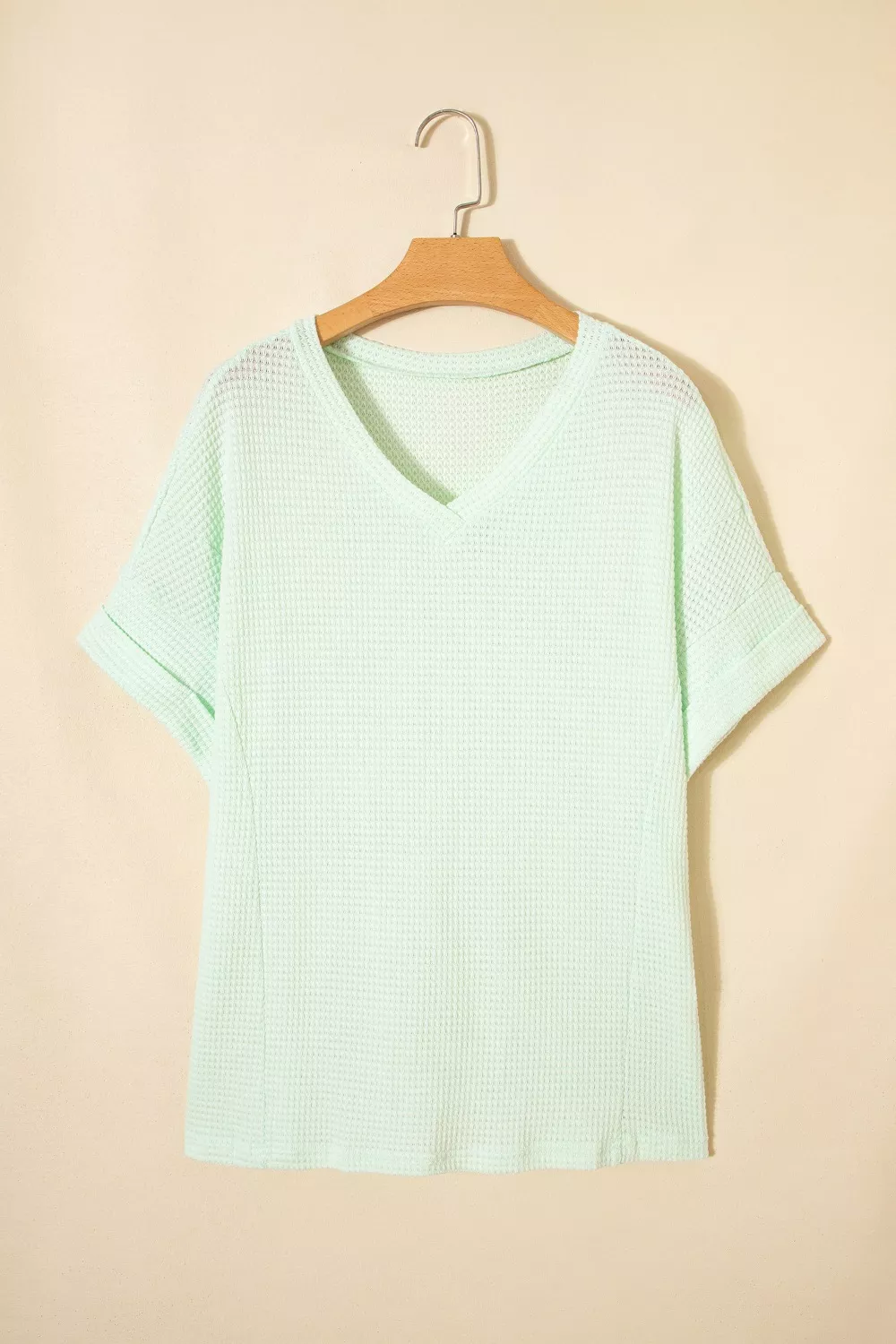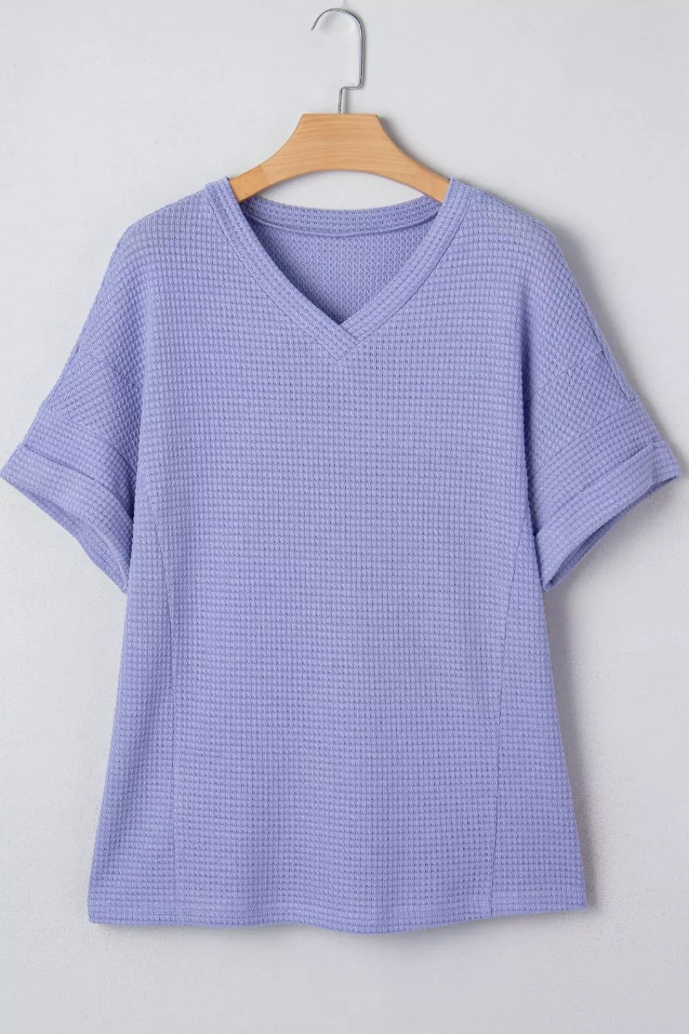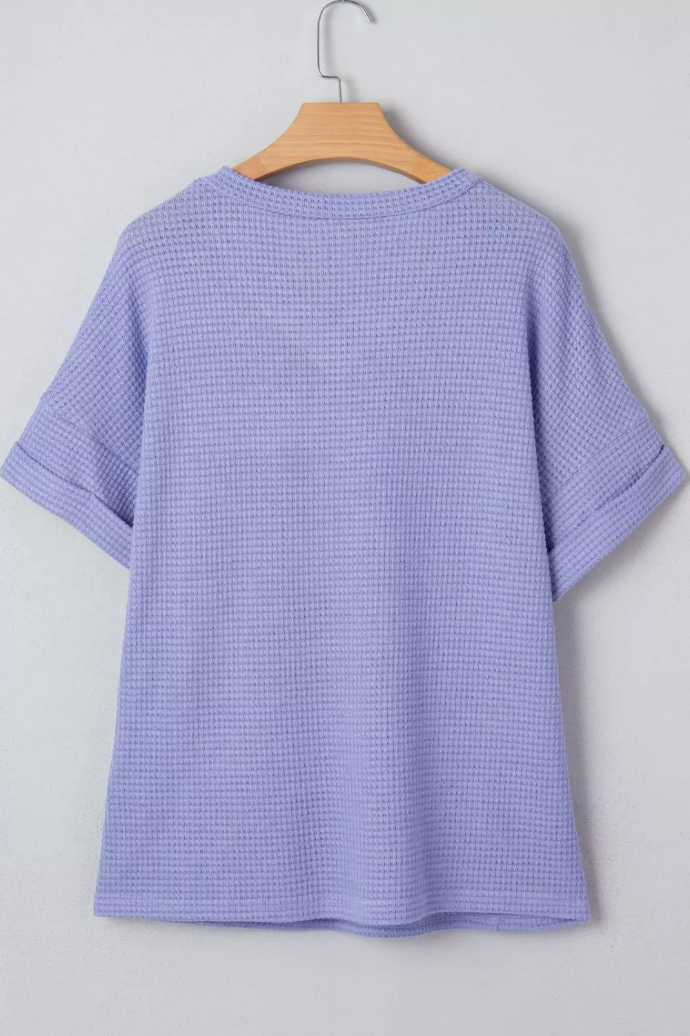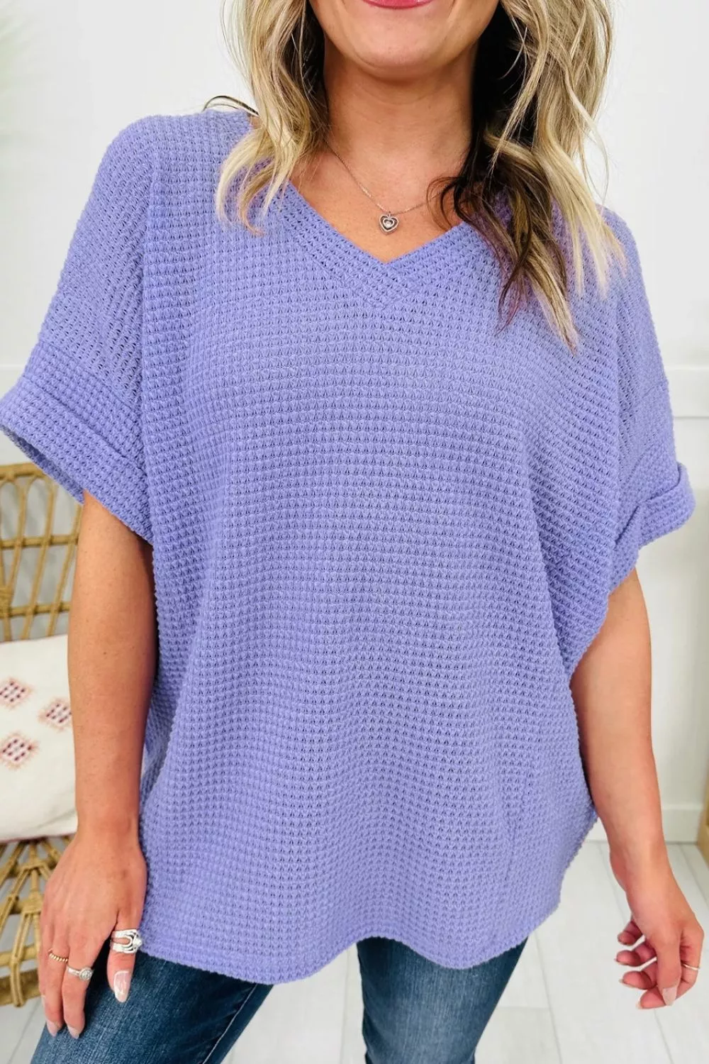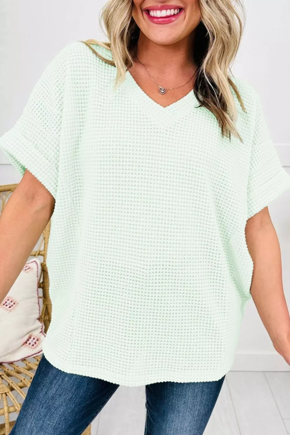 V Neck Short Sleeve Plus Size Waffle Knit Top