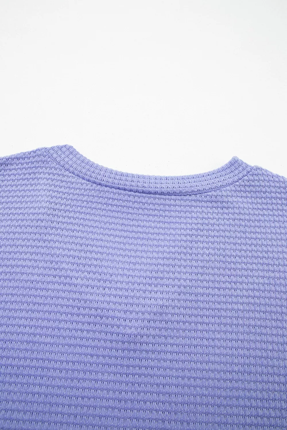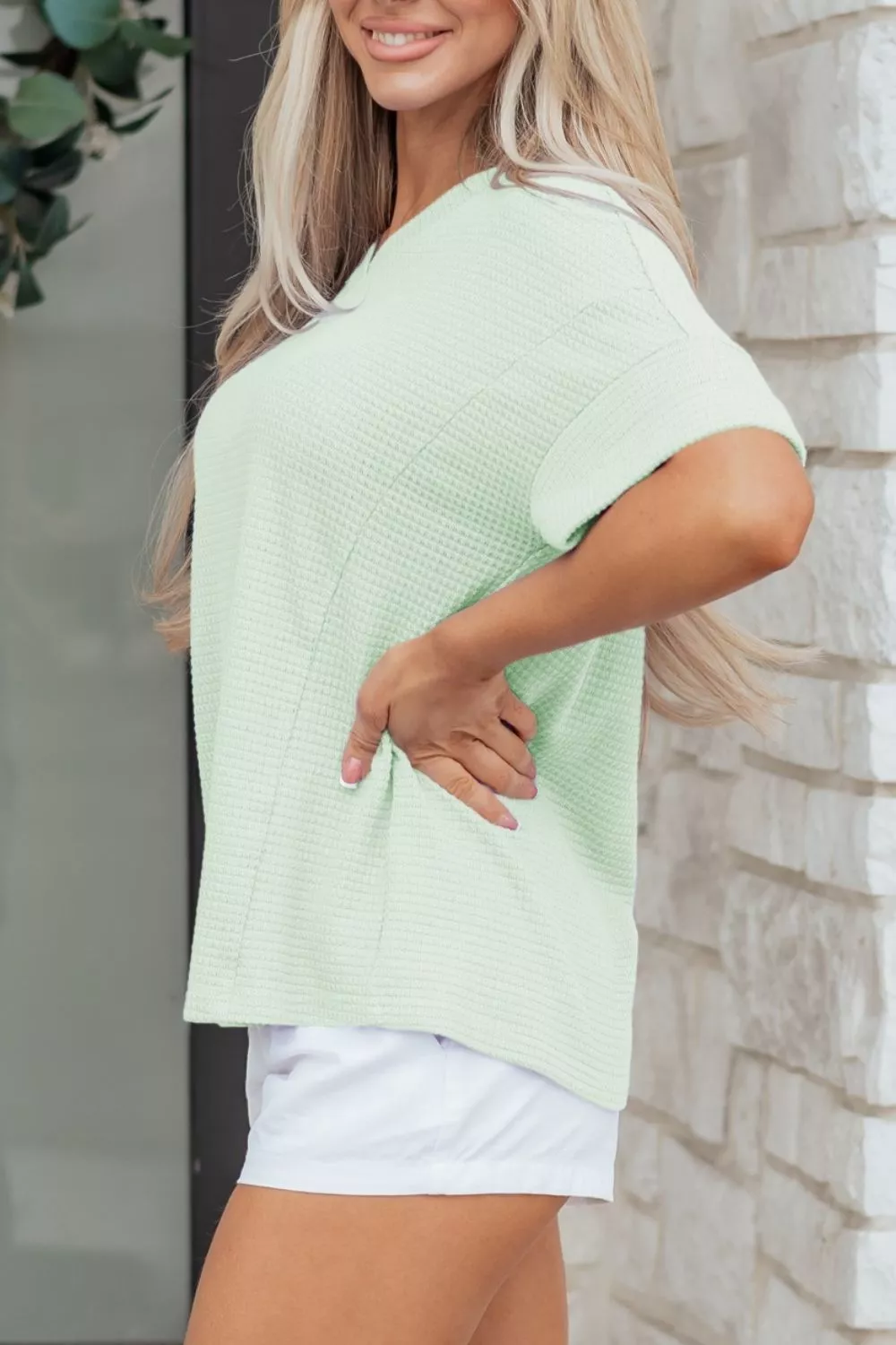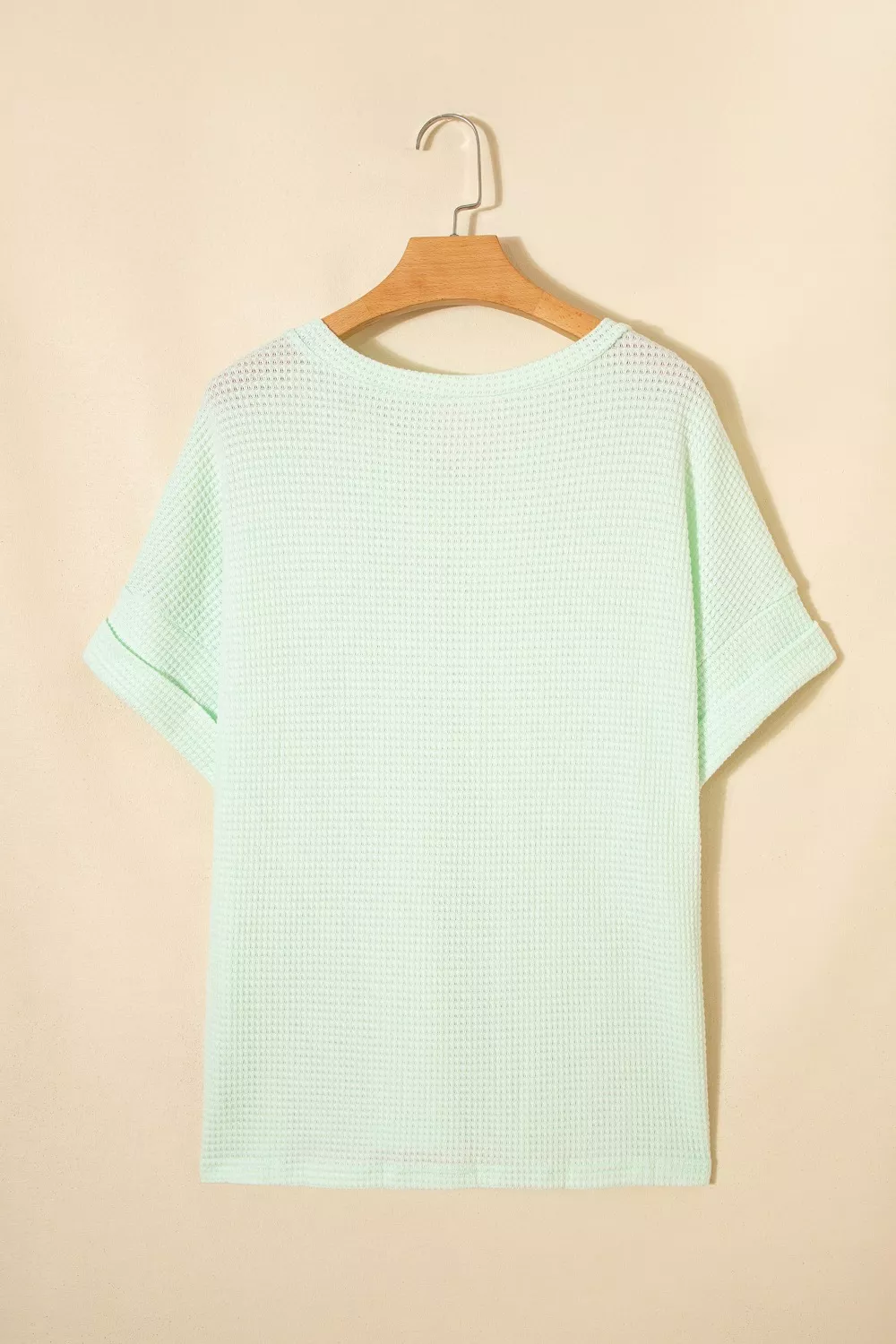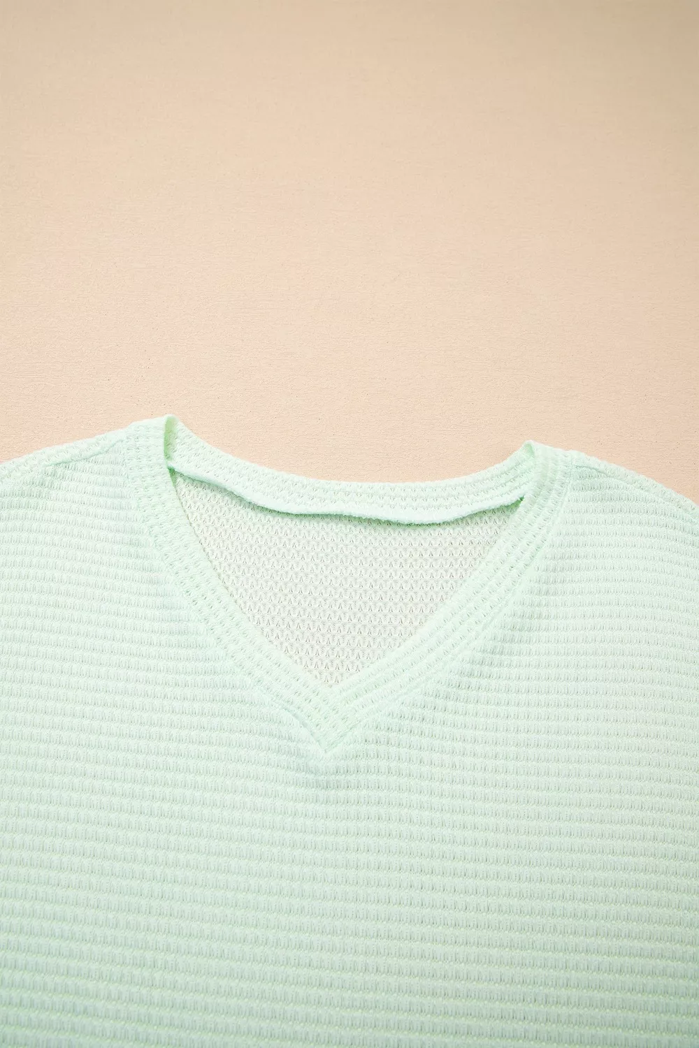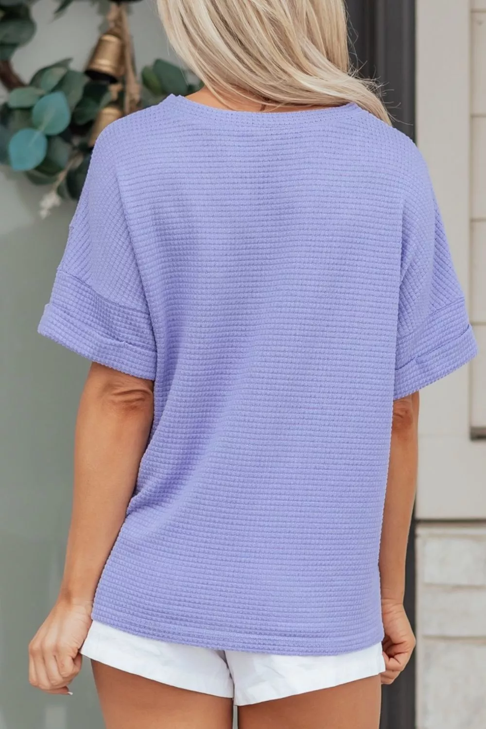 V Neck Short Sleeve Plus Size Waffle Knit Top