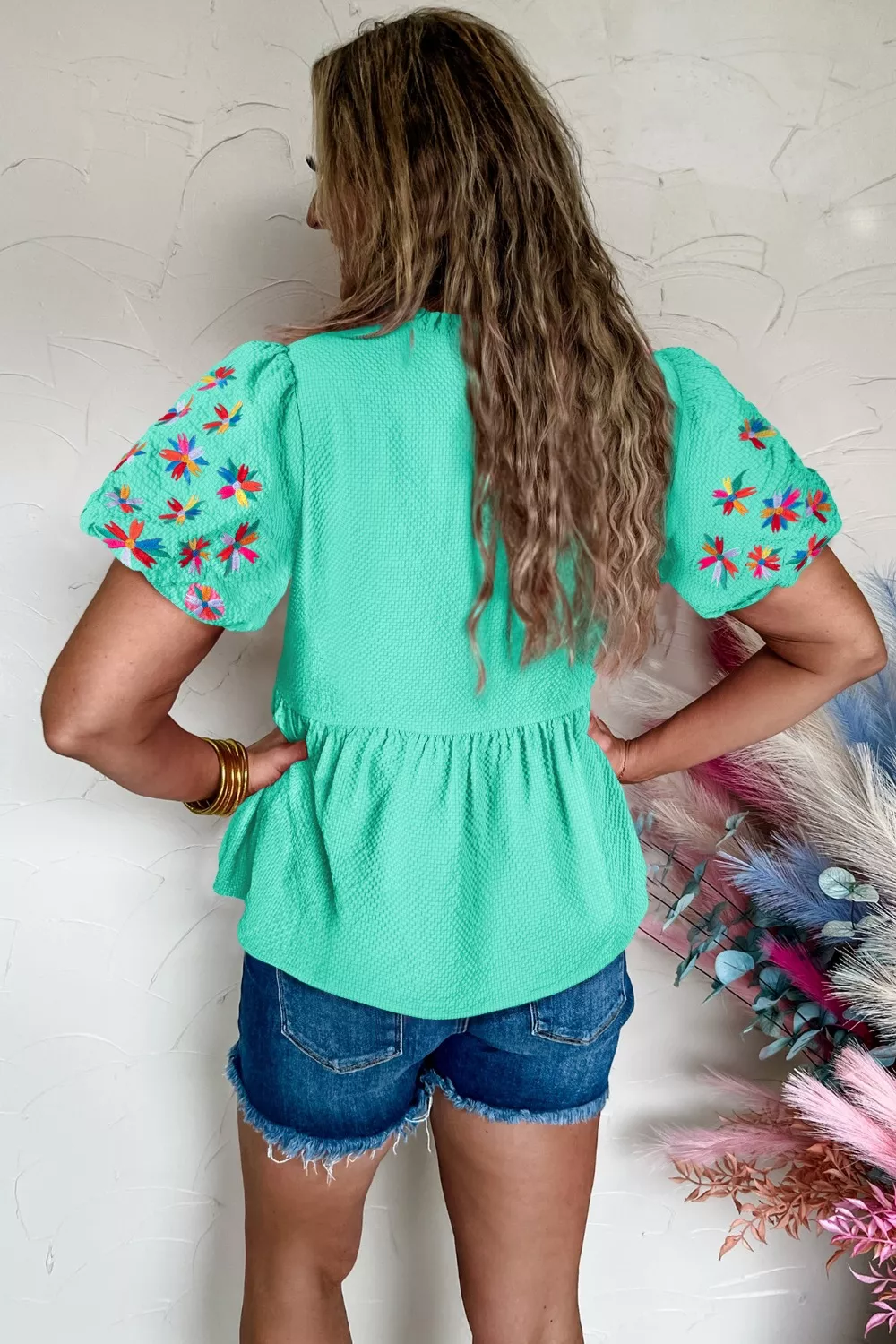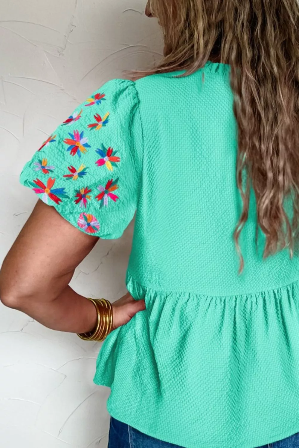 Embroidered Sleeve Textured Blouse