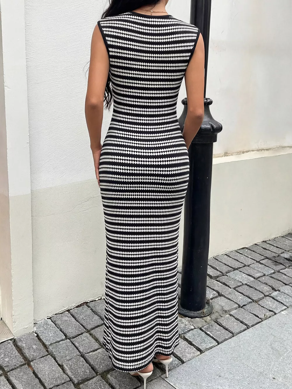 Striped Sleeveless Bodycon Knit Maxi Dress