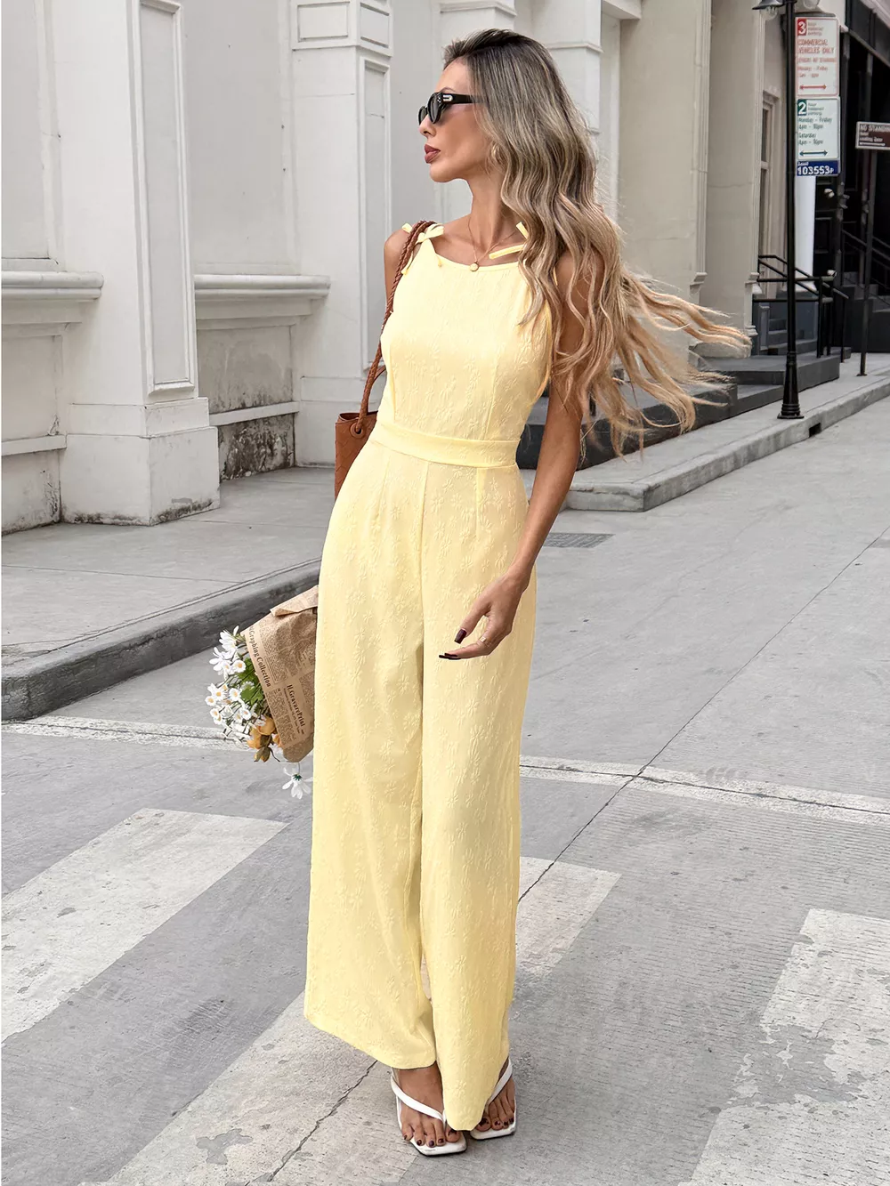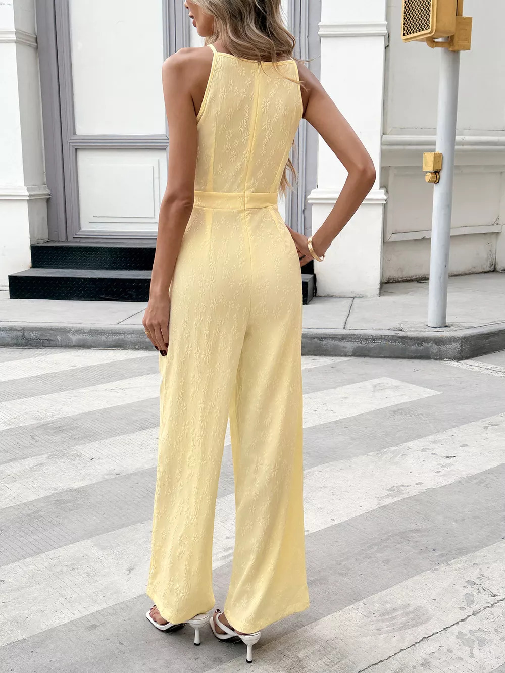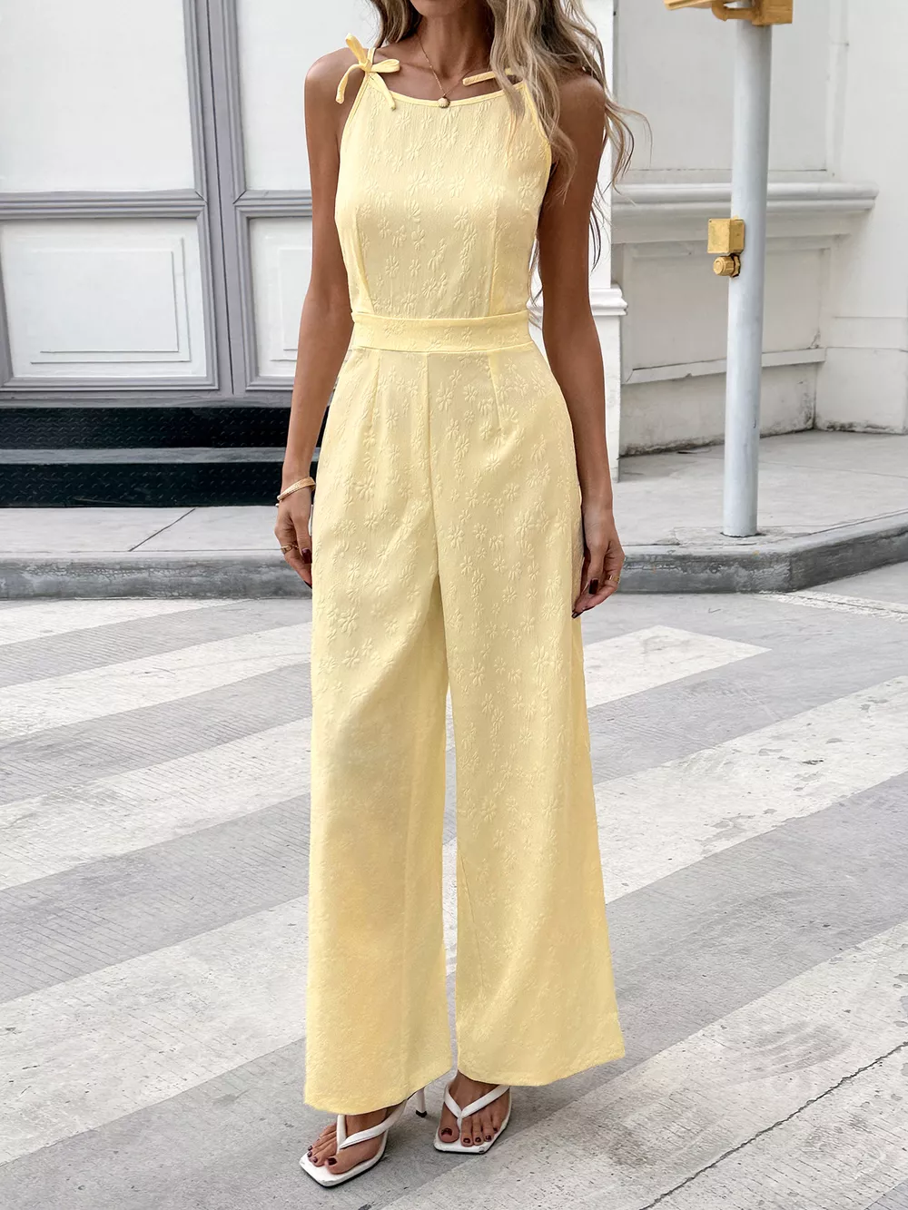 Tie Strap Textured Wide Leg Jumpsuit