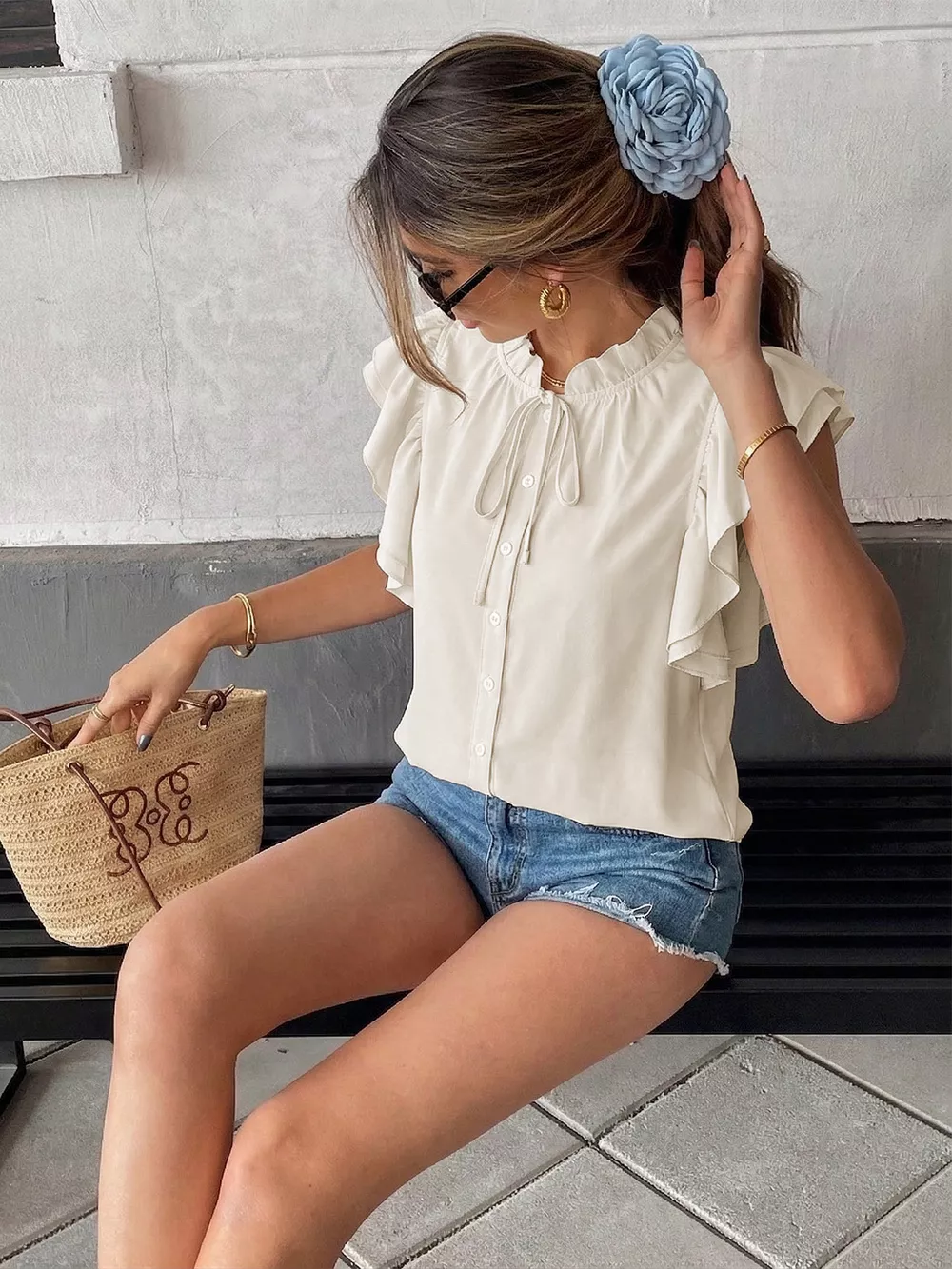 - Features:Buttoned,Ruffled,Bow