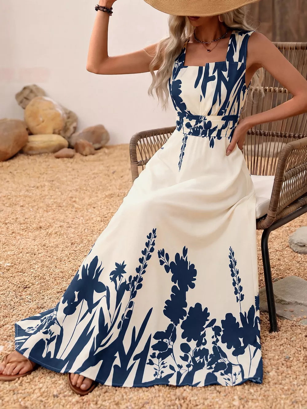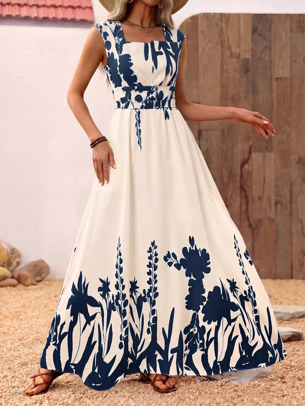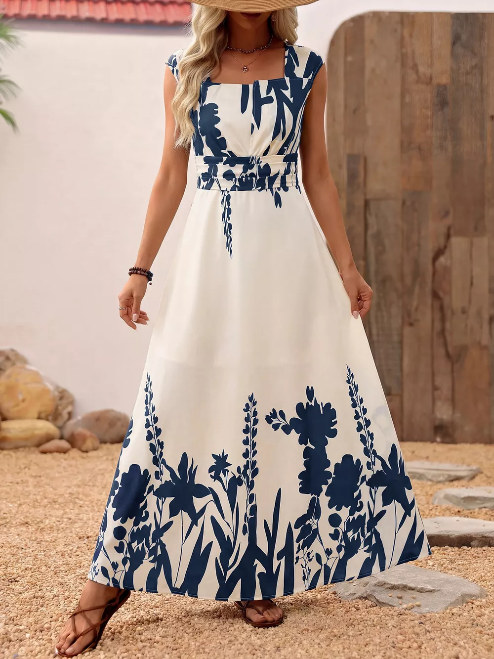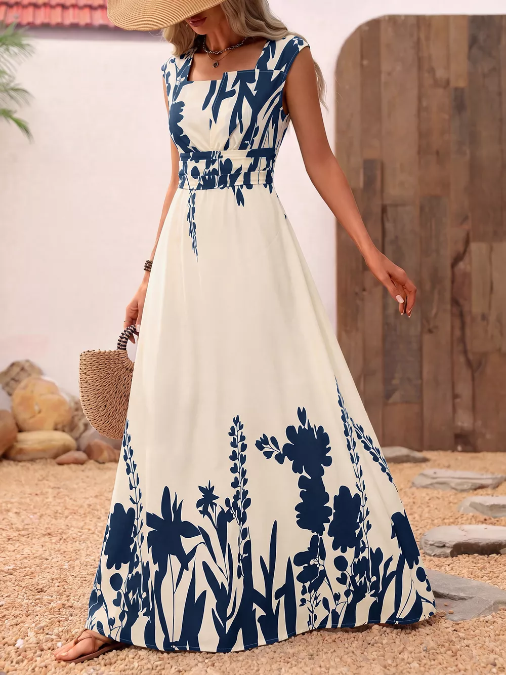 Printed Square Neck Maxi Dress