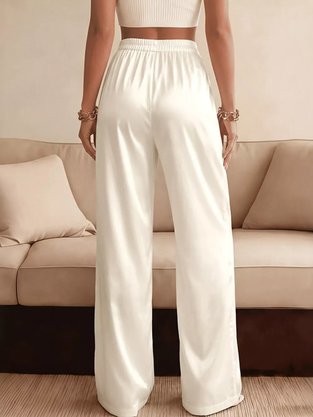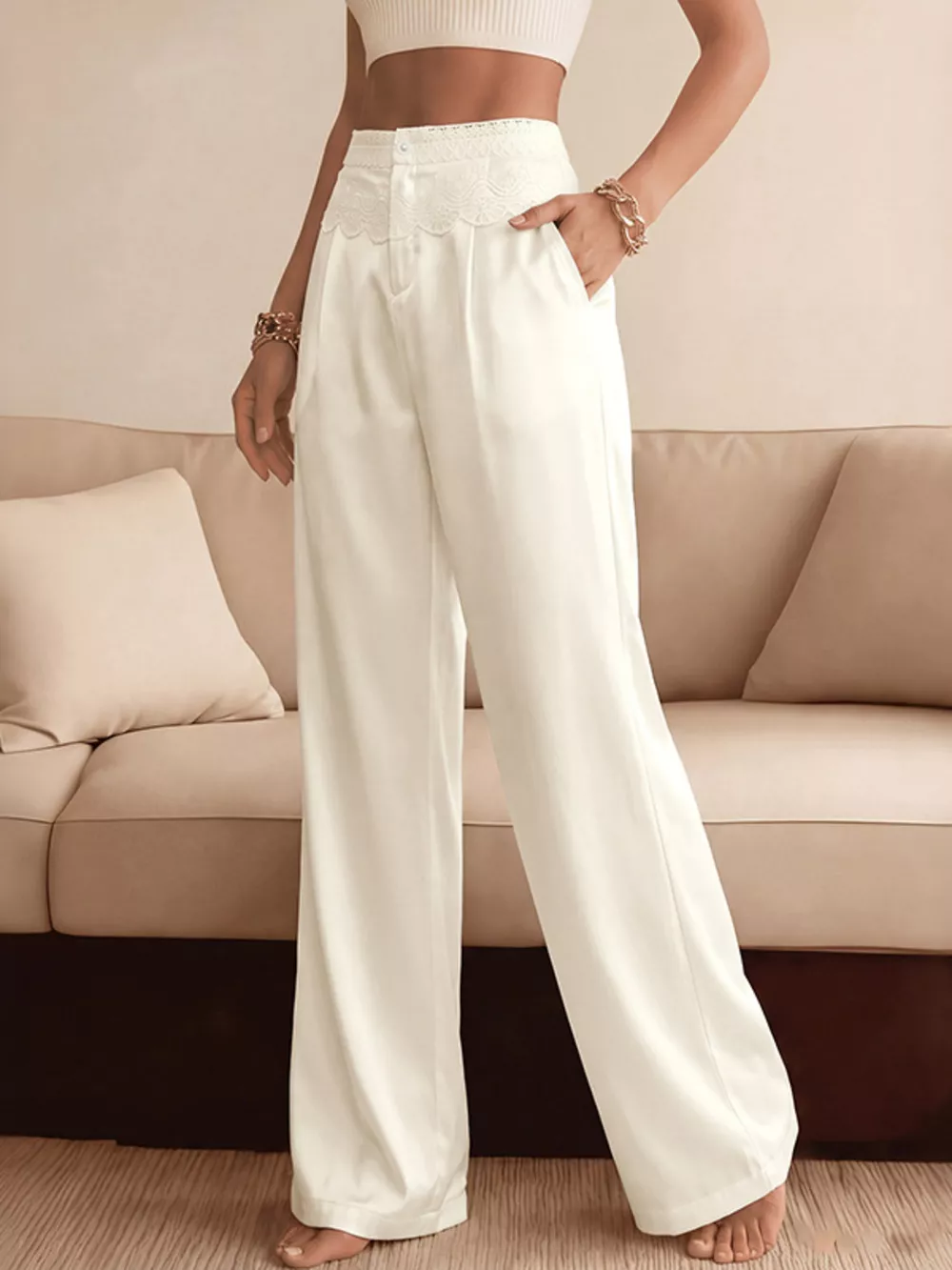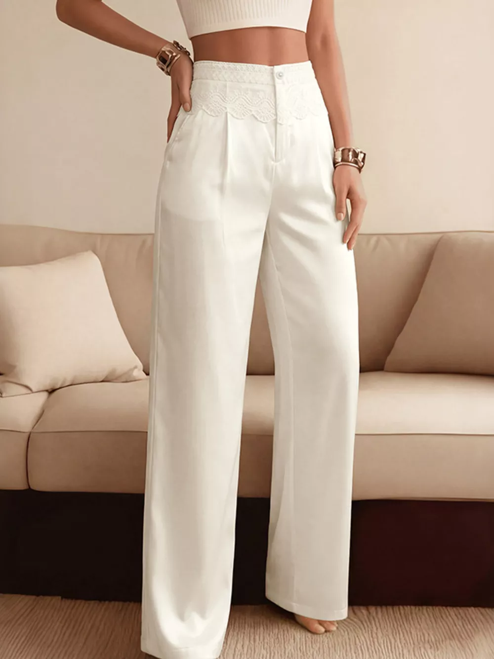 Lace Waist Wide Leg Pants