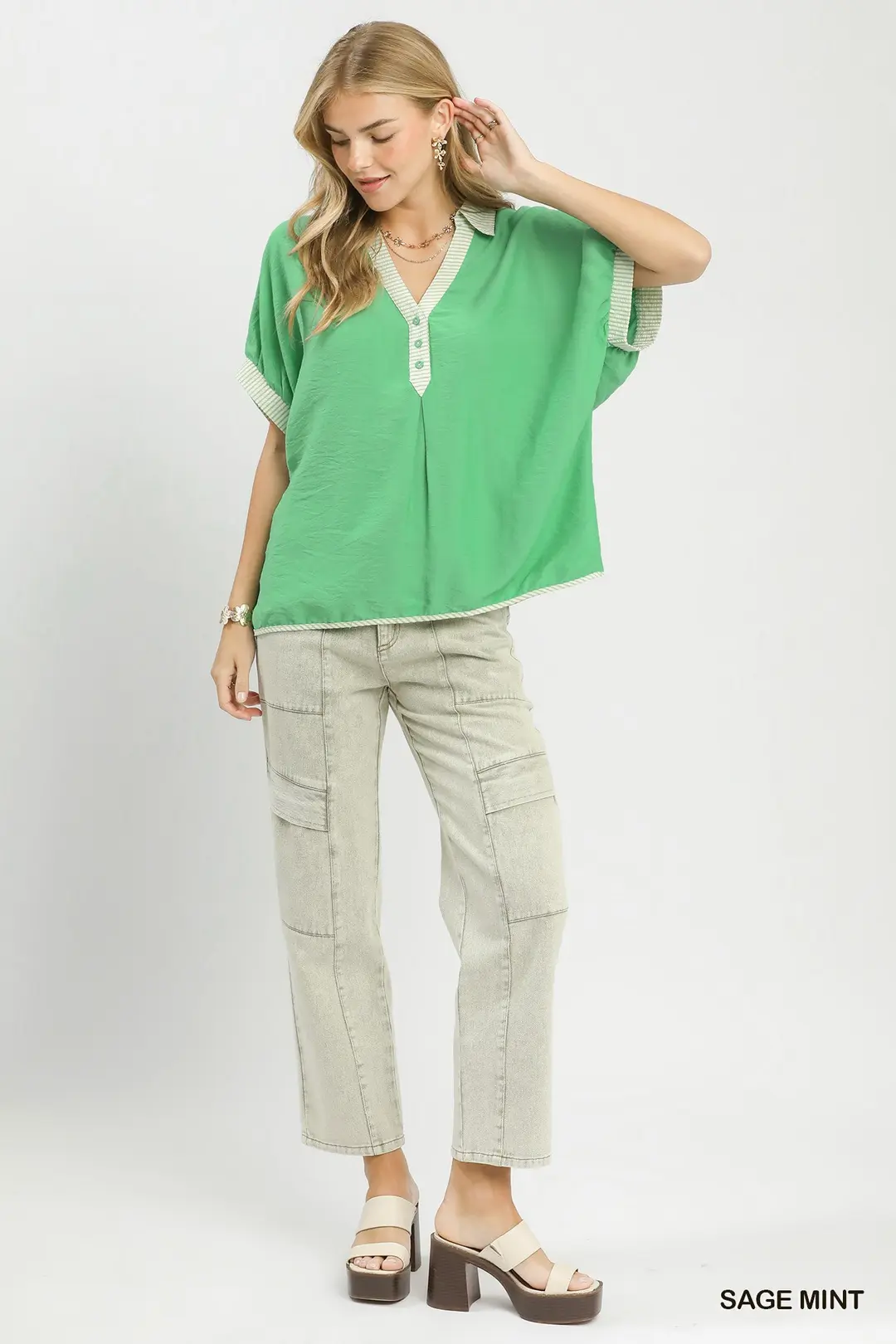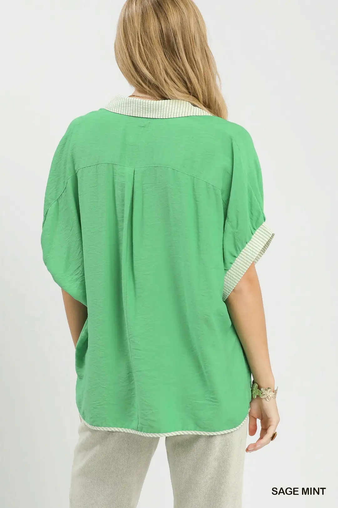 Umgee Oversized Contrast Stripe Trim Top