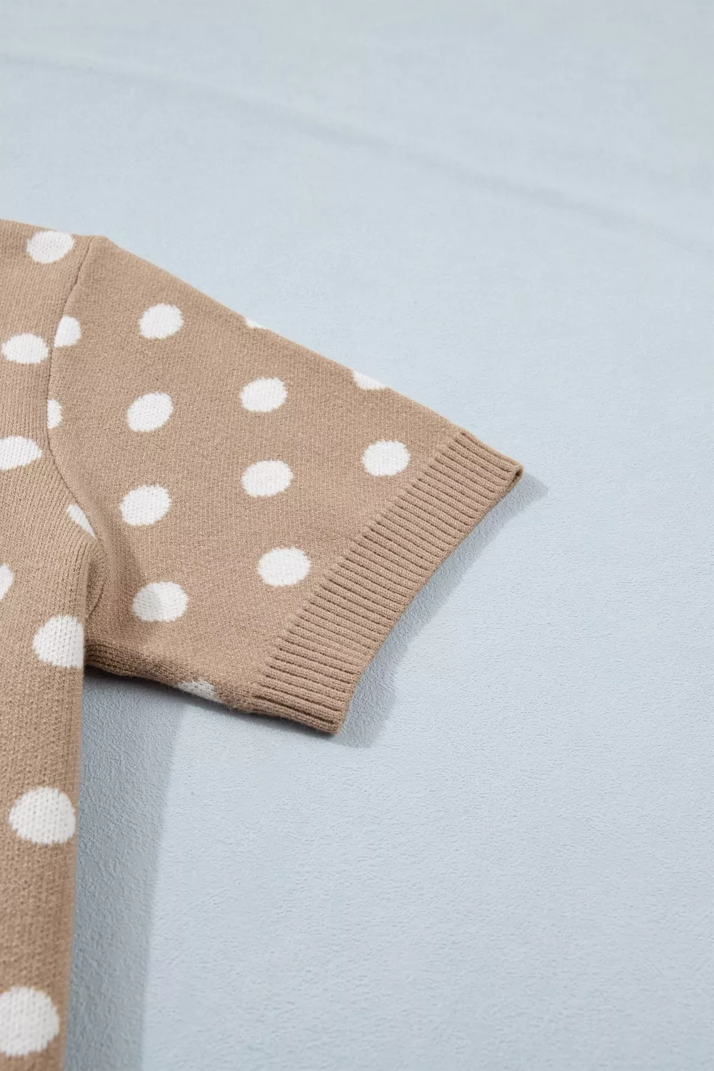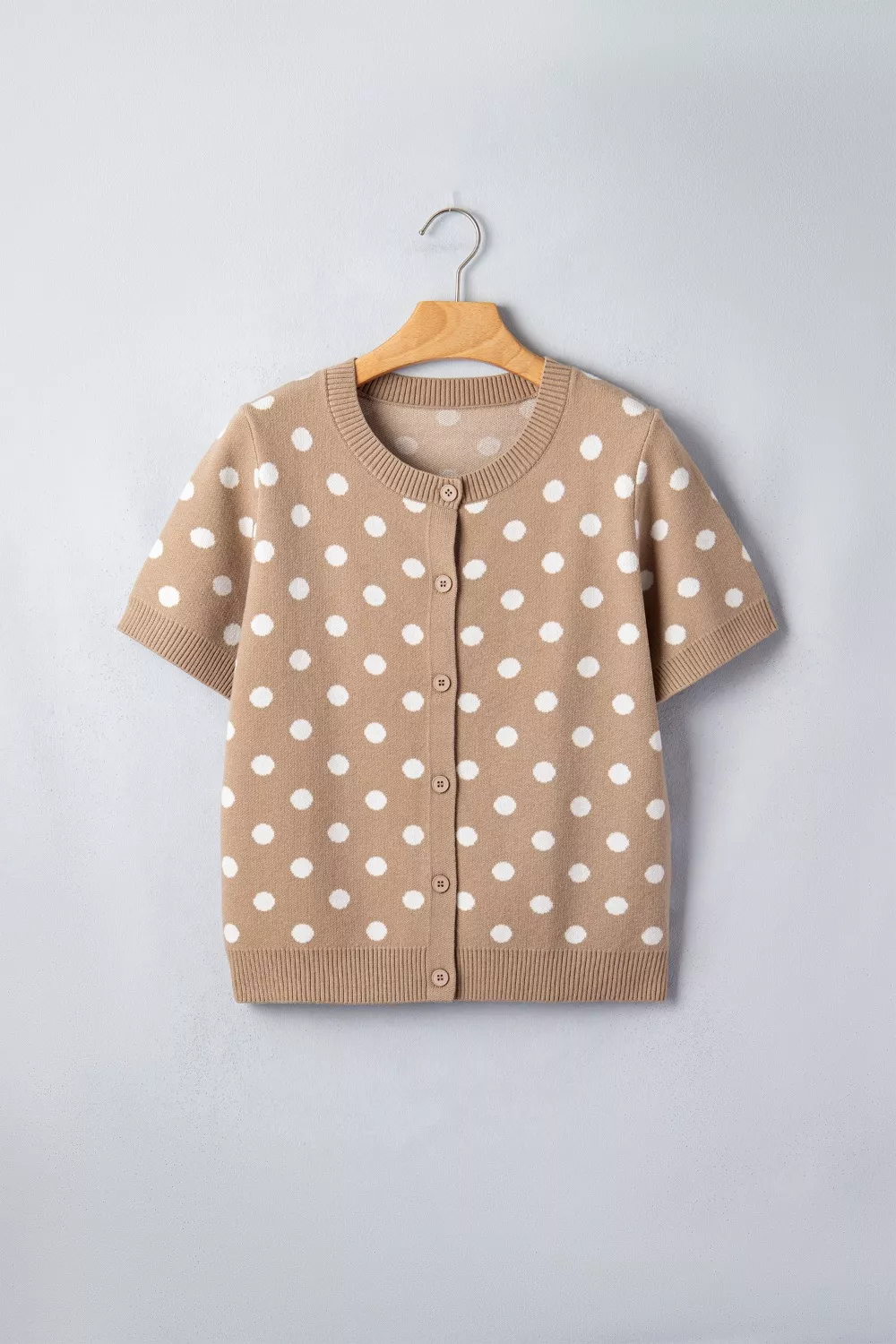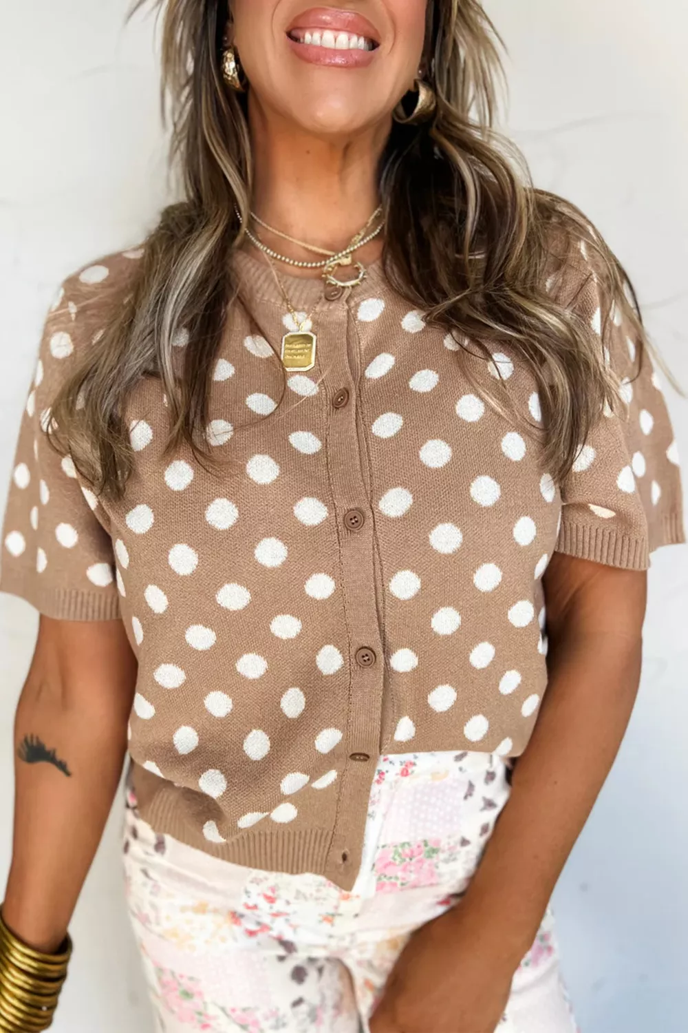 Polka Dot Short Sleeve Button Down Sweater Cardigan