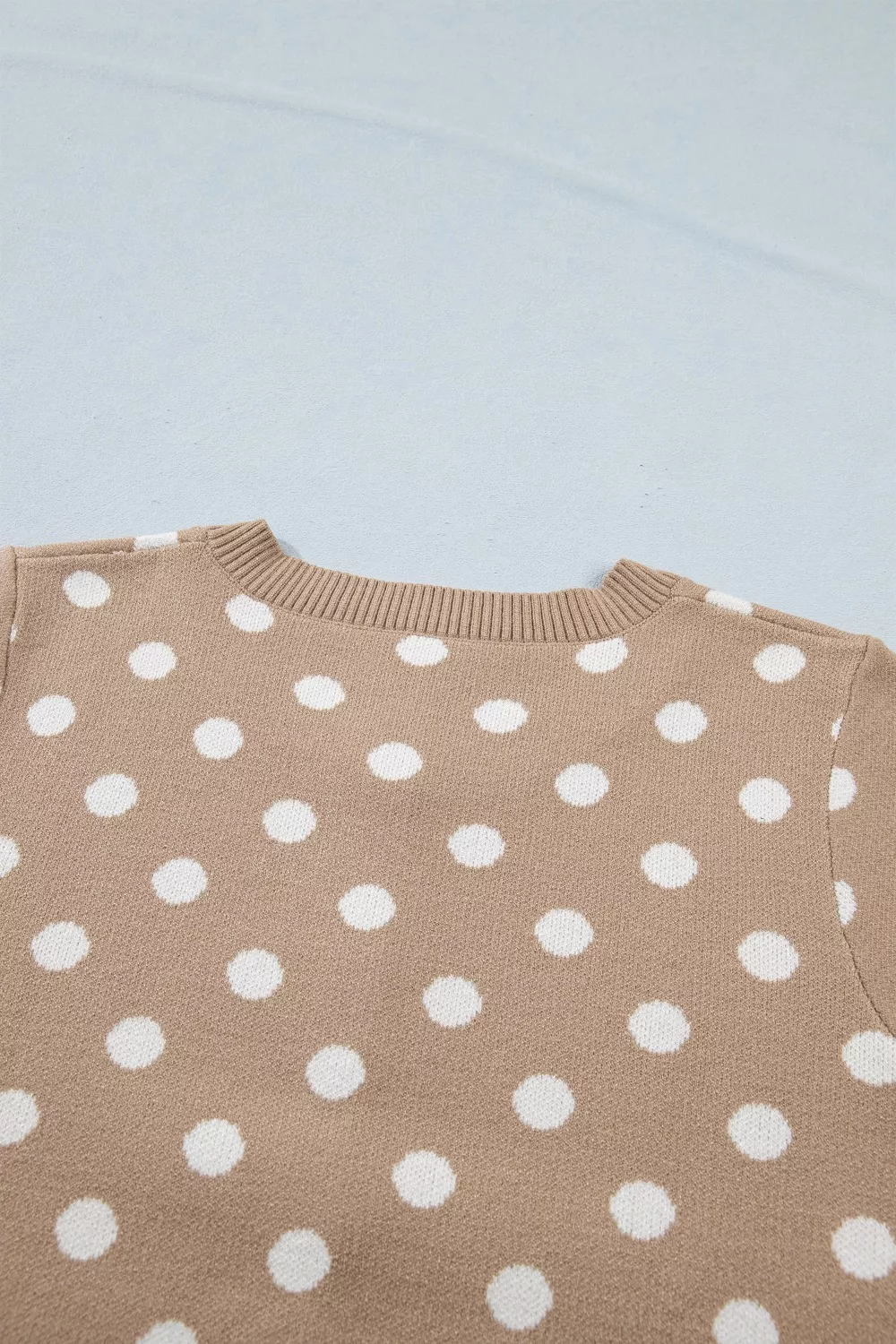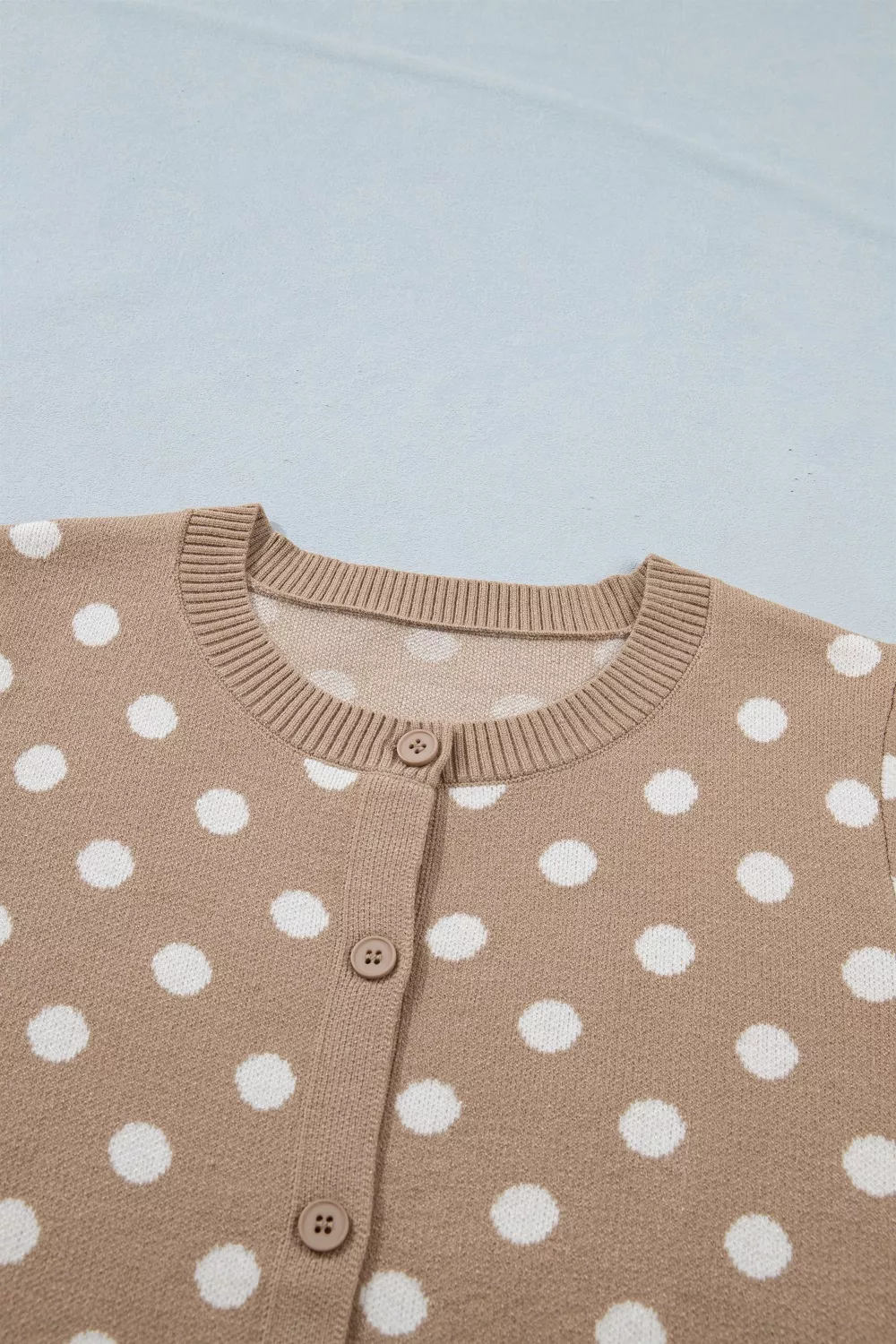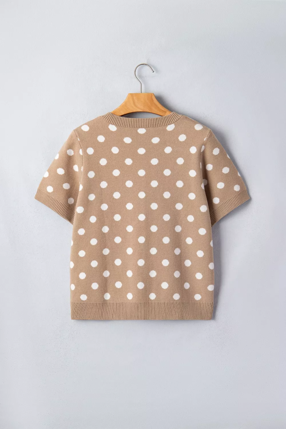 Polka Dot Short Sleeve Button Down Sweater Cardigan