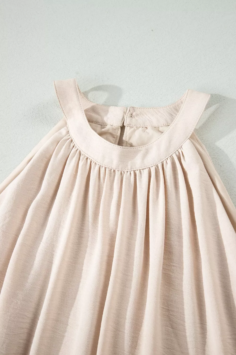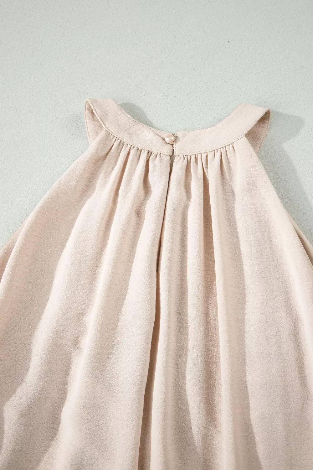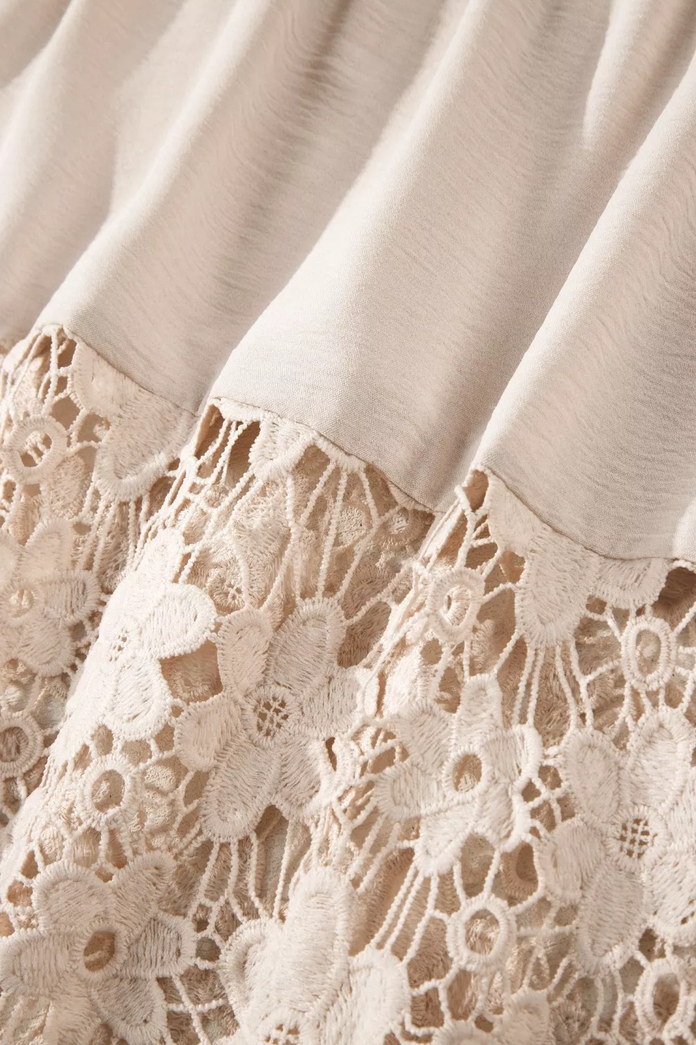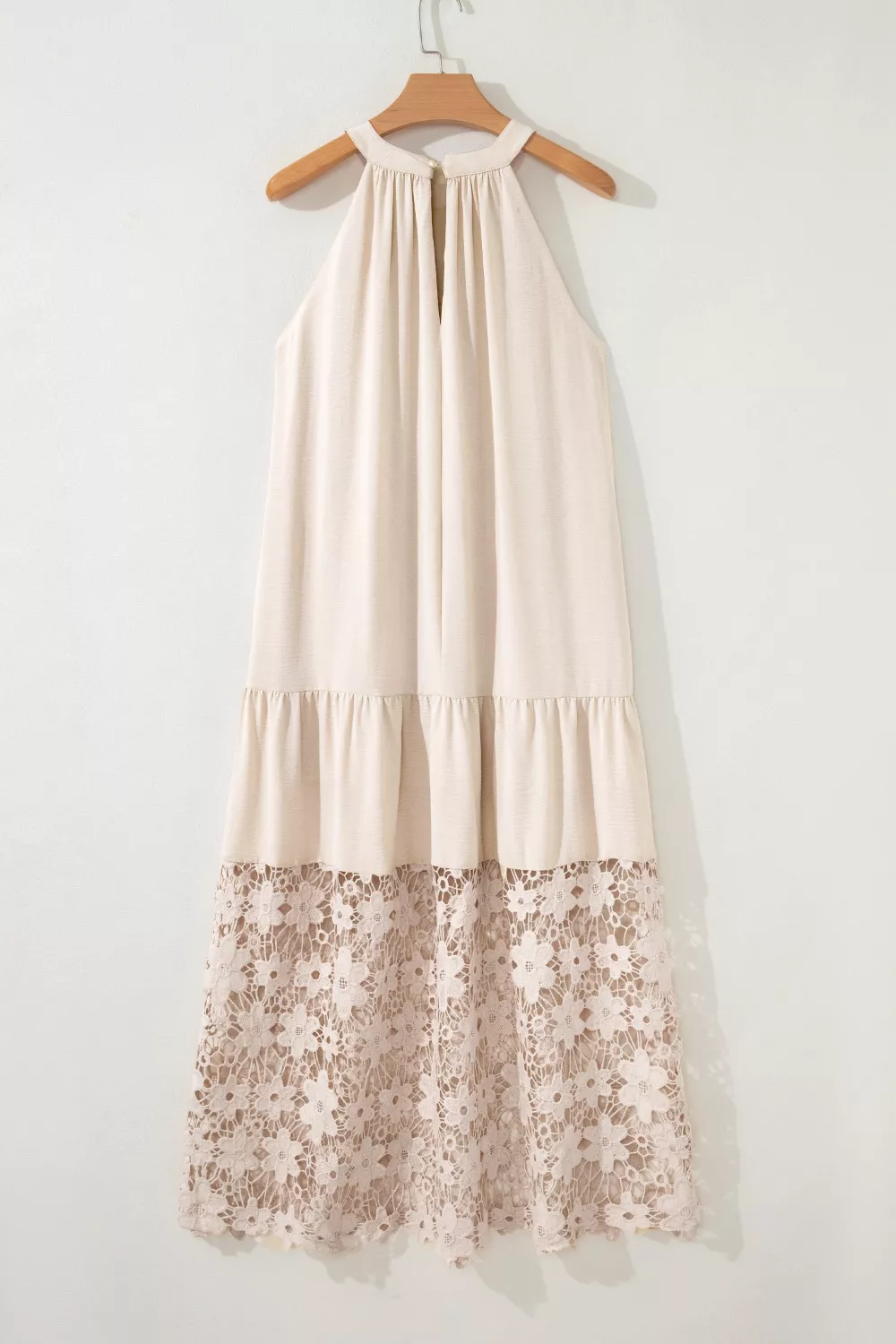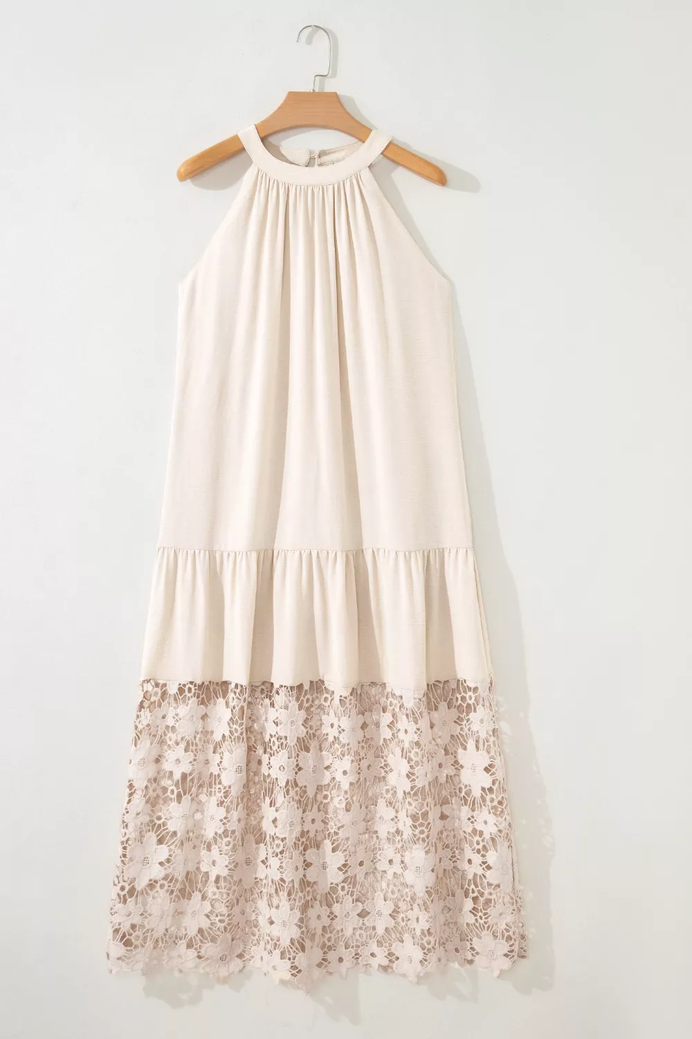 Hollowed Floral Lace Hem Patchwork Loose Halter Summer Dress