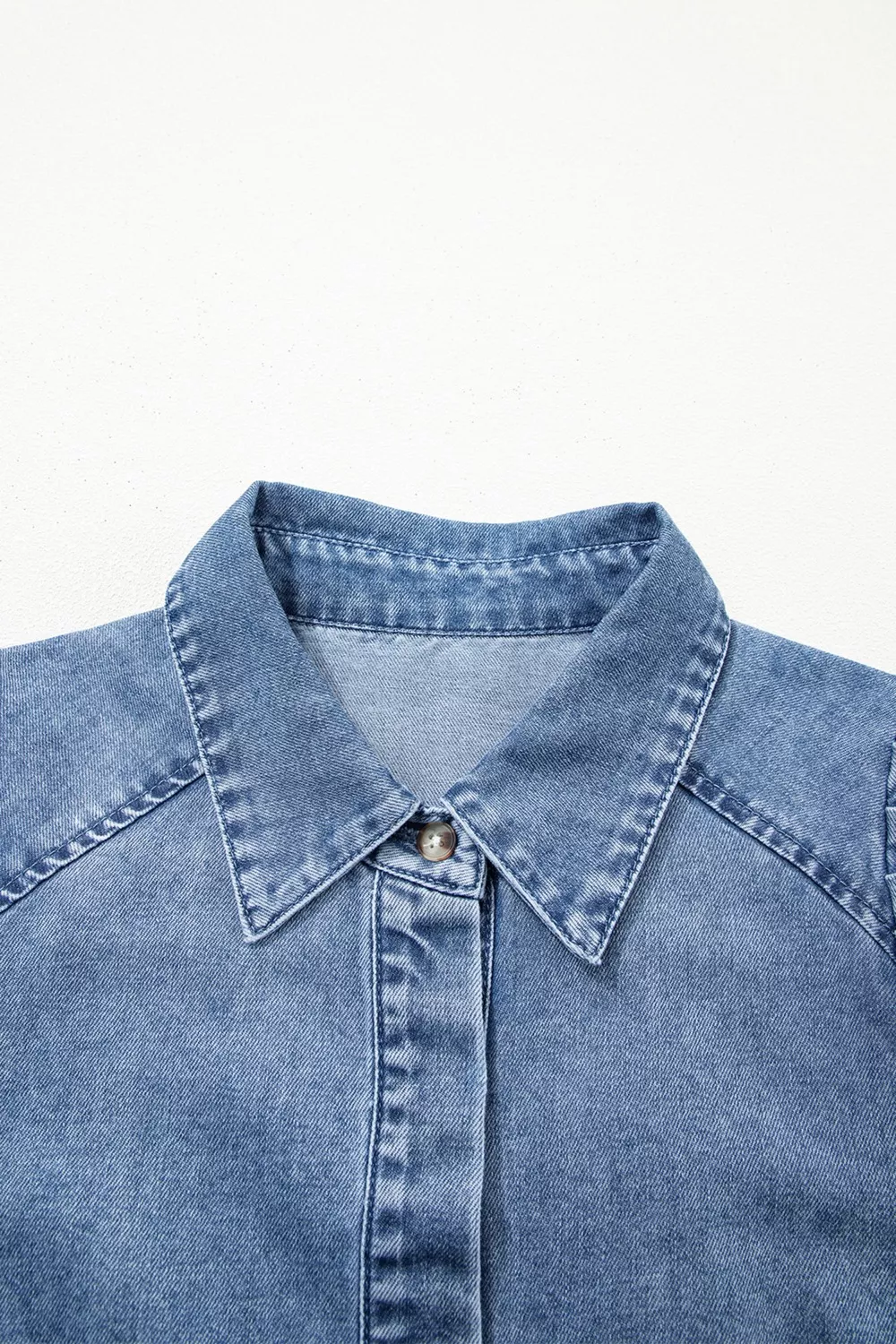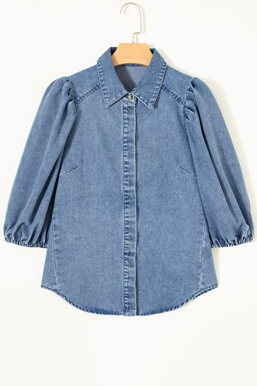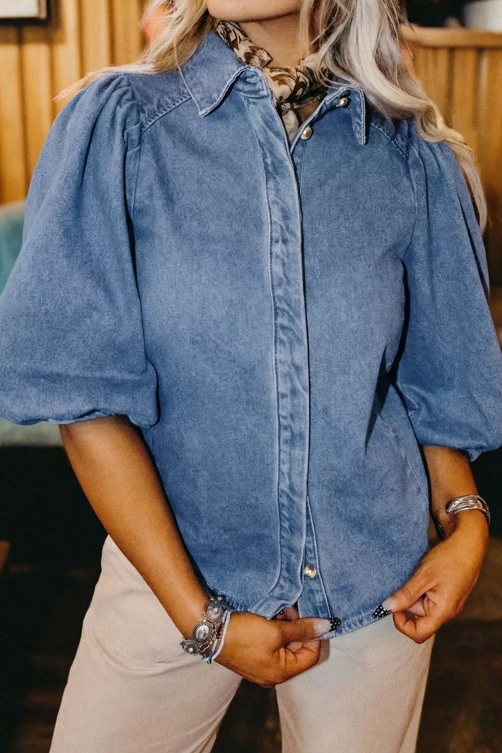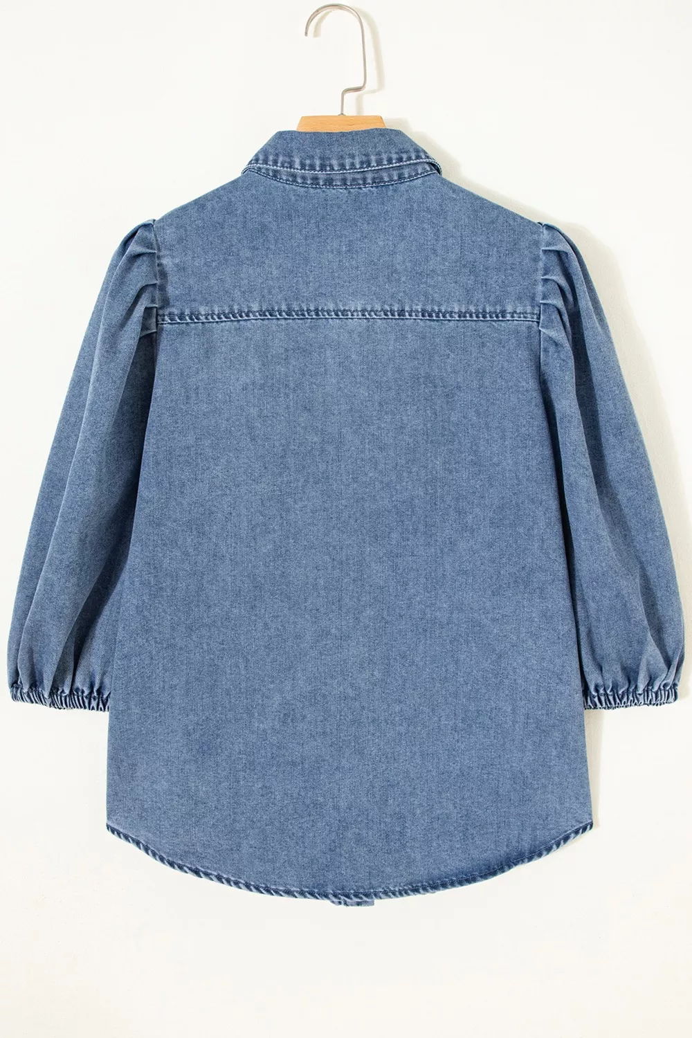 Puff Half Sleeve Collared Denim Shirt