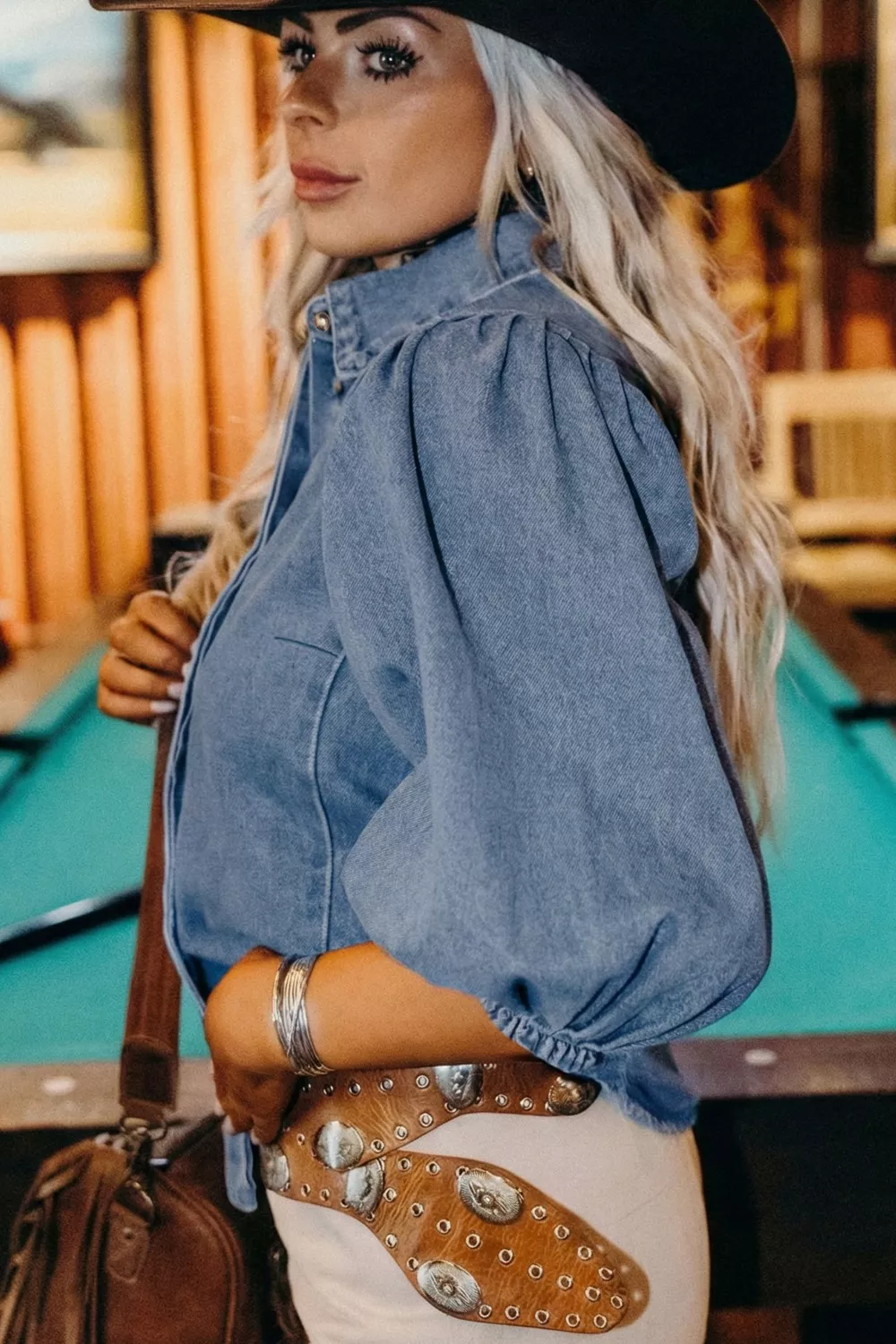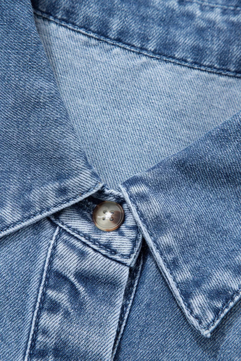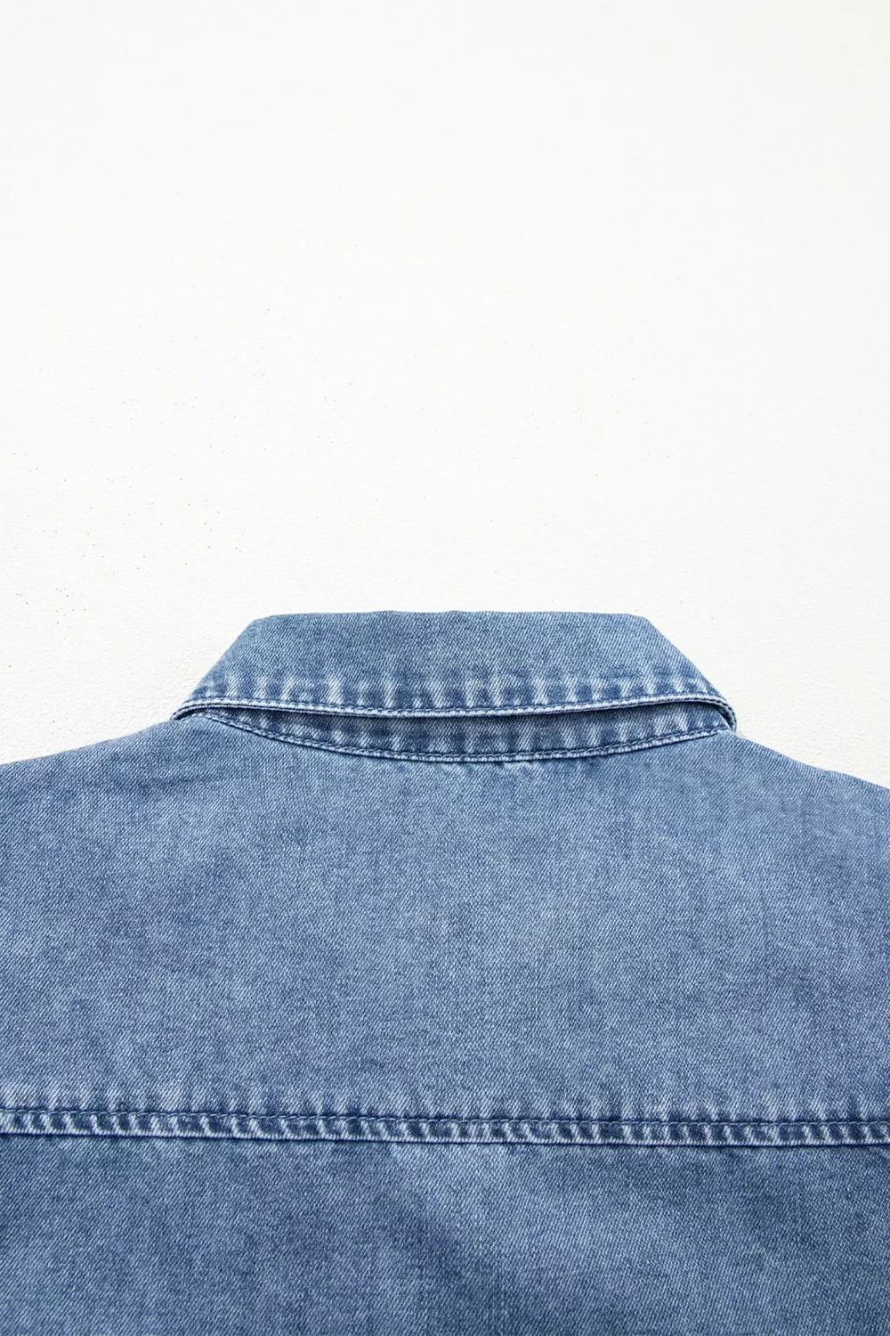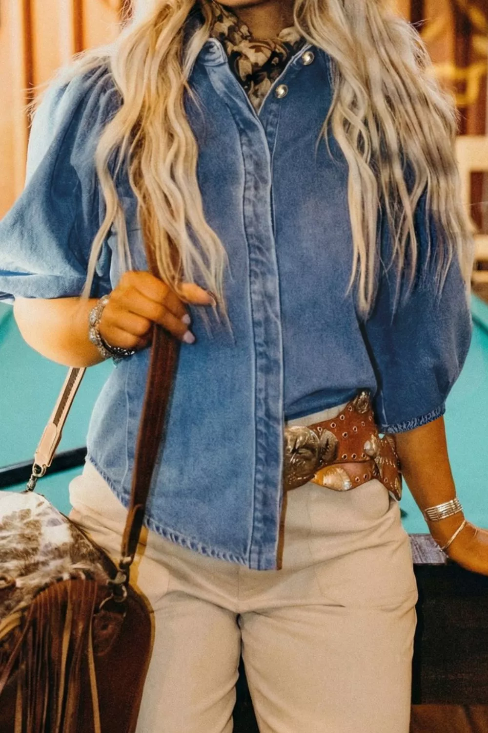 Puff Half Sleeve Collared Denim Shirt