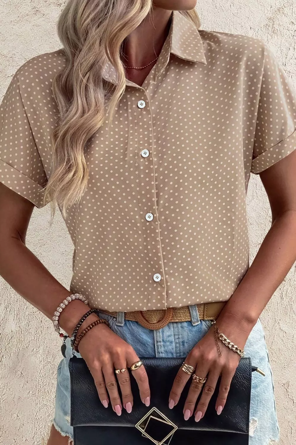 Polka Dot Print Short Sleeve Shirt