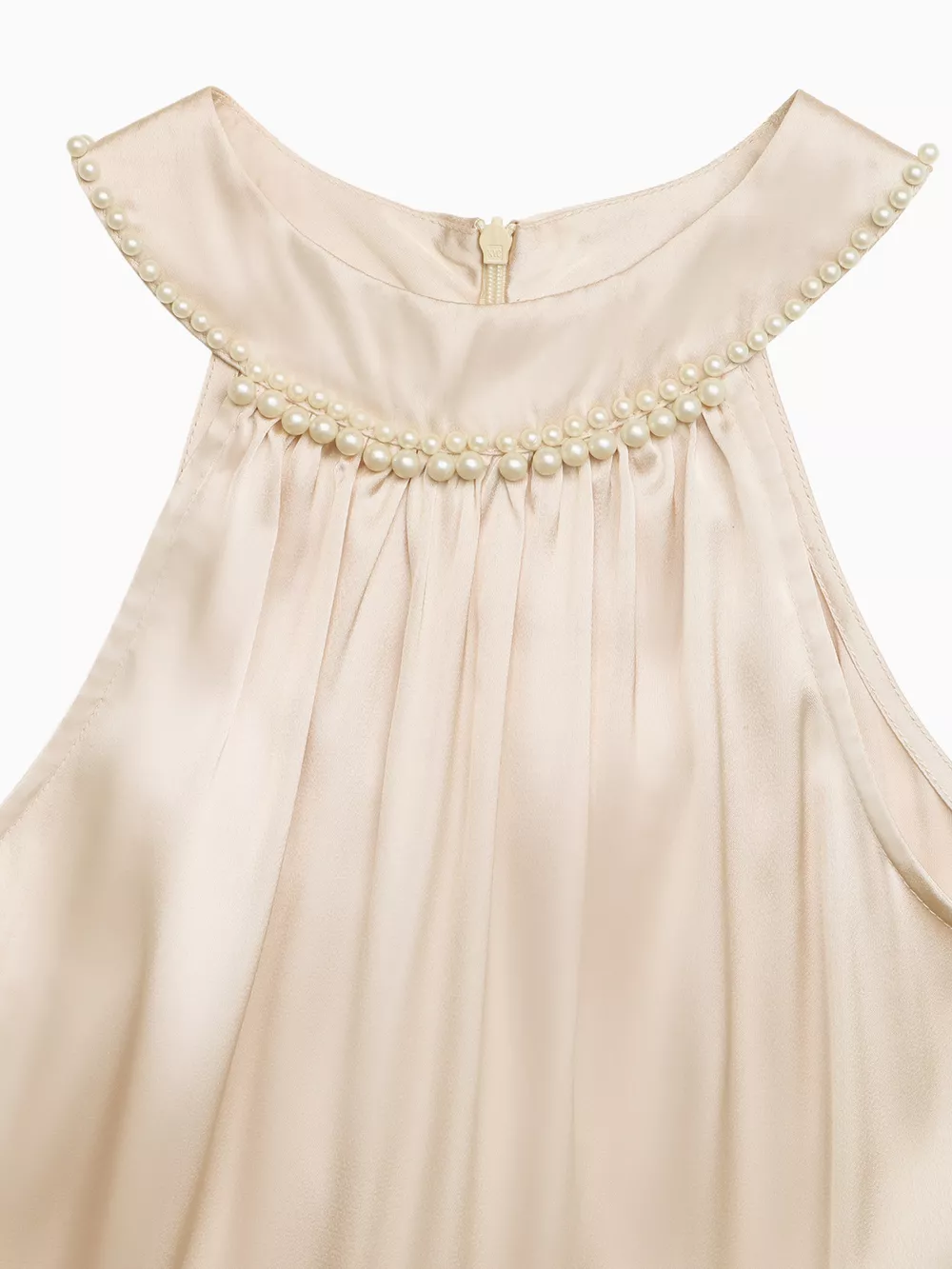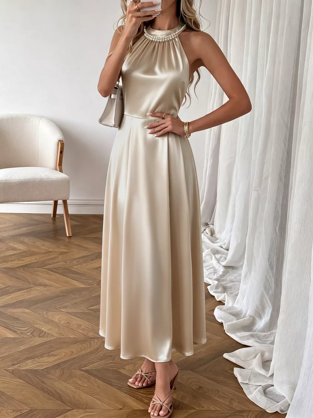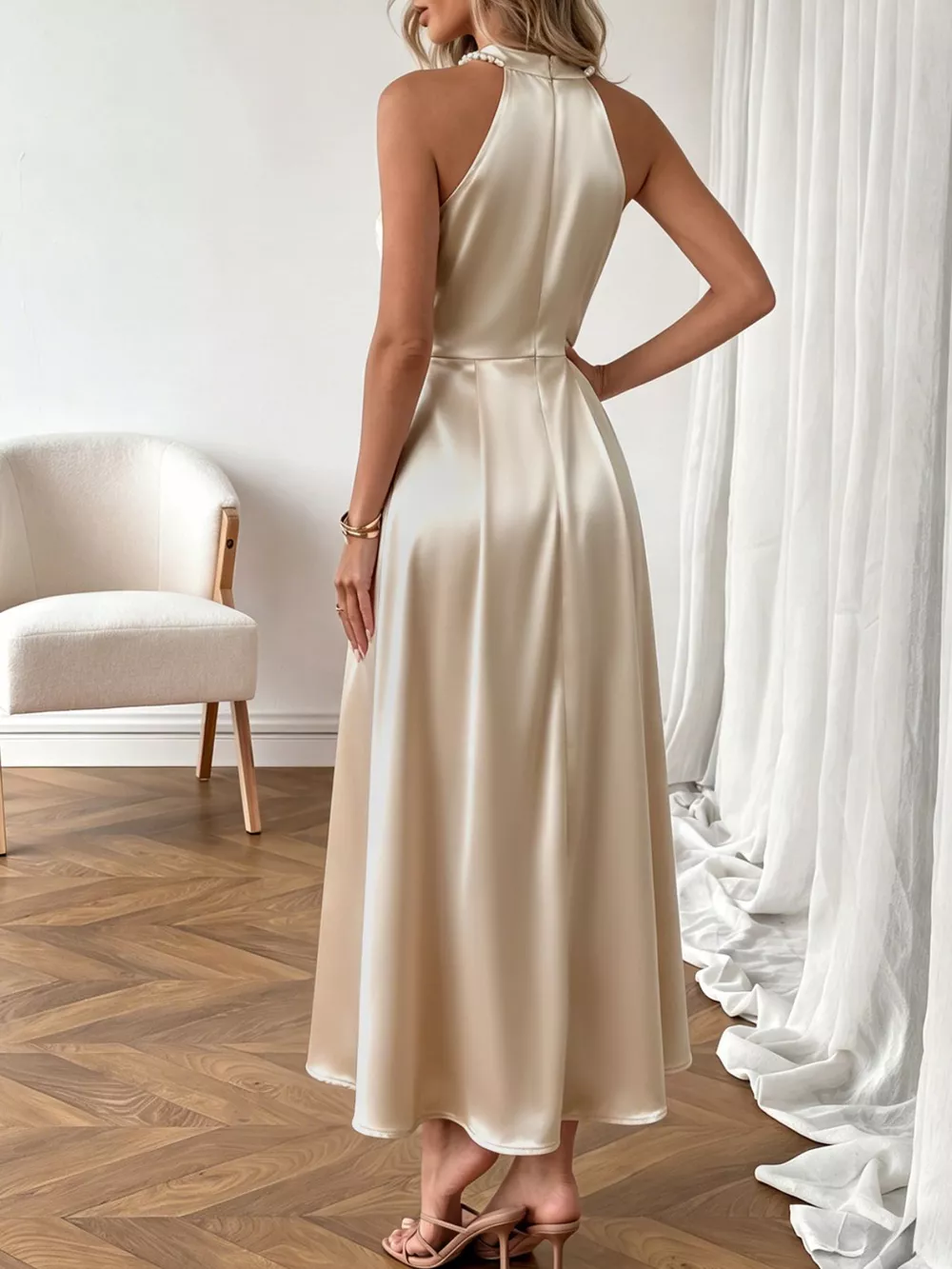 Pearl Halter Satin Midi Dress