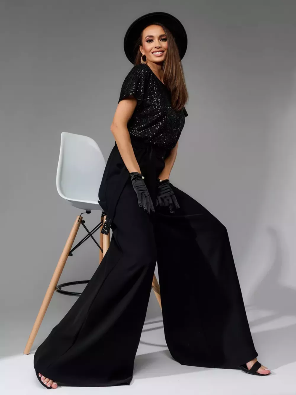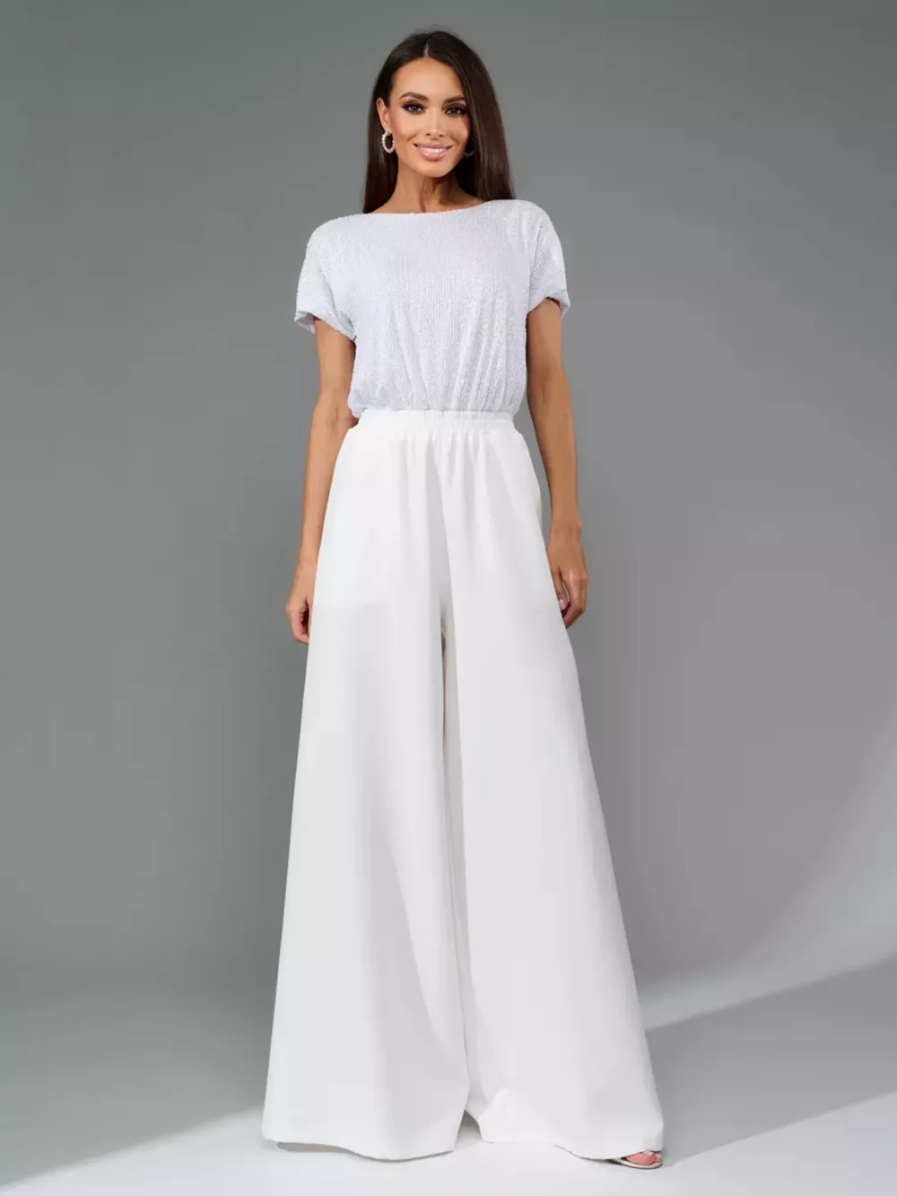 Full Size Sequin Short Sleeve Wide Leg Jumpsuit Plus Size