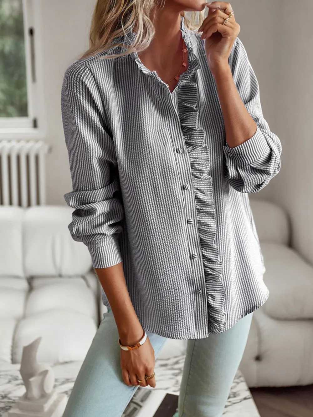 Add this Devine Ruffle Trim Long Sleeve Shirt to your store and start selling immediately without inventory investment. Perfect for online boutiques, social media shops, and e-commerce businesses looking for trending Shirts products.