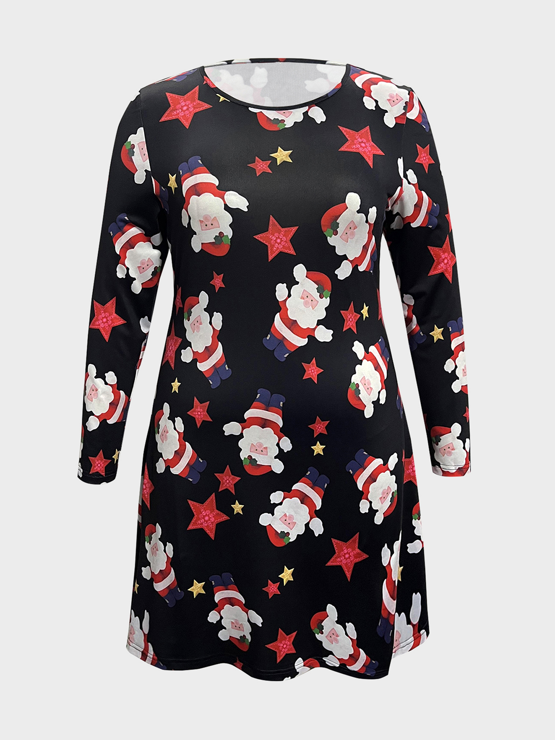 Detailed description of the Plus Size Santa Printed Round Neck Dress, highlighting quality, design, and unique features that make it appealing to end consumers.