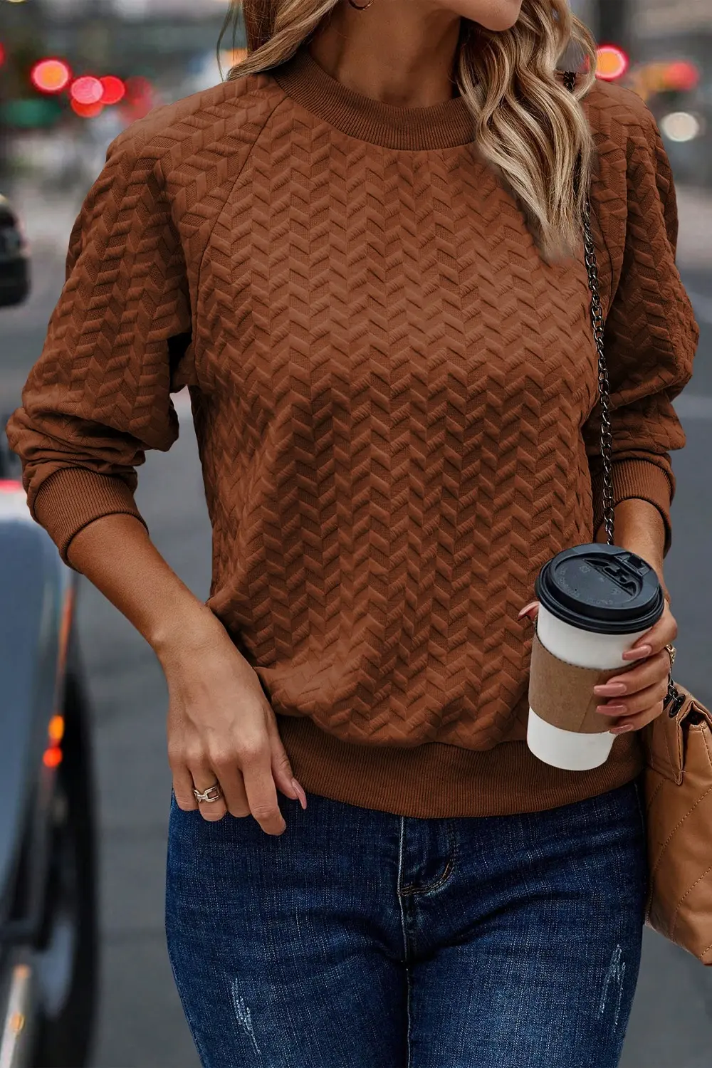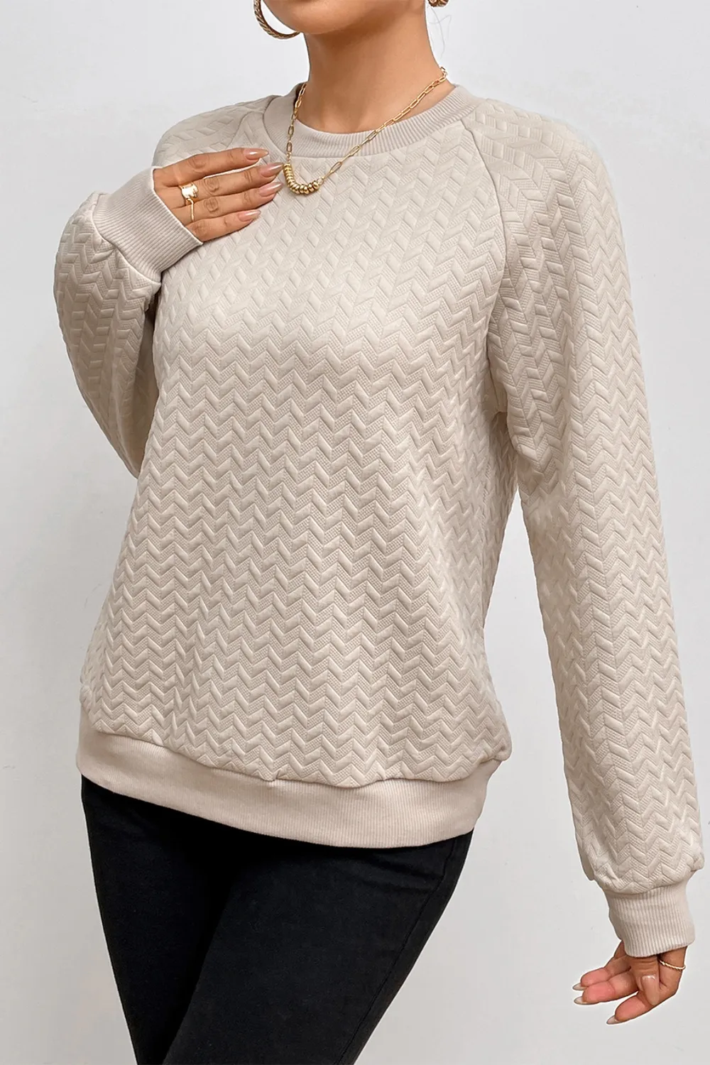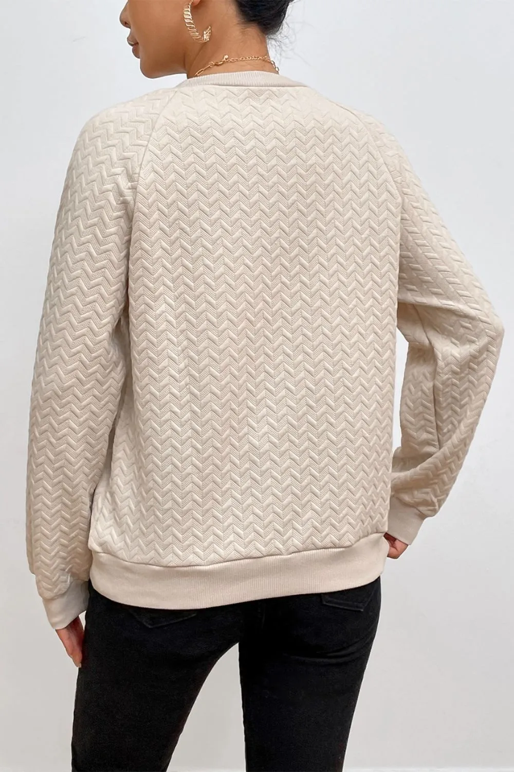 Texture Round Neck Long Sleeve Sweatshirt