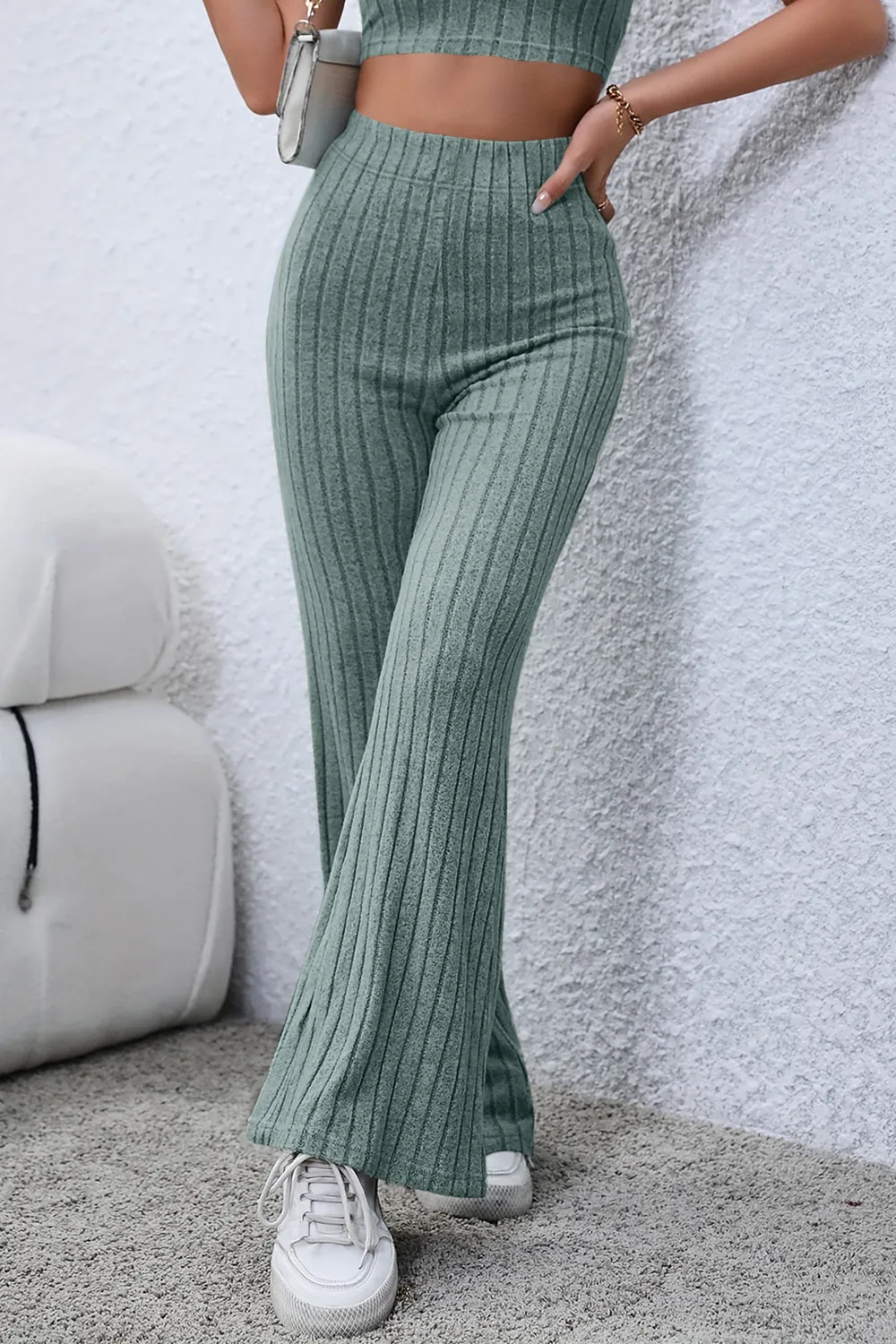 Basic Bae Full Size Ribbed High Waist Flare Pants