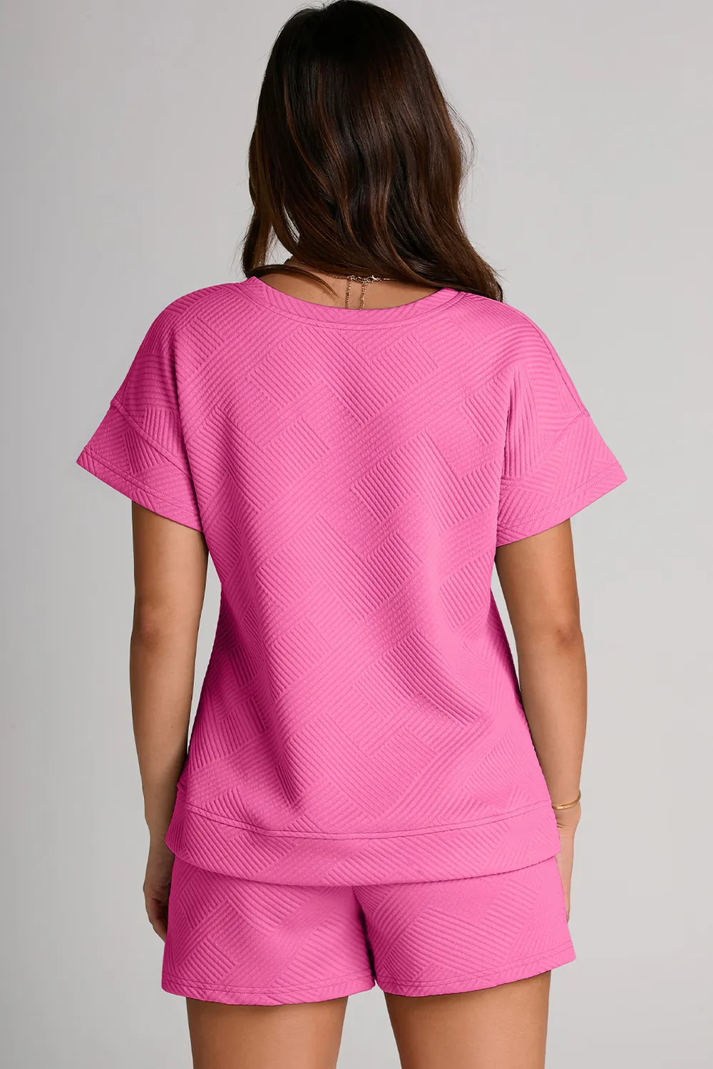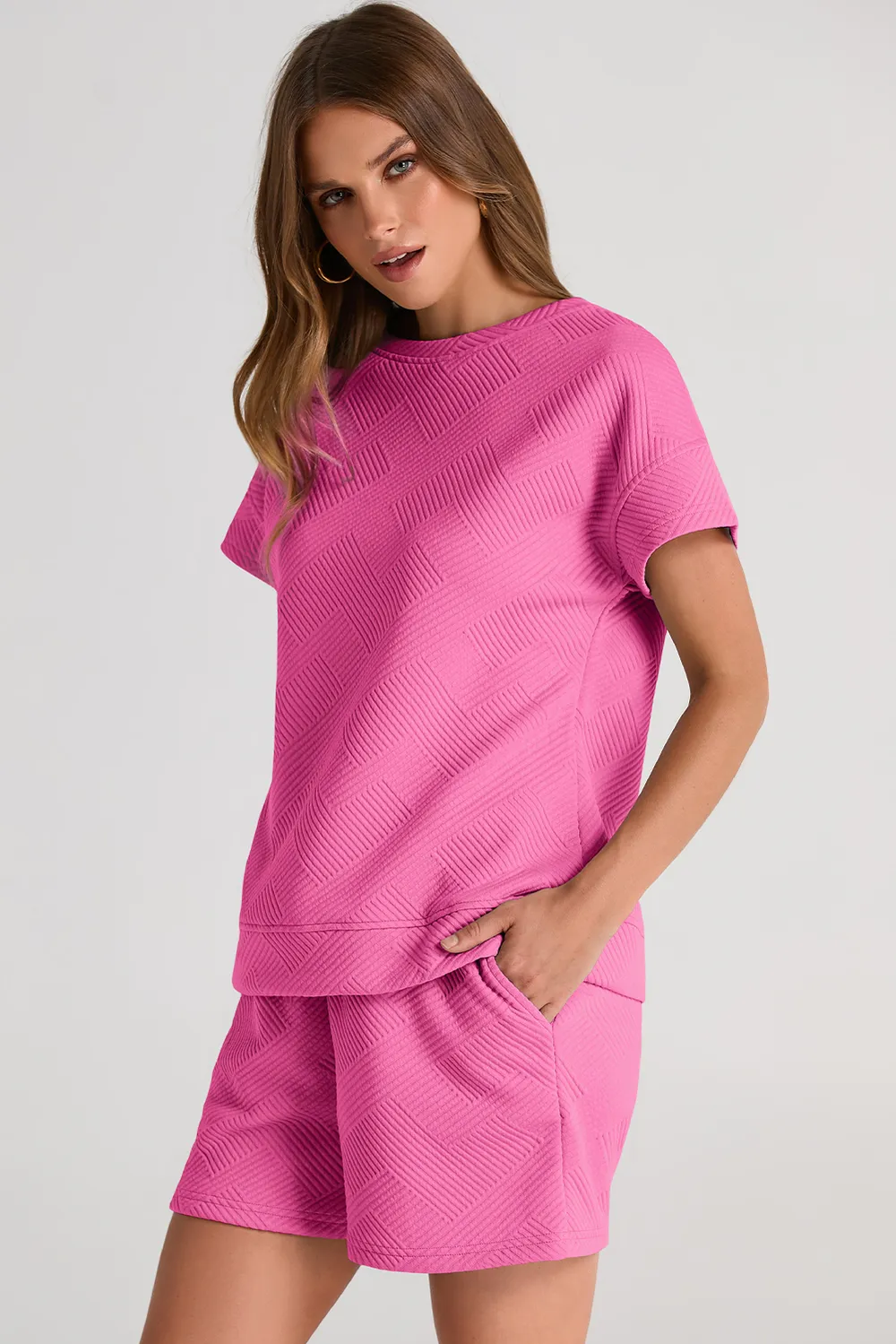 Textured Round Neck T-Shirt and Shorts Set
