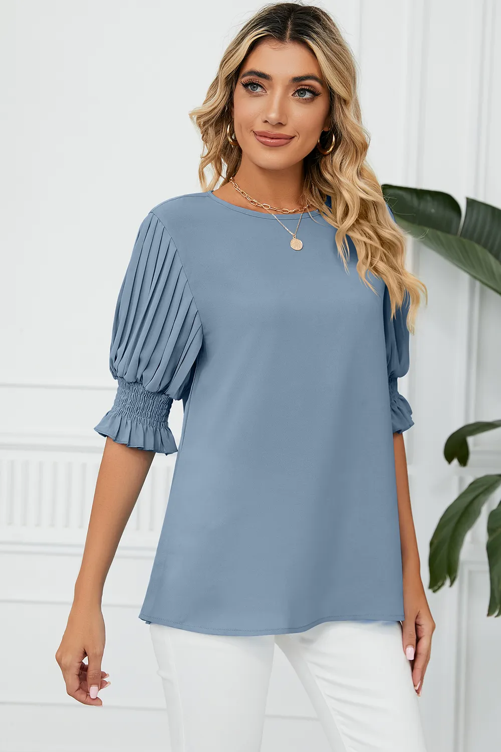 Add this Frill Round Neck Lantern Sleeve T-Shirt to your store and start selling immediately without inventory investment. Perfect for online boutiques, social media shops, and e-commerce businesses looking for trending T-Shirts products.