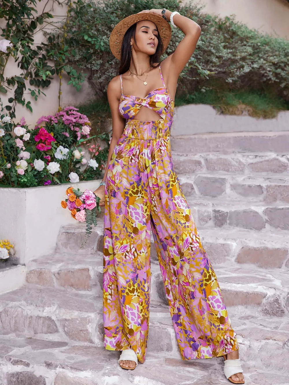 Detailed description of the Cutout Printed Spaghetti Strap Jumpsuit, highlighting quality, design, and unique features that make it appealing to end consumers.