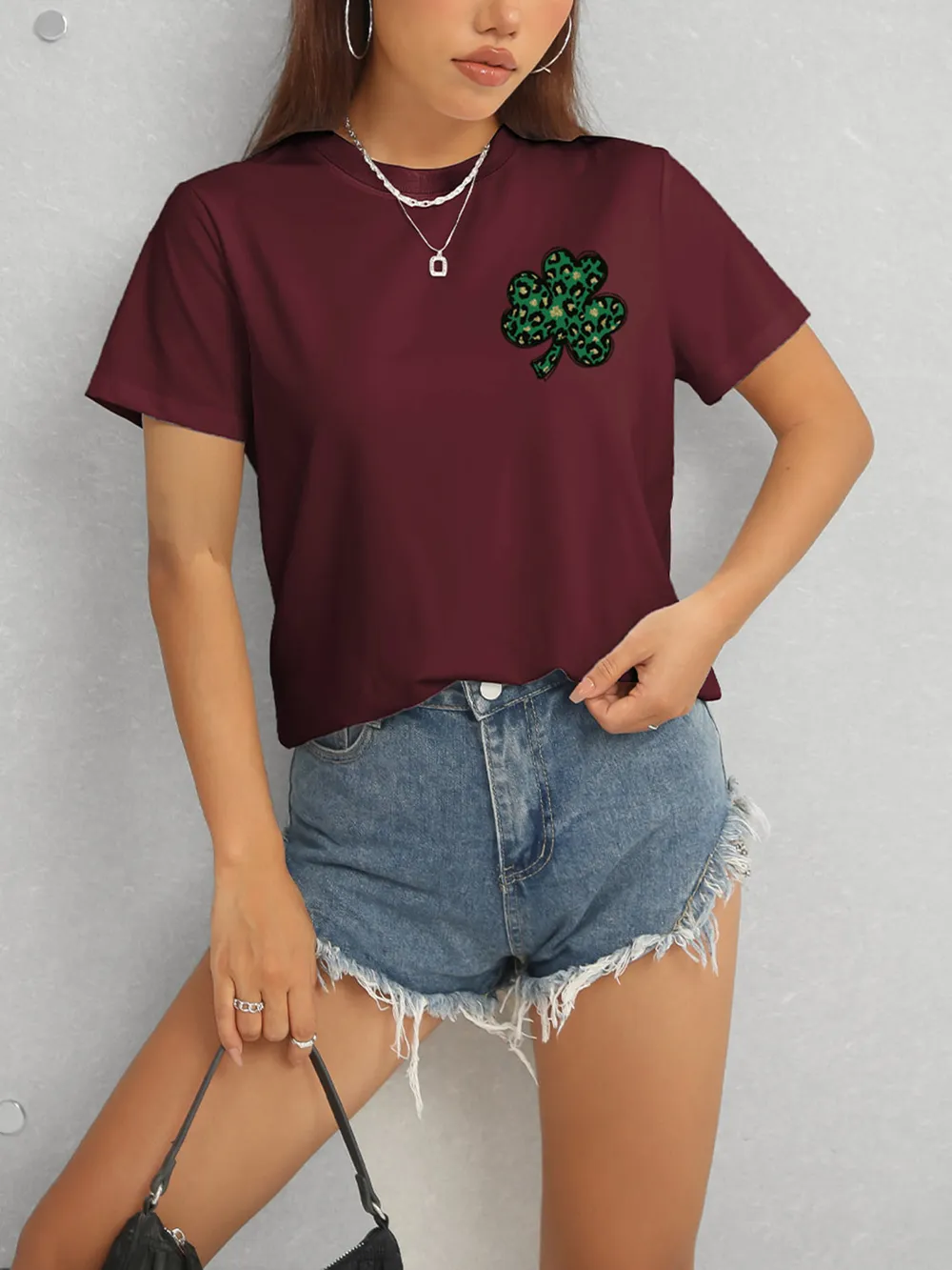Lucky Clover Round Neck Short Sleeve T-Shirt