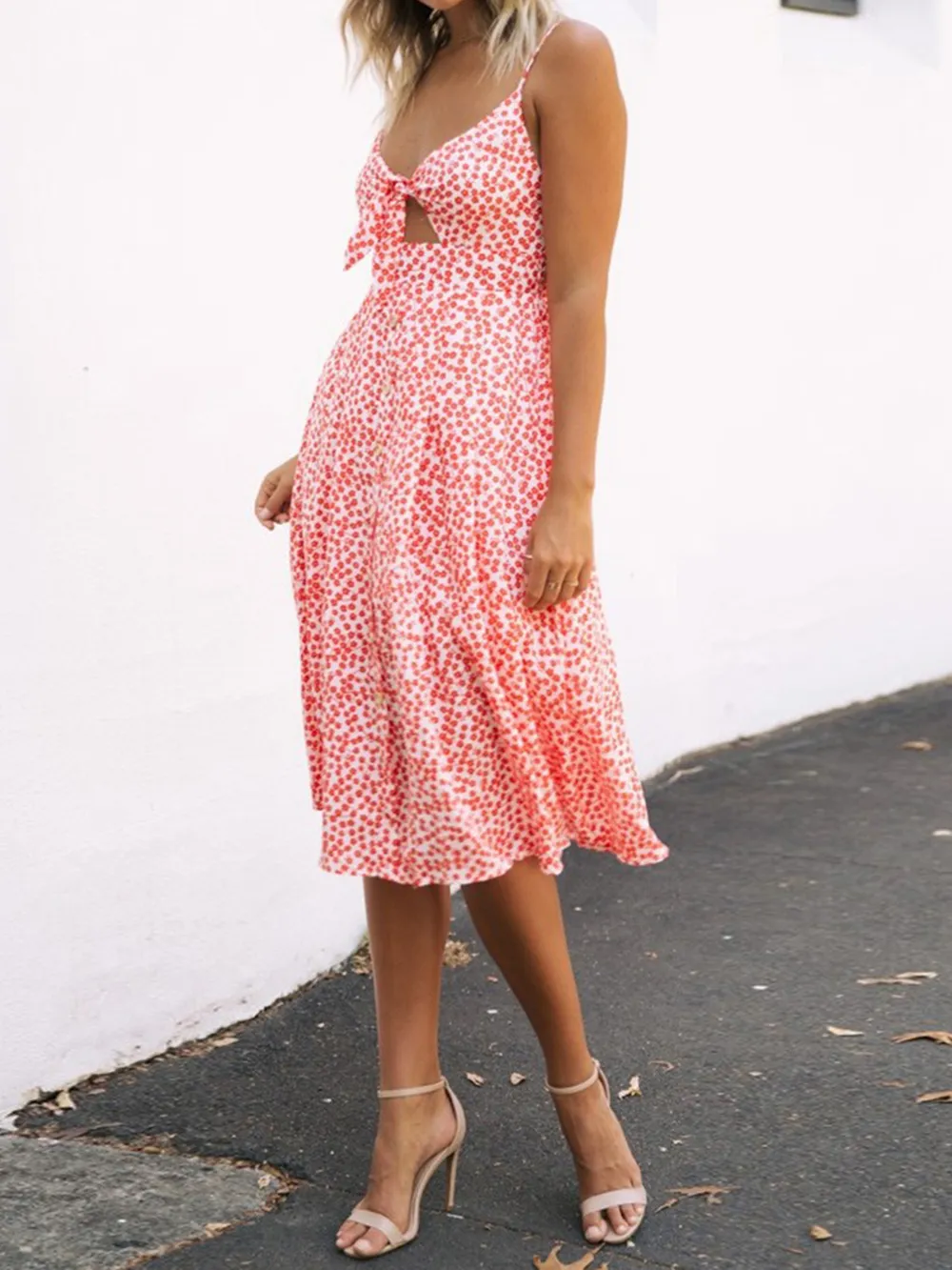 Cutout Smocked Sweetheart Neck Cami Dress