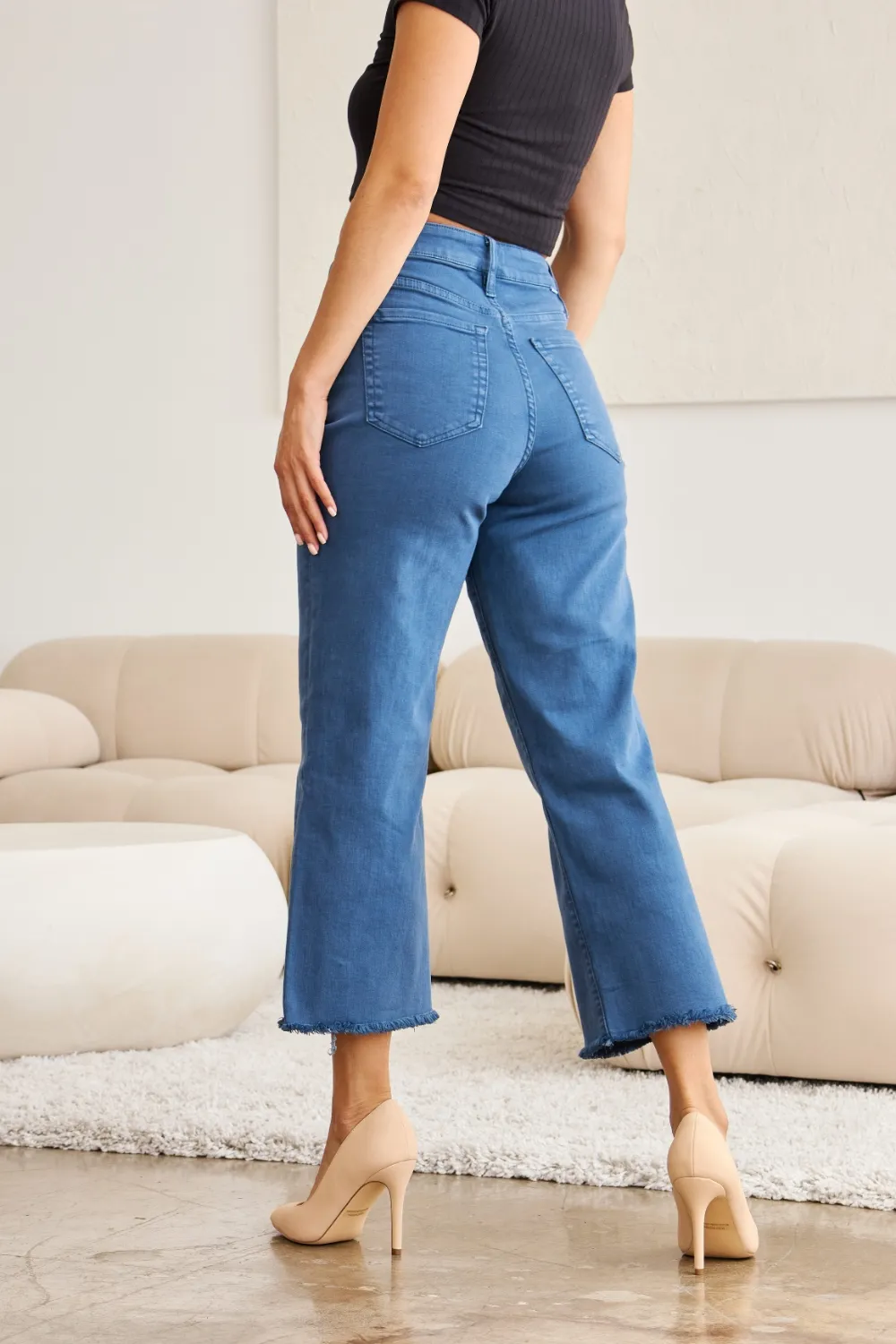 RFM Crop Chloe Full Size Tummy Control High Waist Raw Hem Jeans
