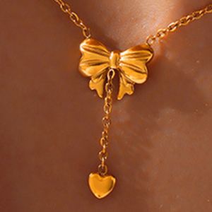 Titanium Steel Gold-Plated Bow Pendant Necklace