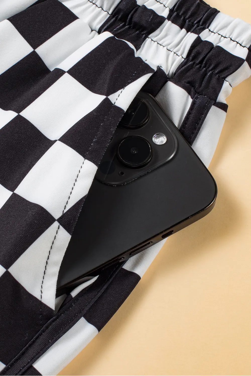 Drawstring Checkered Shorts with Pockets